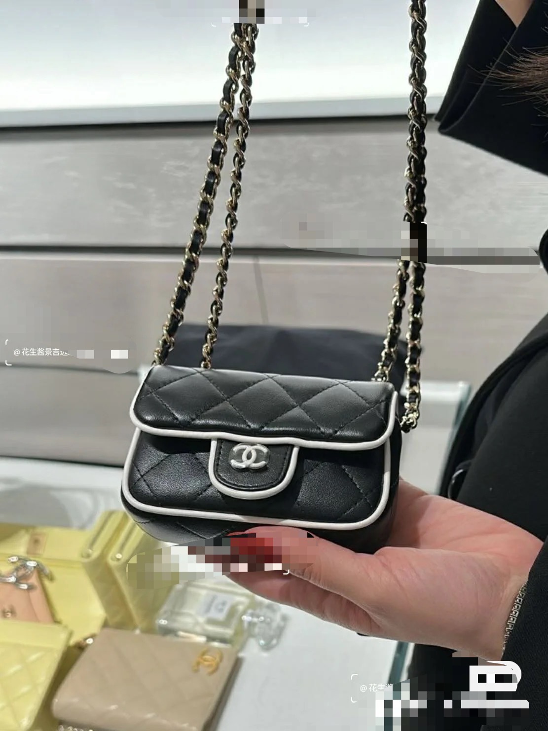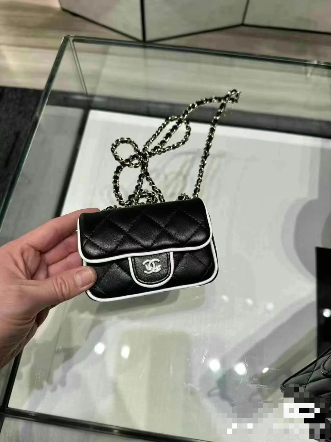 Chanel Mini Clutch with chain - Lambskin, black & white