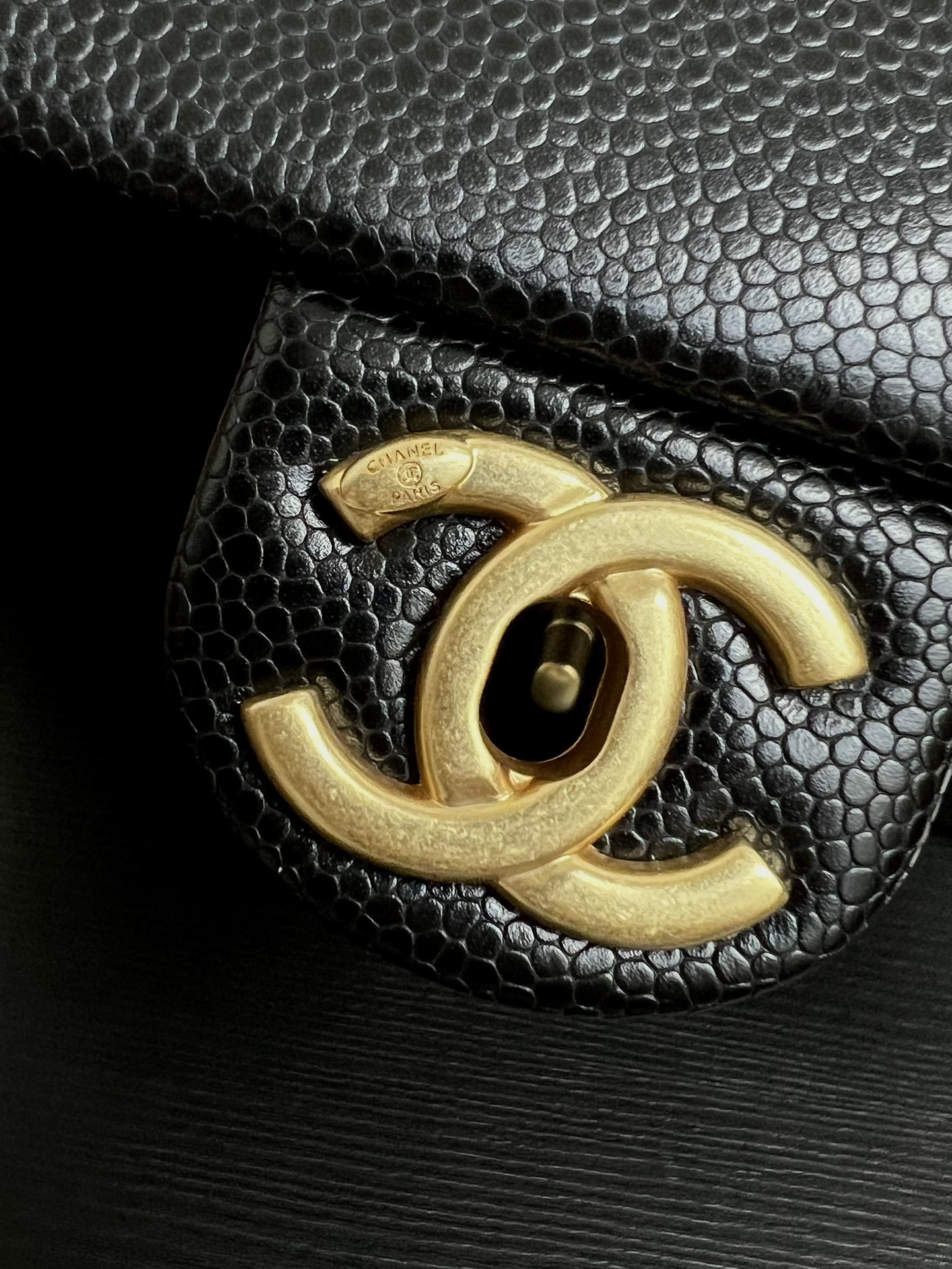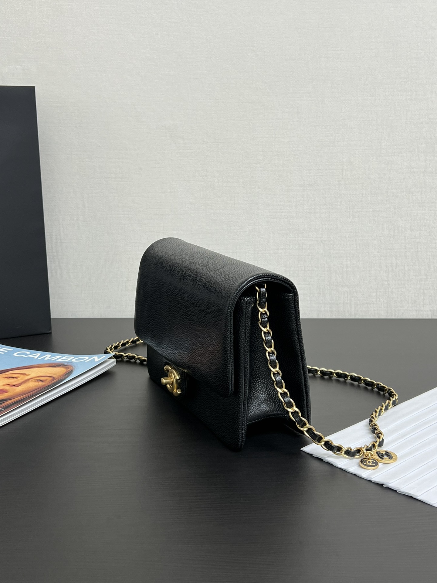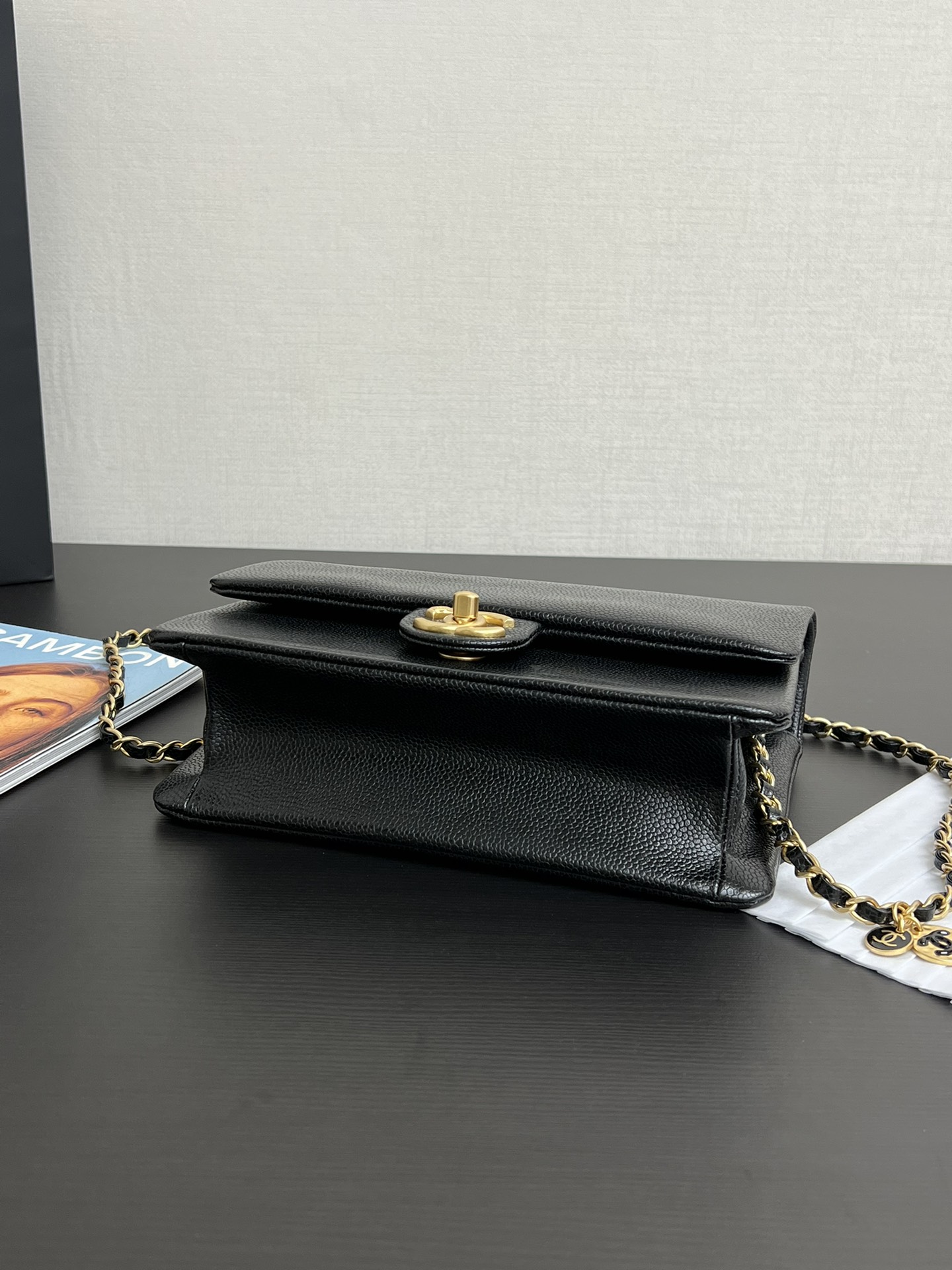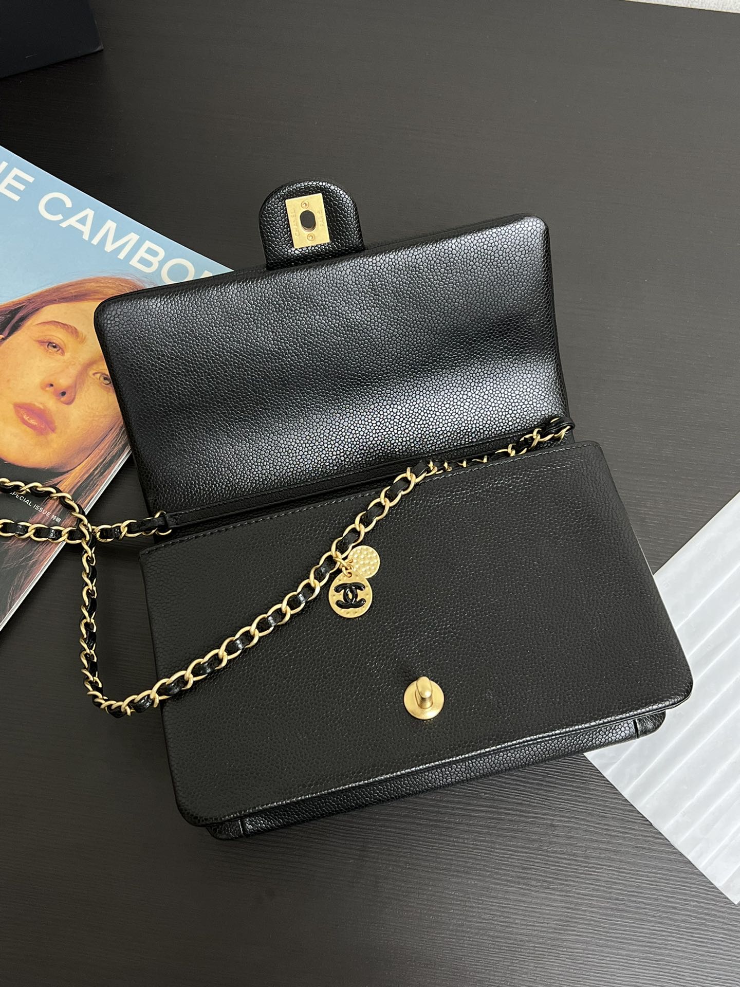 Chanel Mini Flap Bag Black Shiny Grained Calfskin Brushed