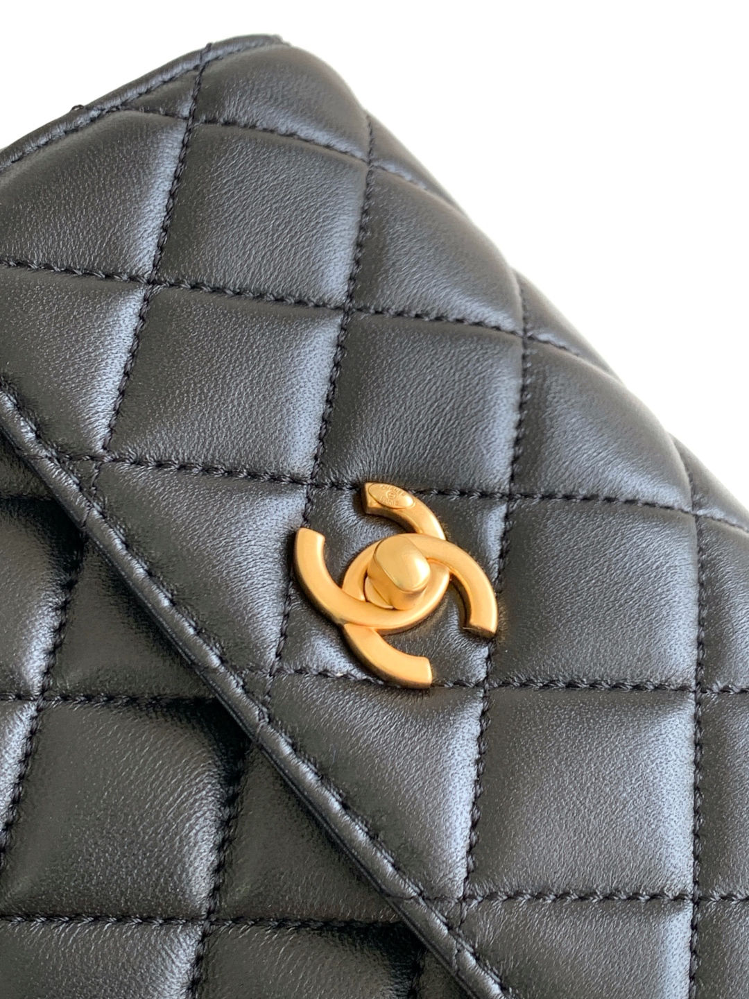 Chanel Mini Mini Matelasse Lambskin Chain Shoulder Bag Black Gold Metal Fittings