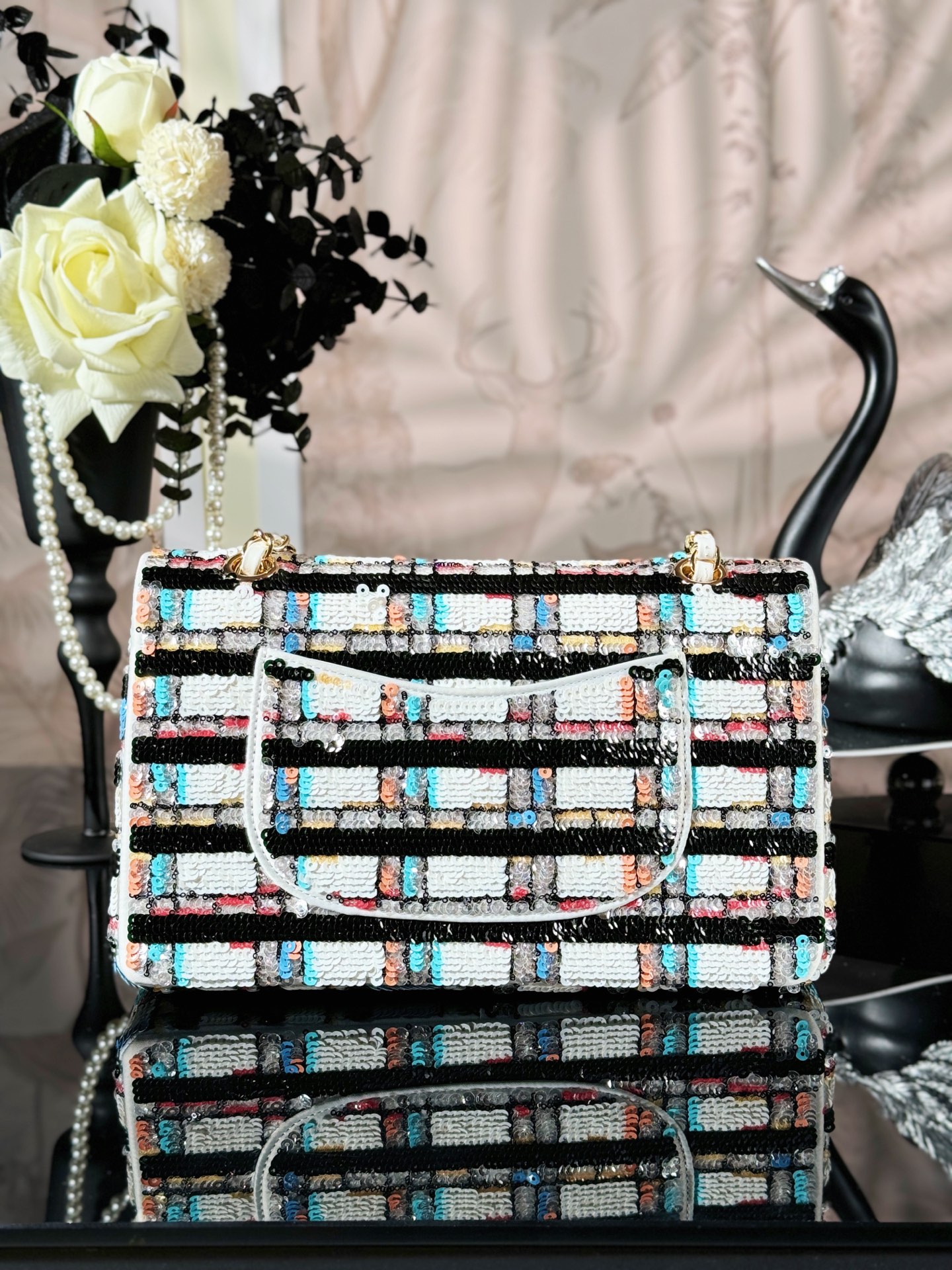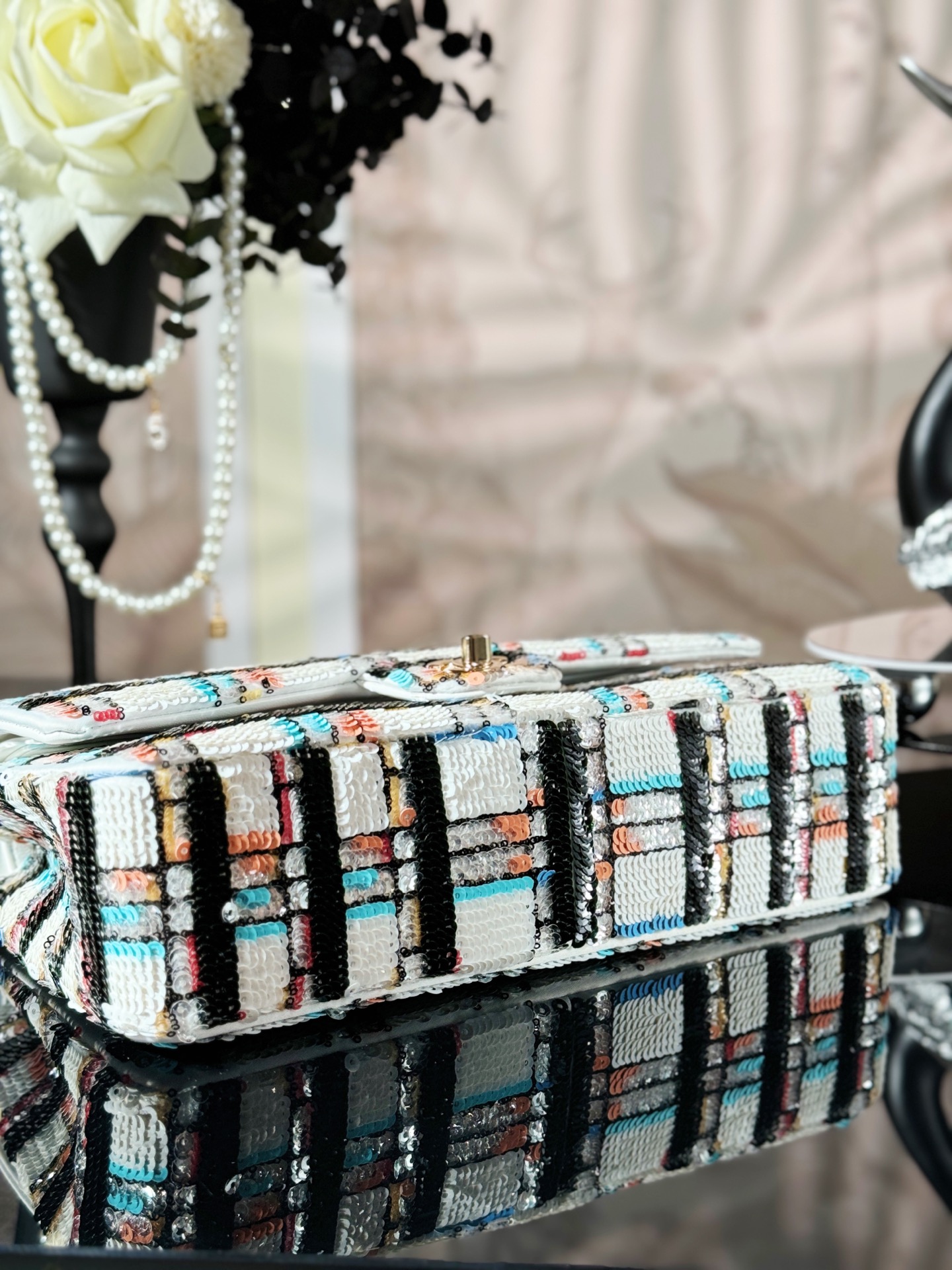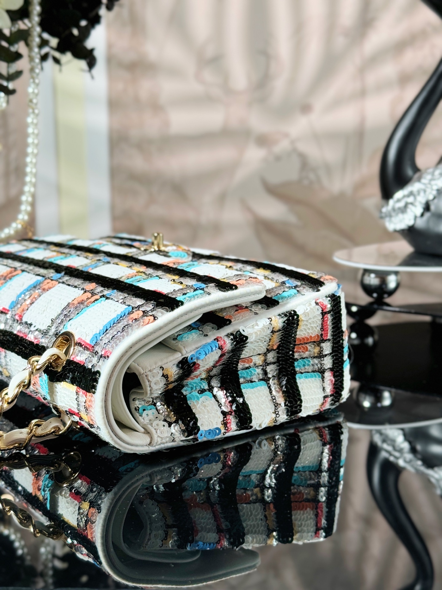 Chanel Navy Sparkle Tweed Classic Mini Rectangular Flap