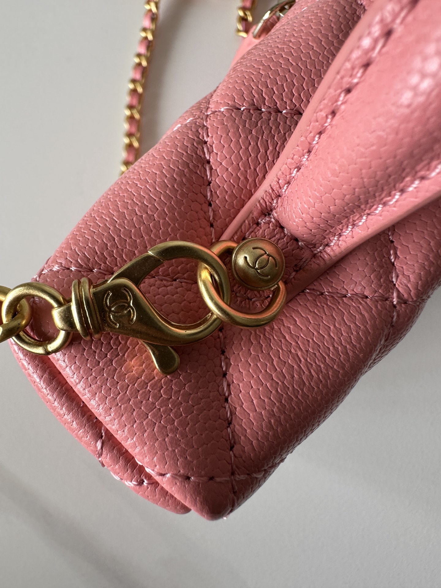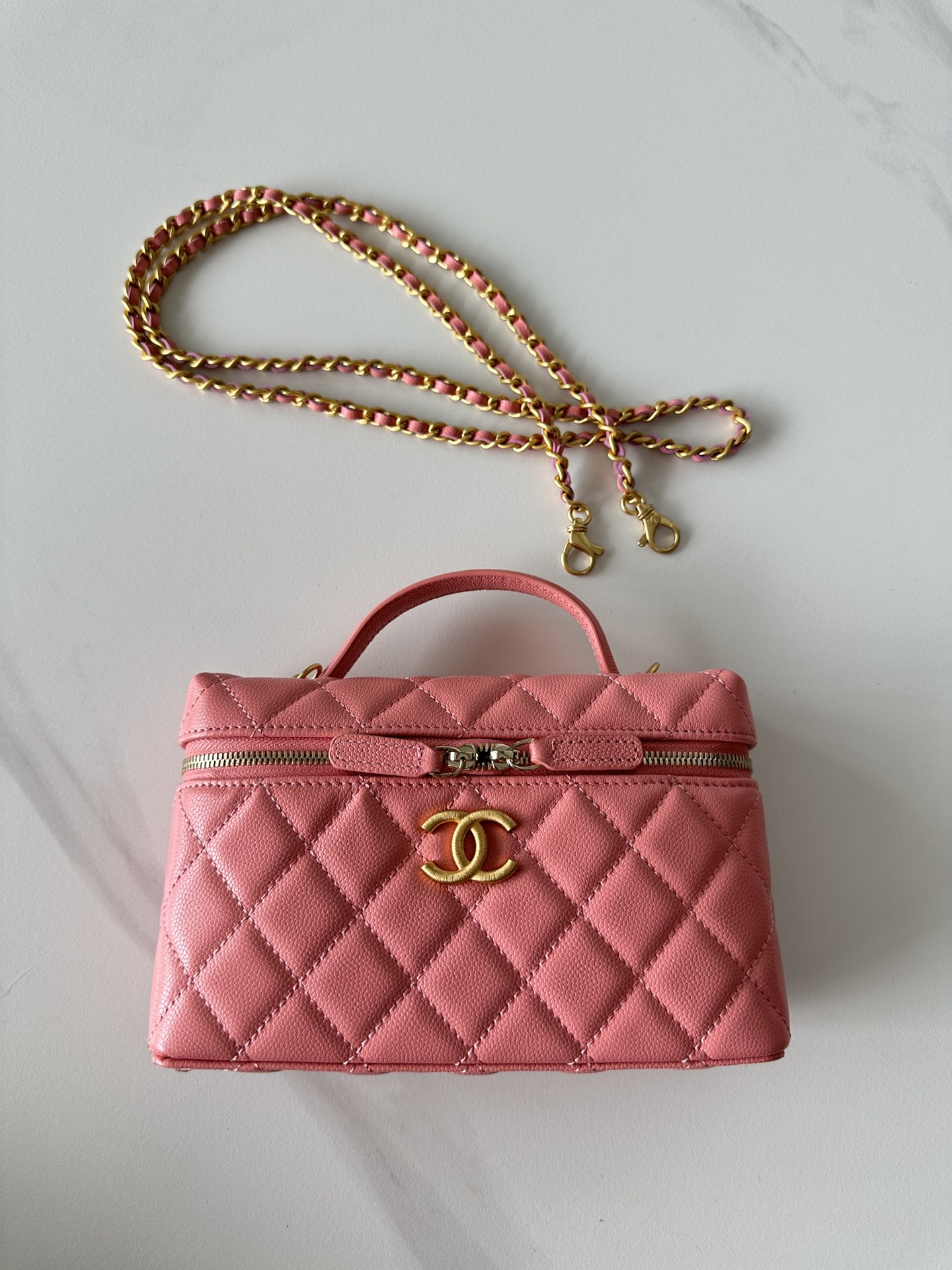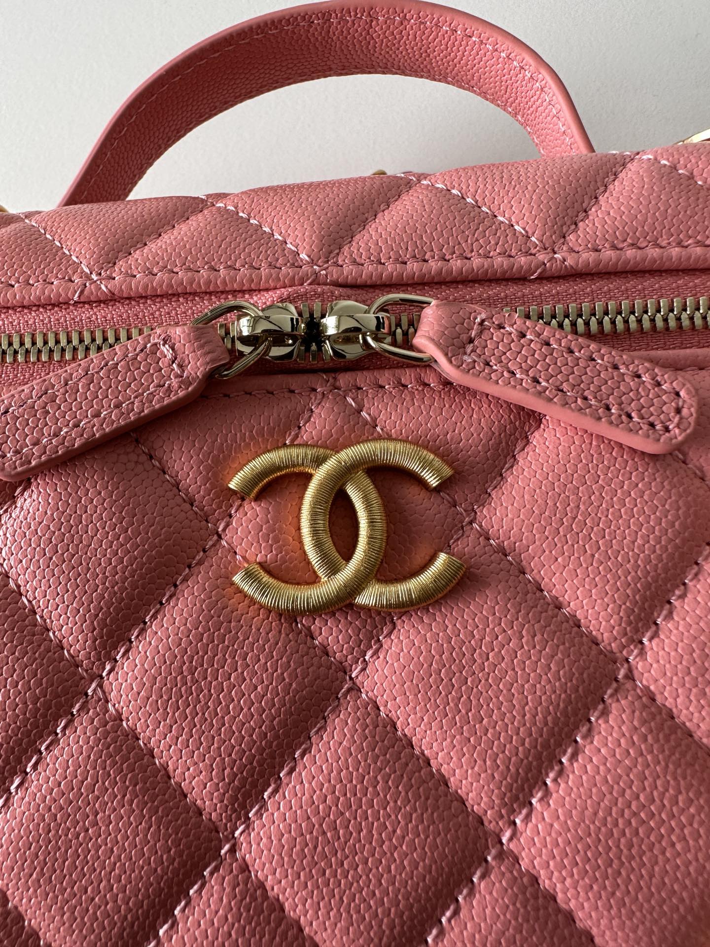 Chanel Pink Quilted Caviar Top Handle Mini Vanity Gold Hardware