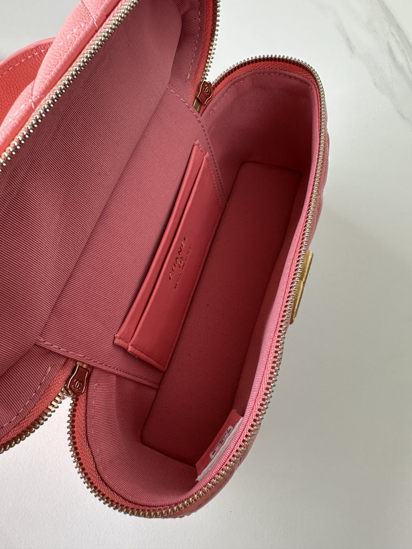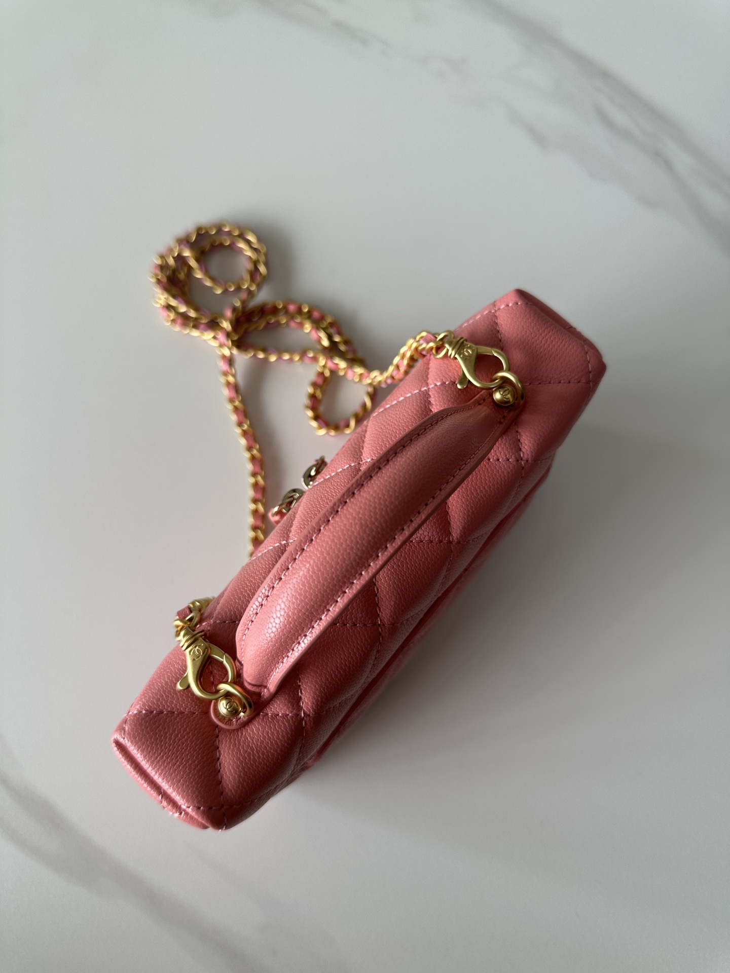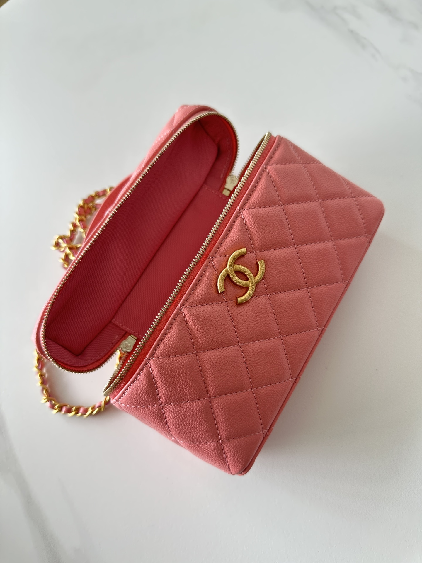 Chanel Pink Quilted Caviar Top Handle Mini Vanity Gold Hardware