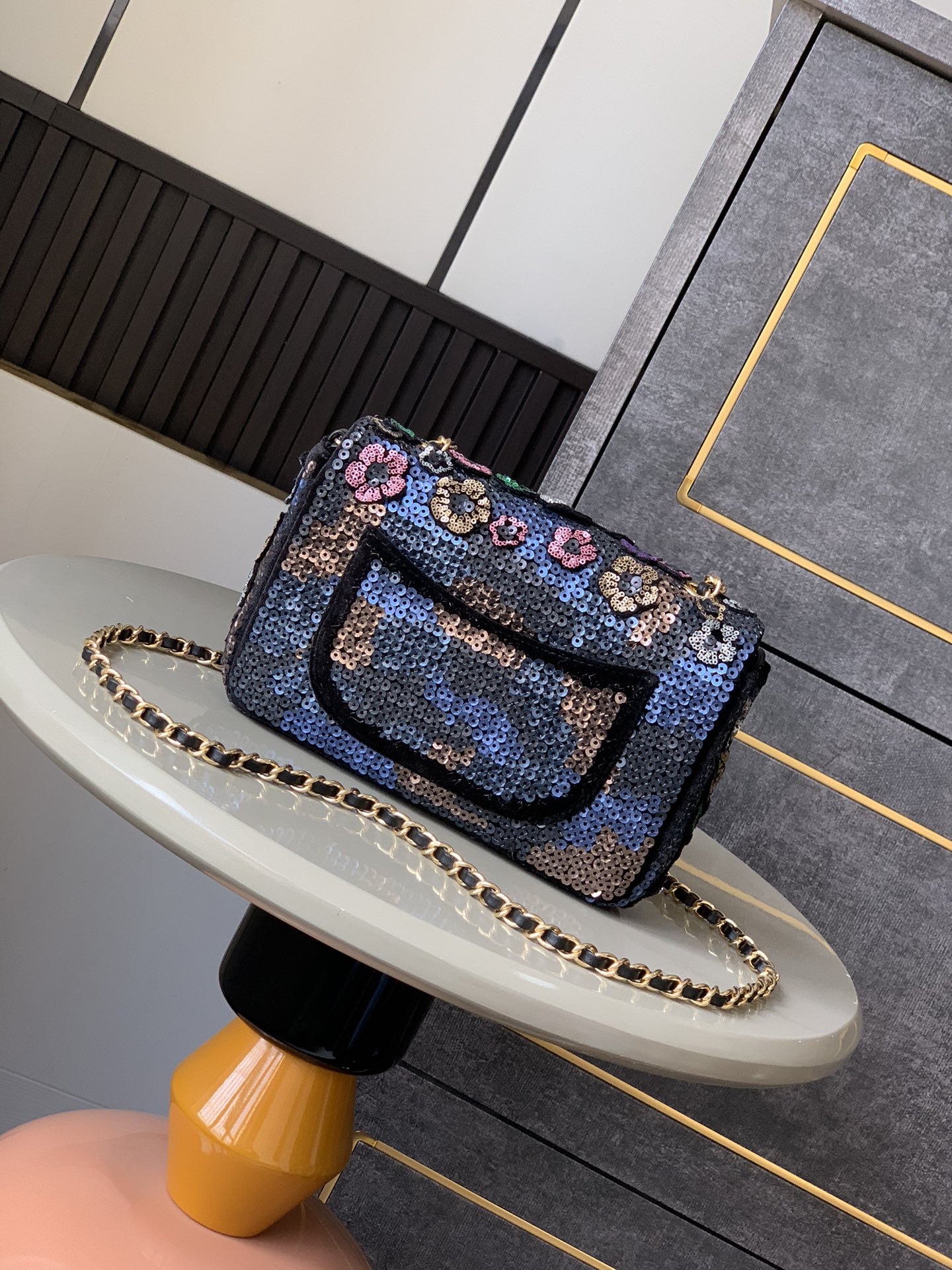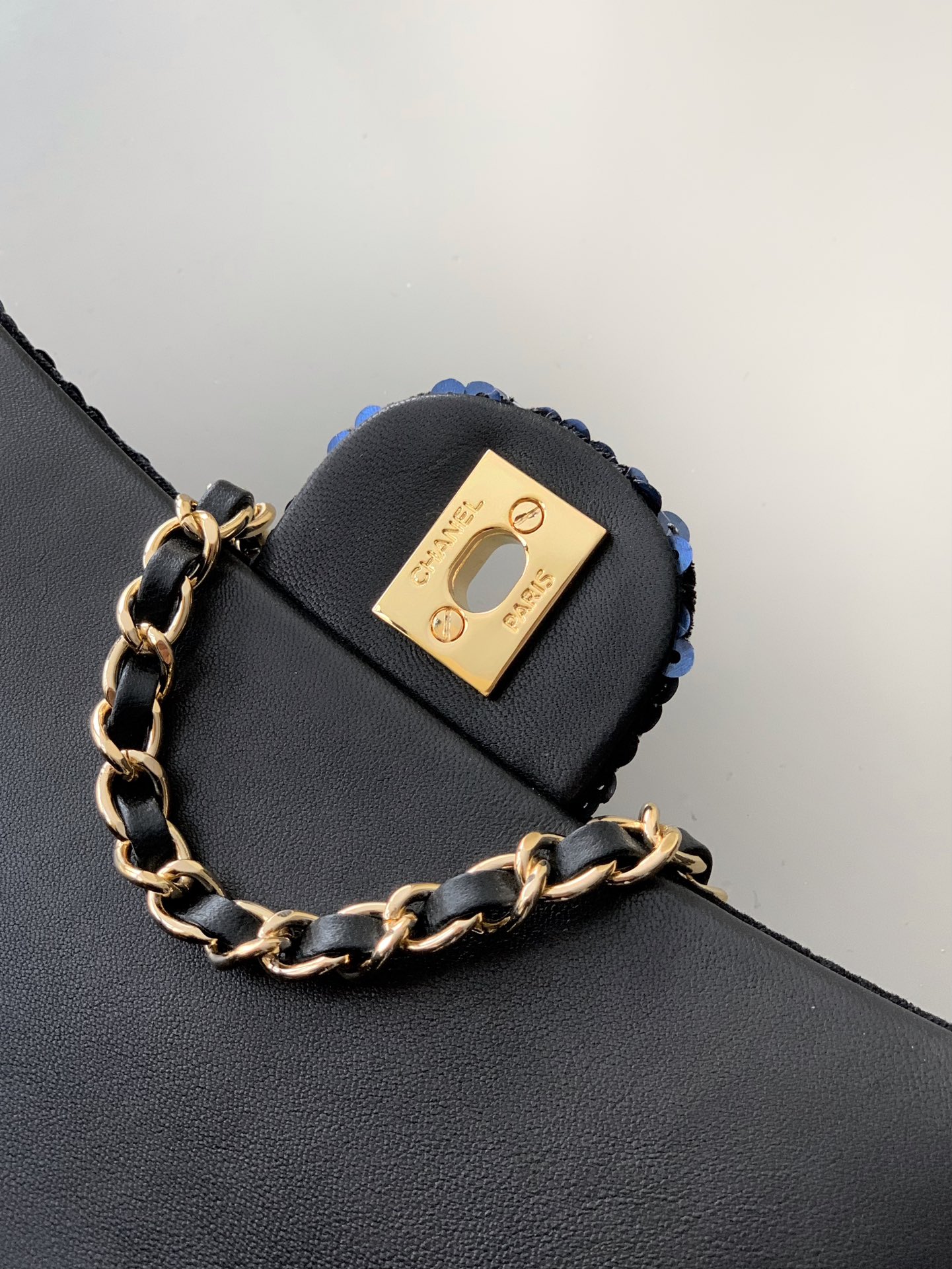 Chanel Quilted Small Camellia Sequin Single Flap Black Suede Shoulder Handbag