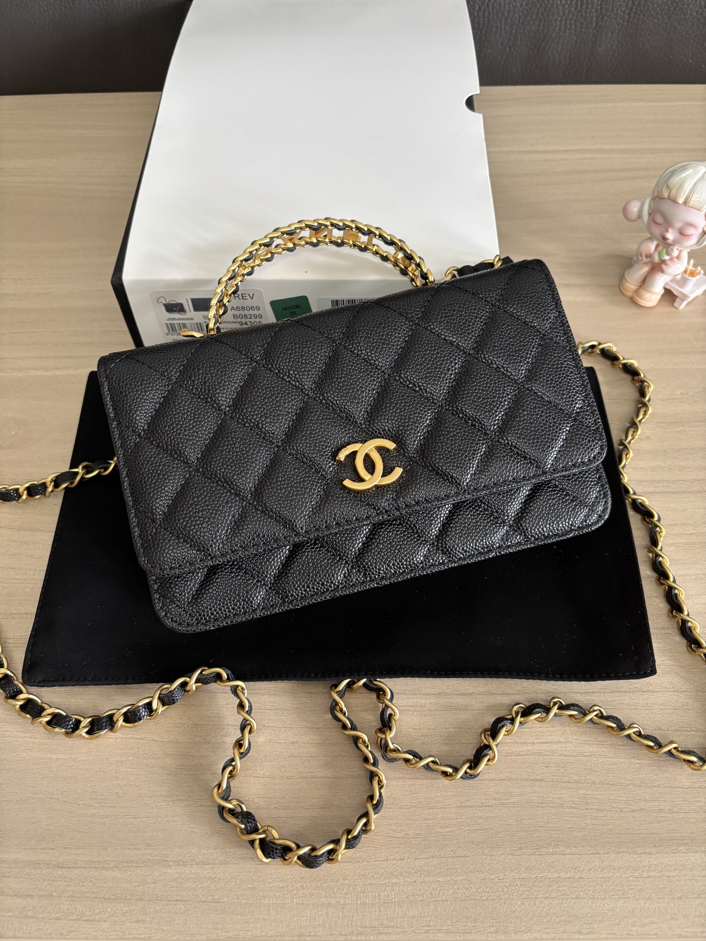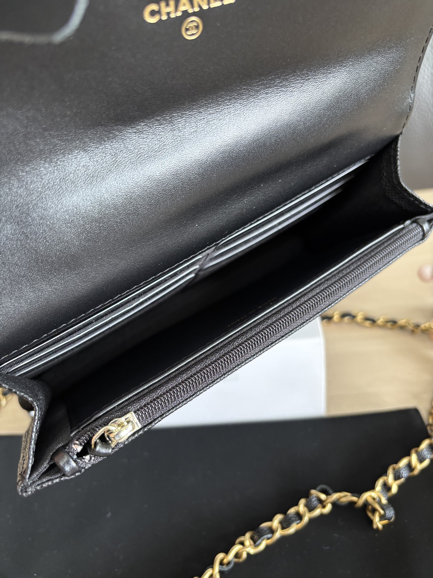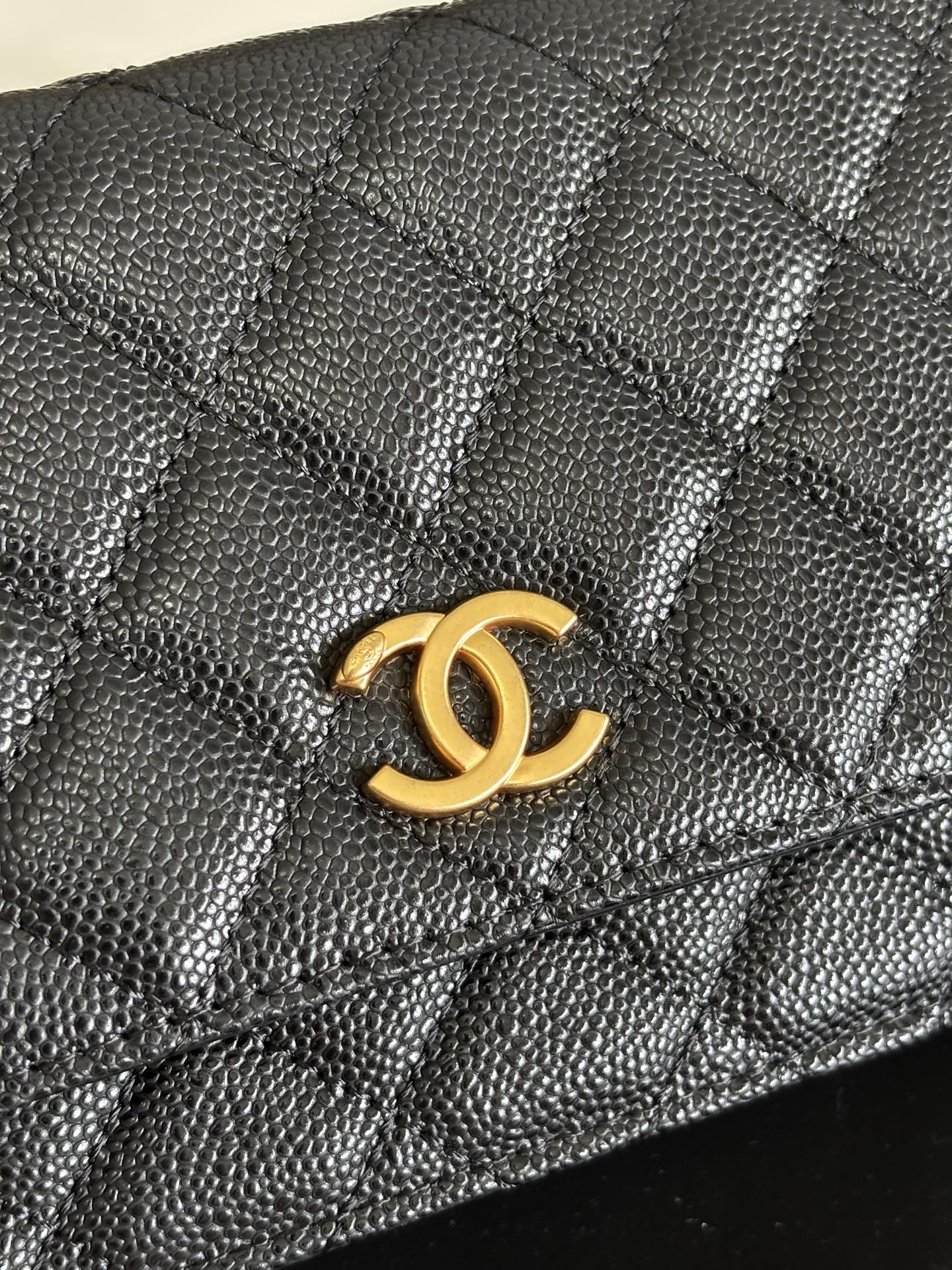 CHANEL Shiny Caviar Quilted Pick Me Up Wallet On Chain WOC Black 1002132