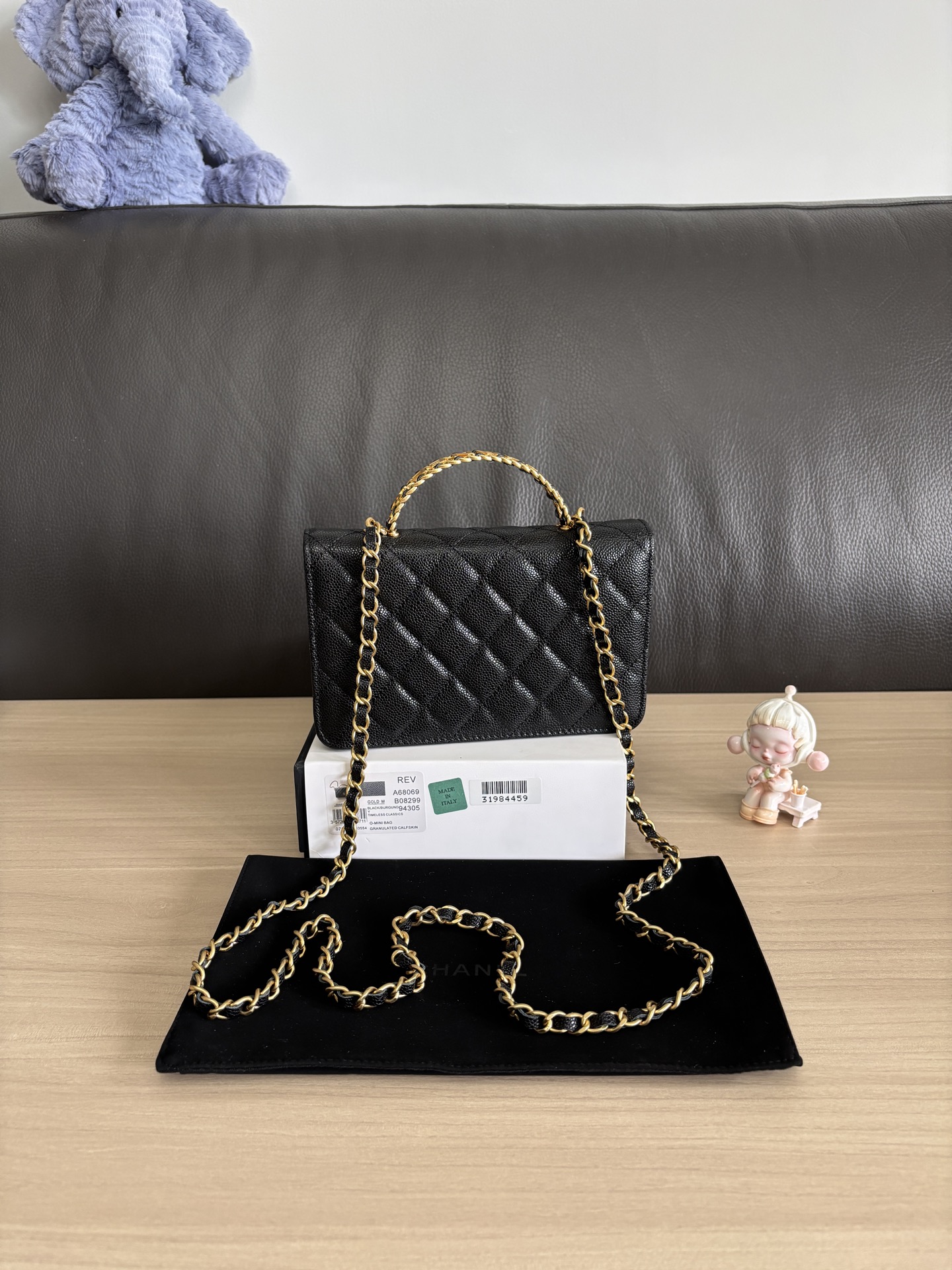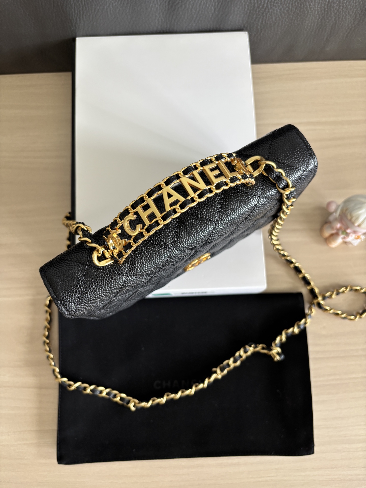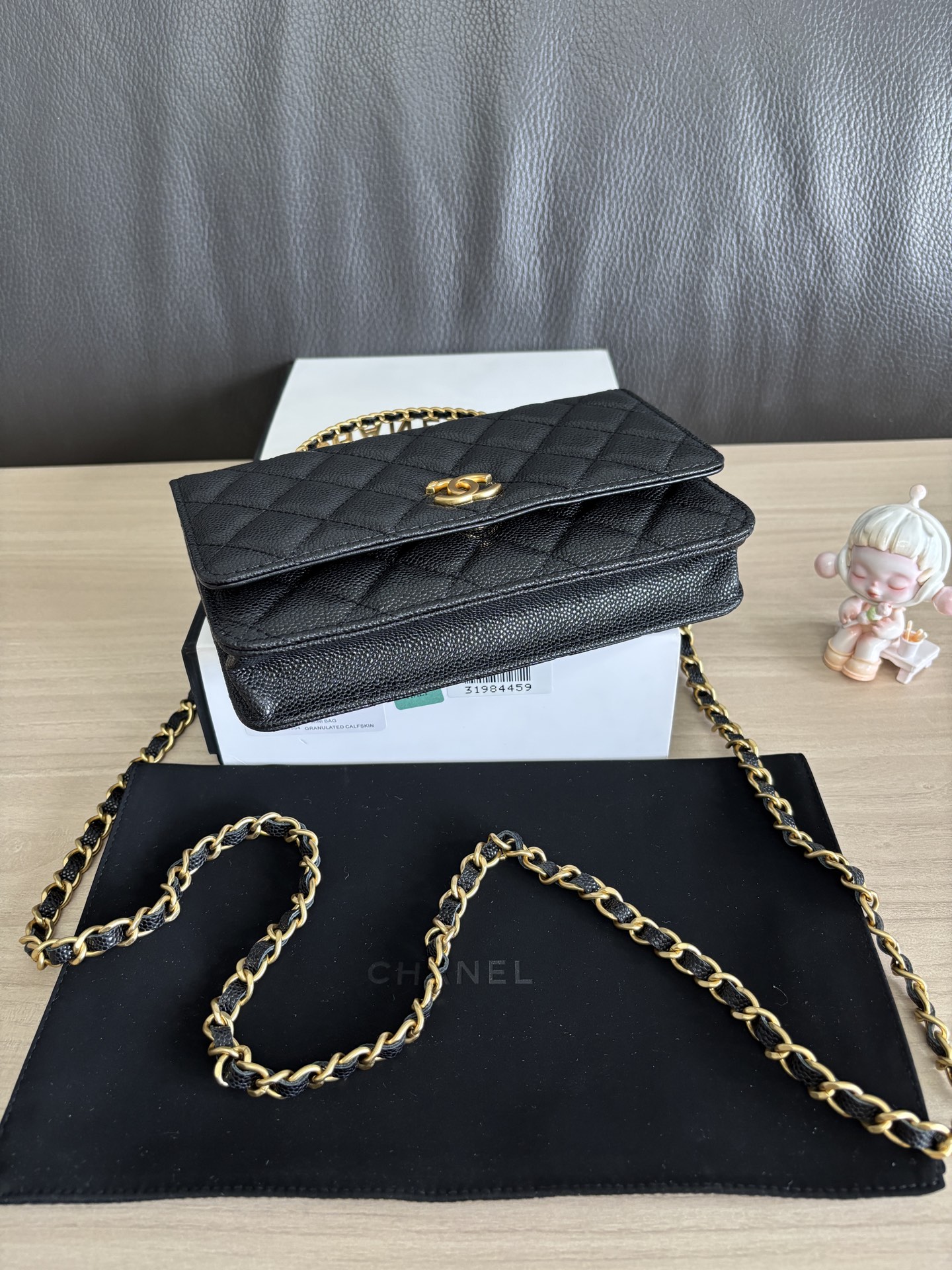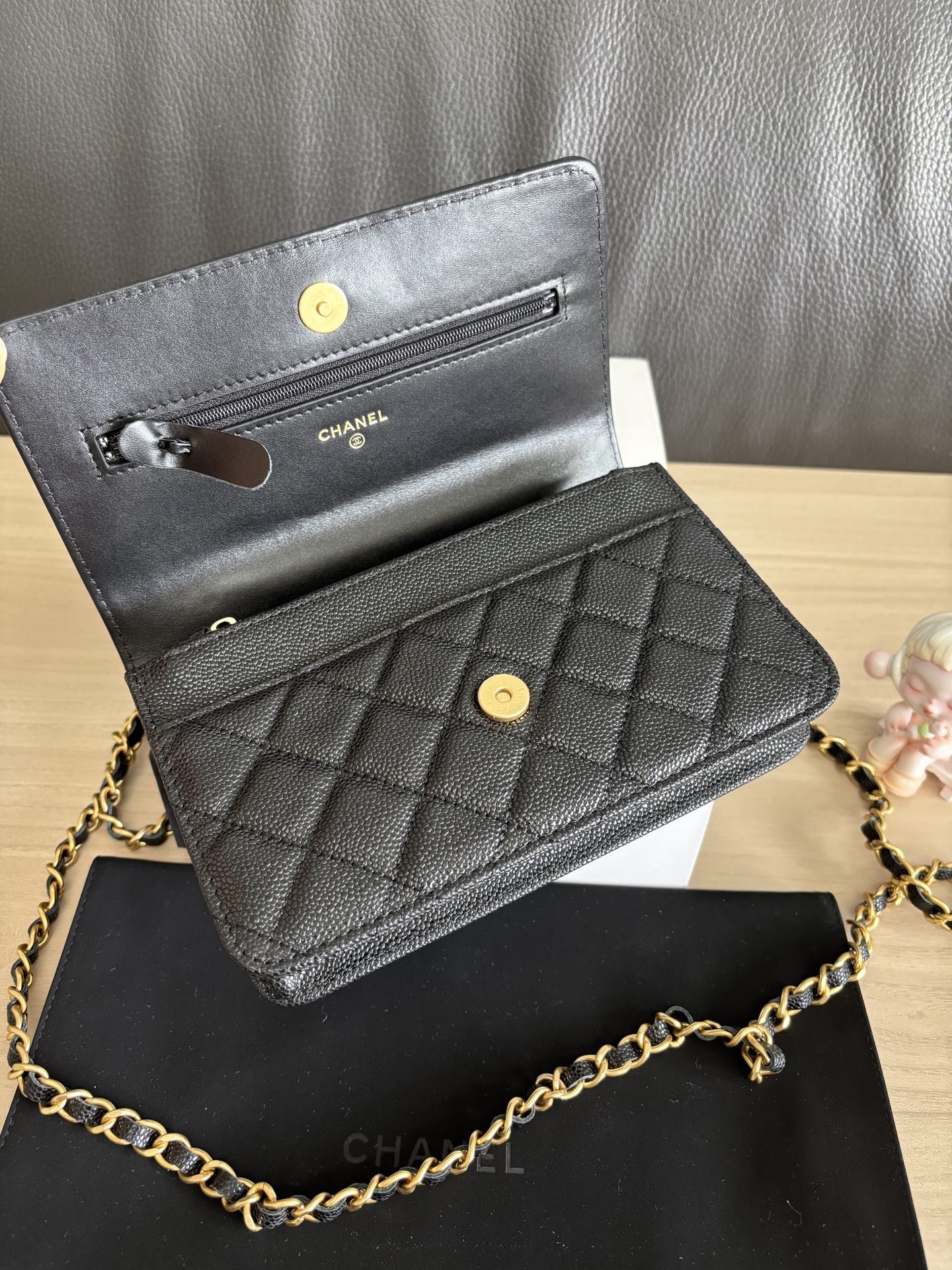 CHANEL Shiny Caviar Quilted Pick Me Up Wallet On Chain WOC Black 1002132