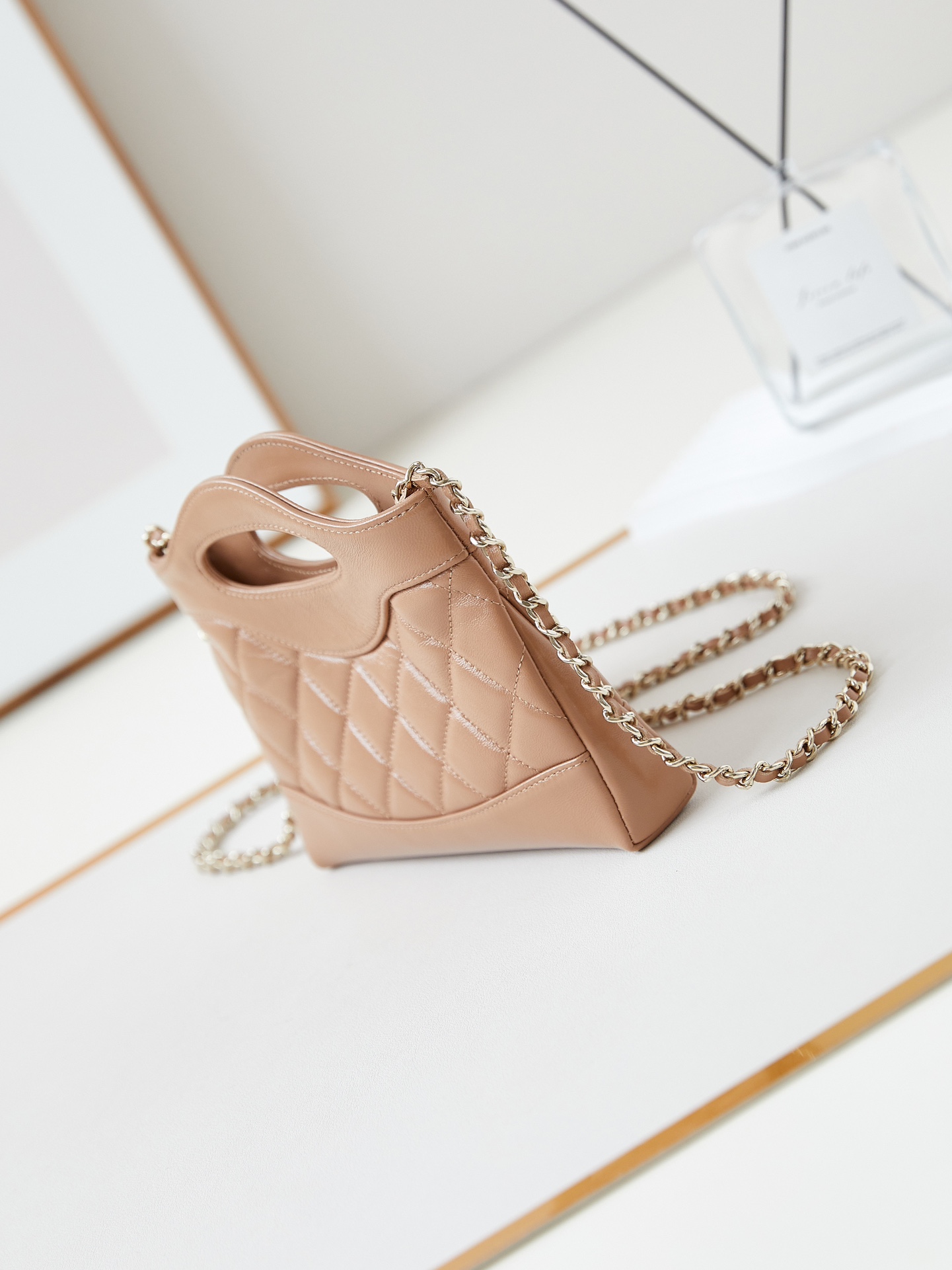 Chanel Shiny Crumpled Calfskin Quilted Mini 31 Shopping Bag Dark Beige