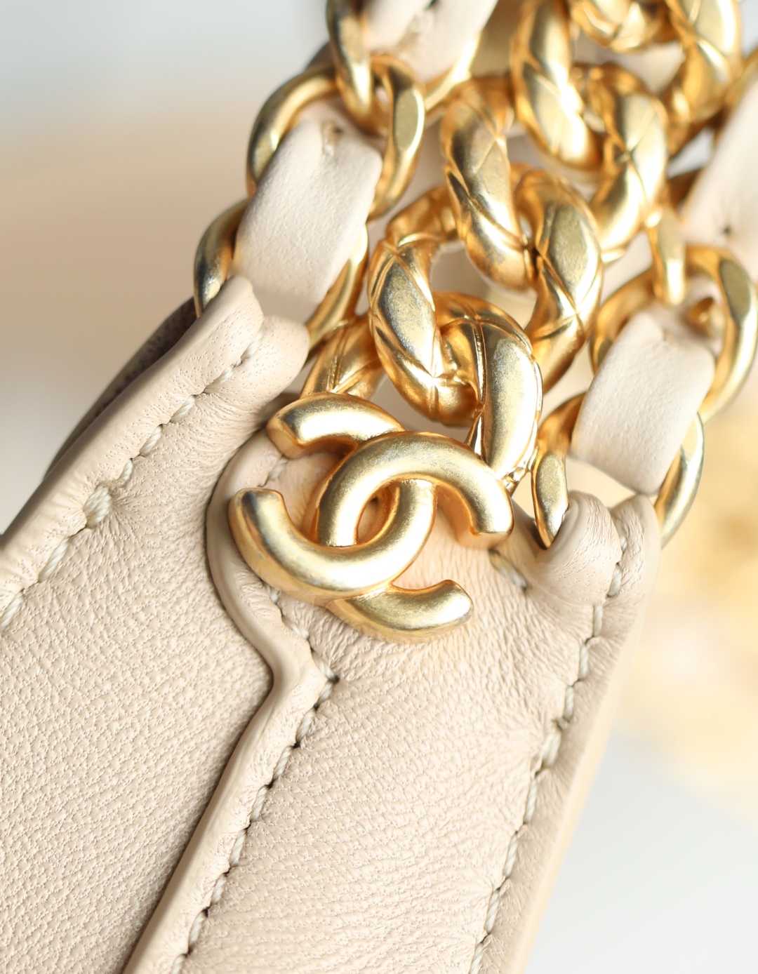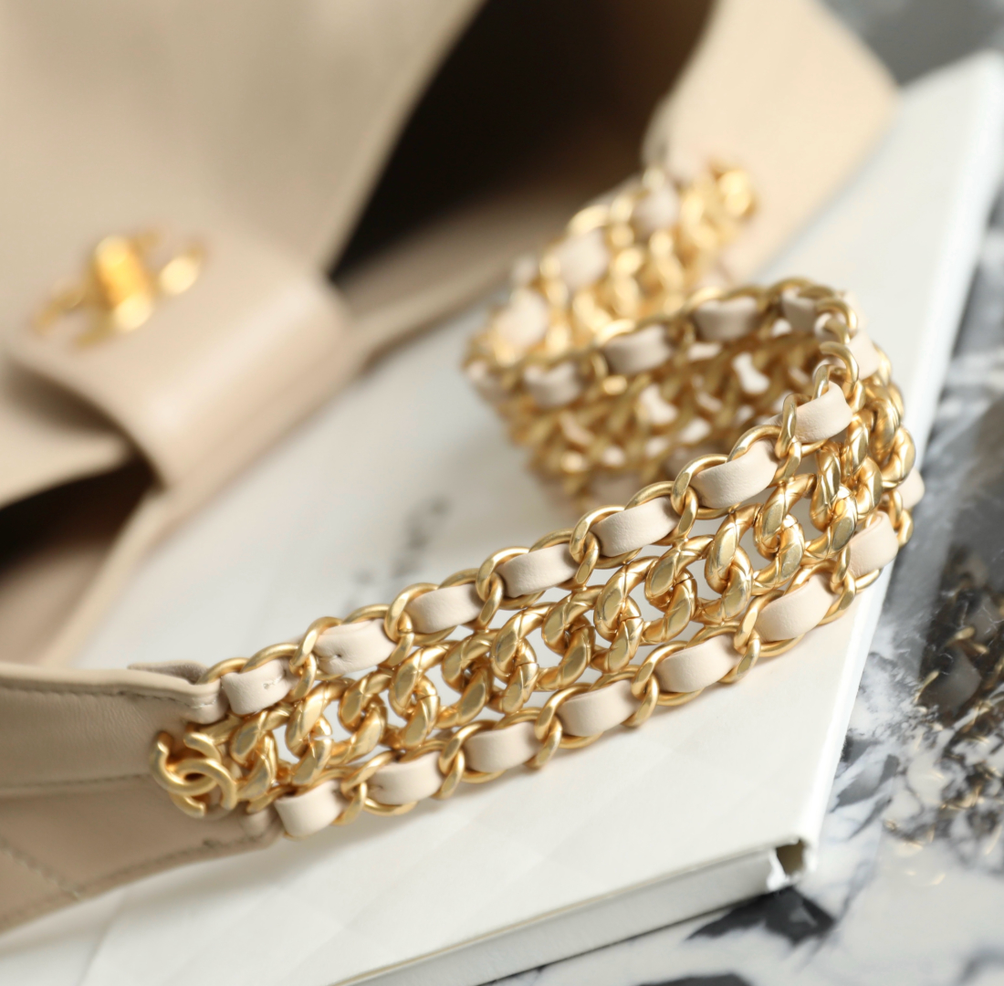 CHANEL Shiny Lambskin Quilted Hobo Beige 1629921