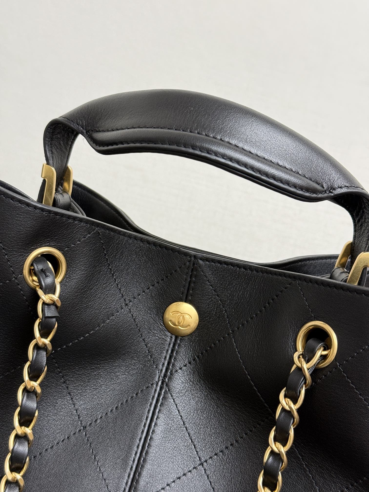 Chanel Shopping bag, Calfskin & gold-tone metal, black — Fashion