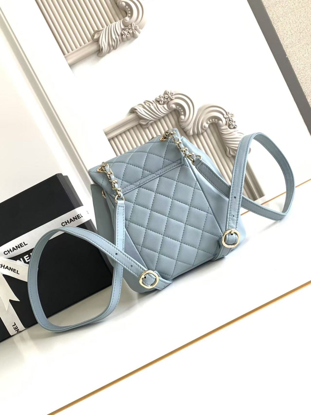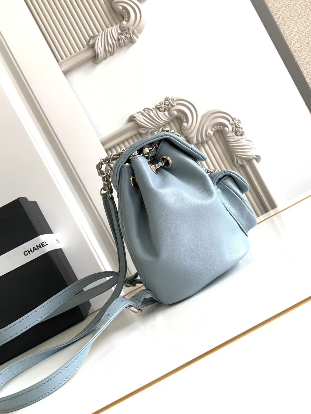 Chanel Small Duma Backpack Light Blue Lambskin Light Gold