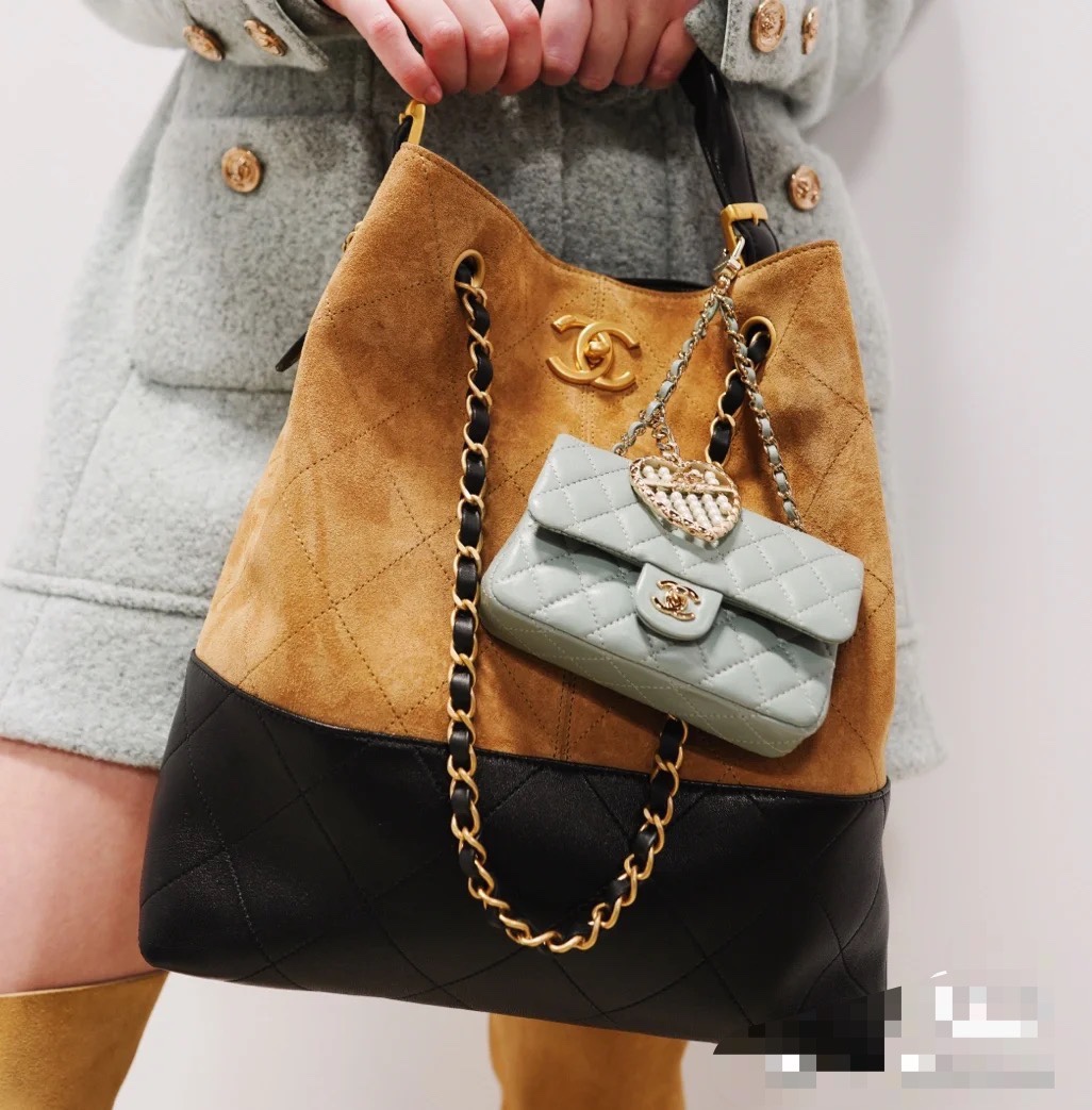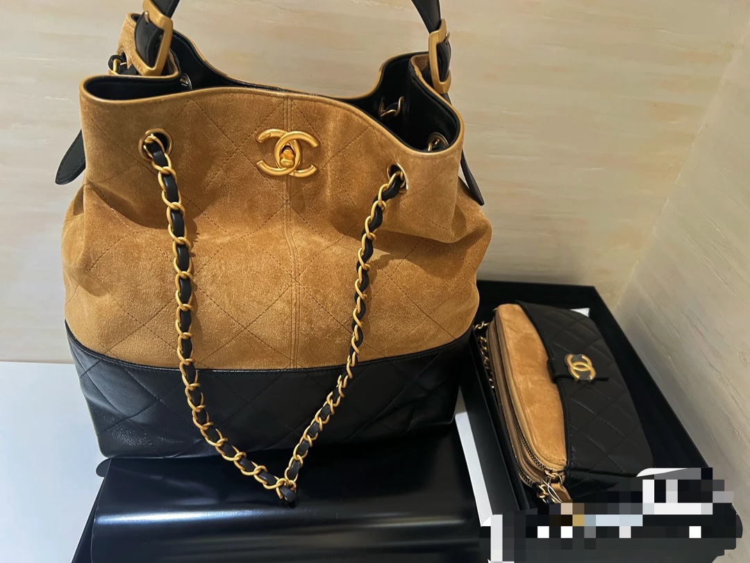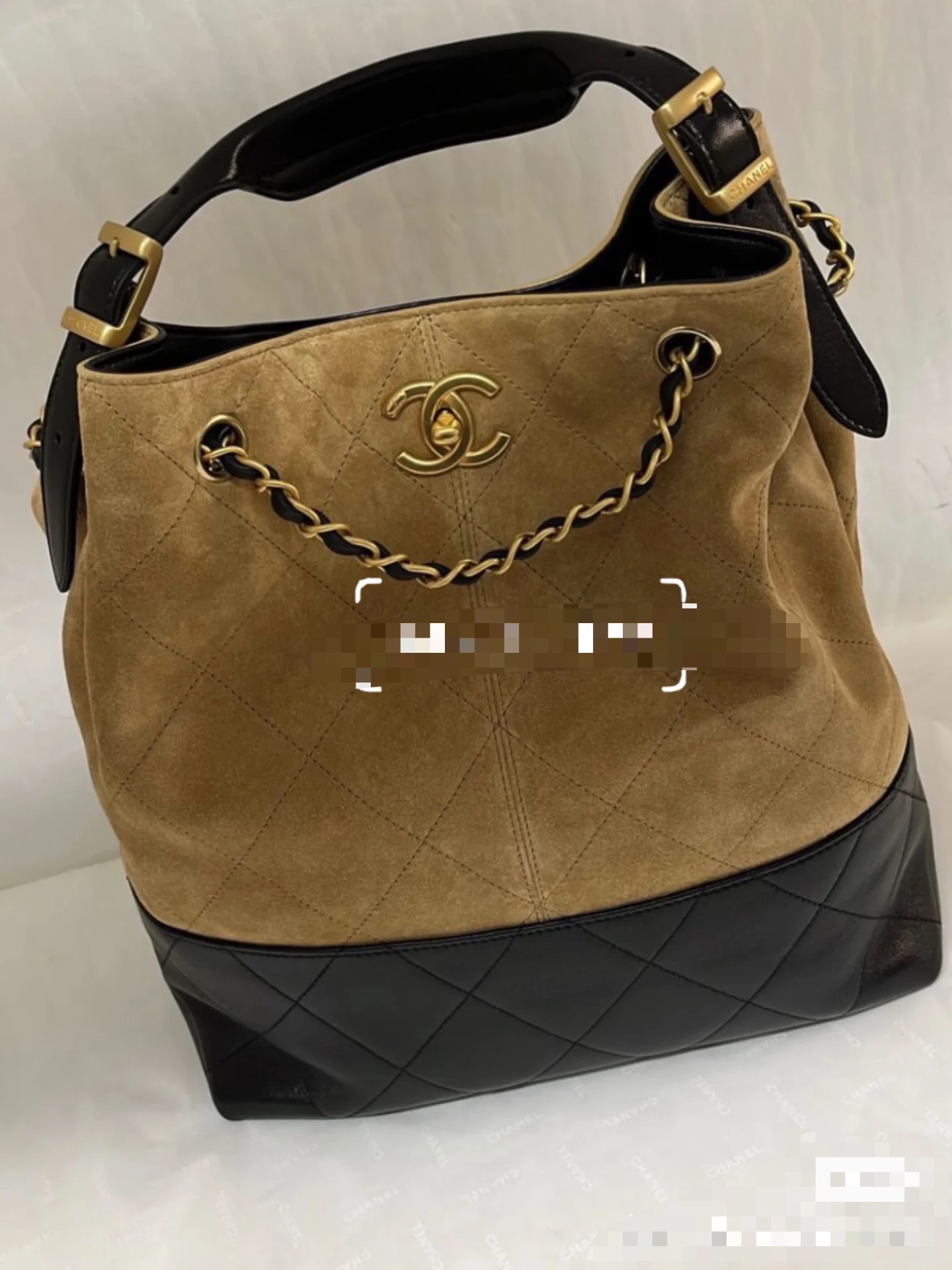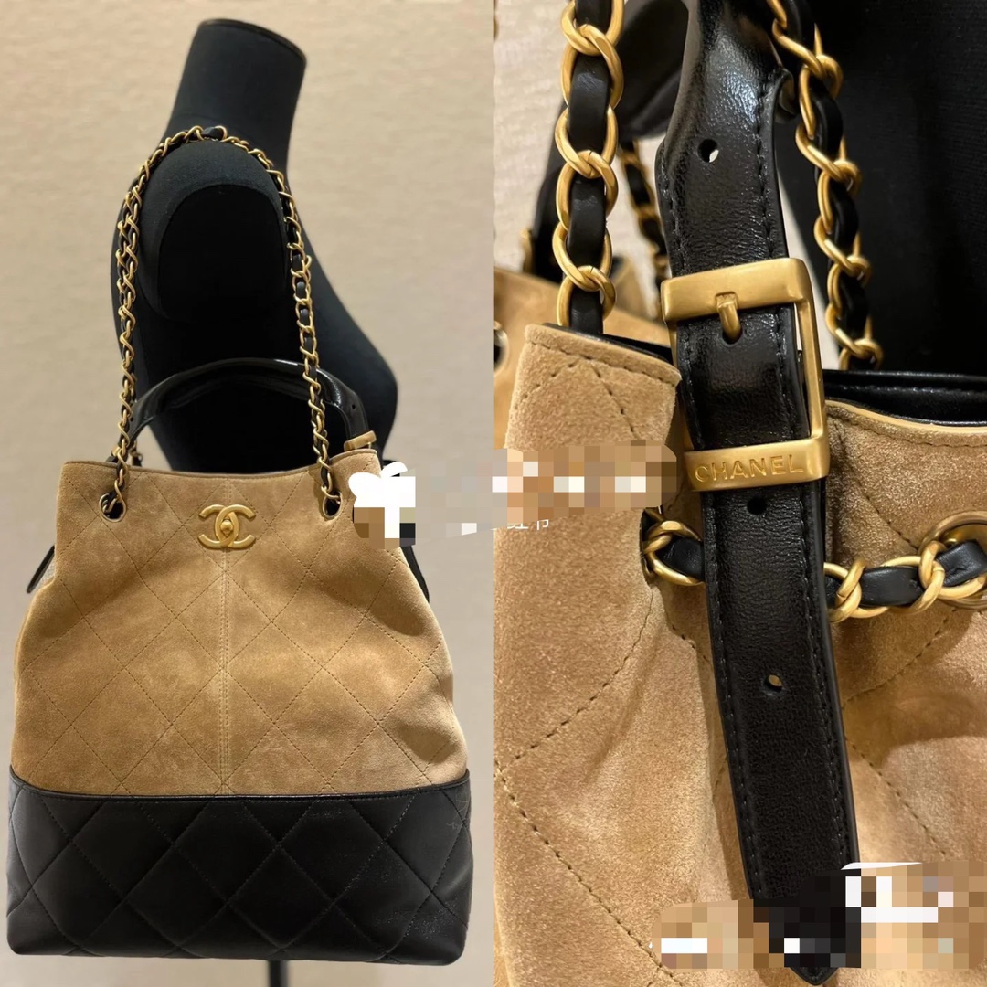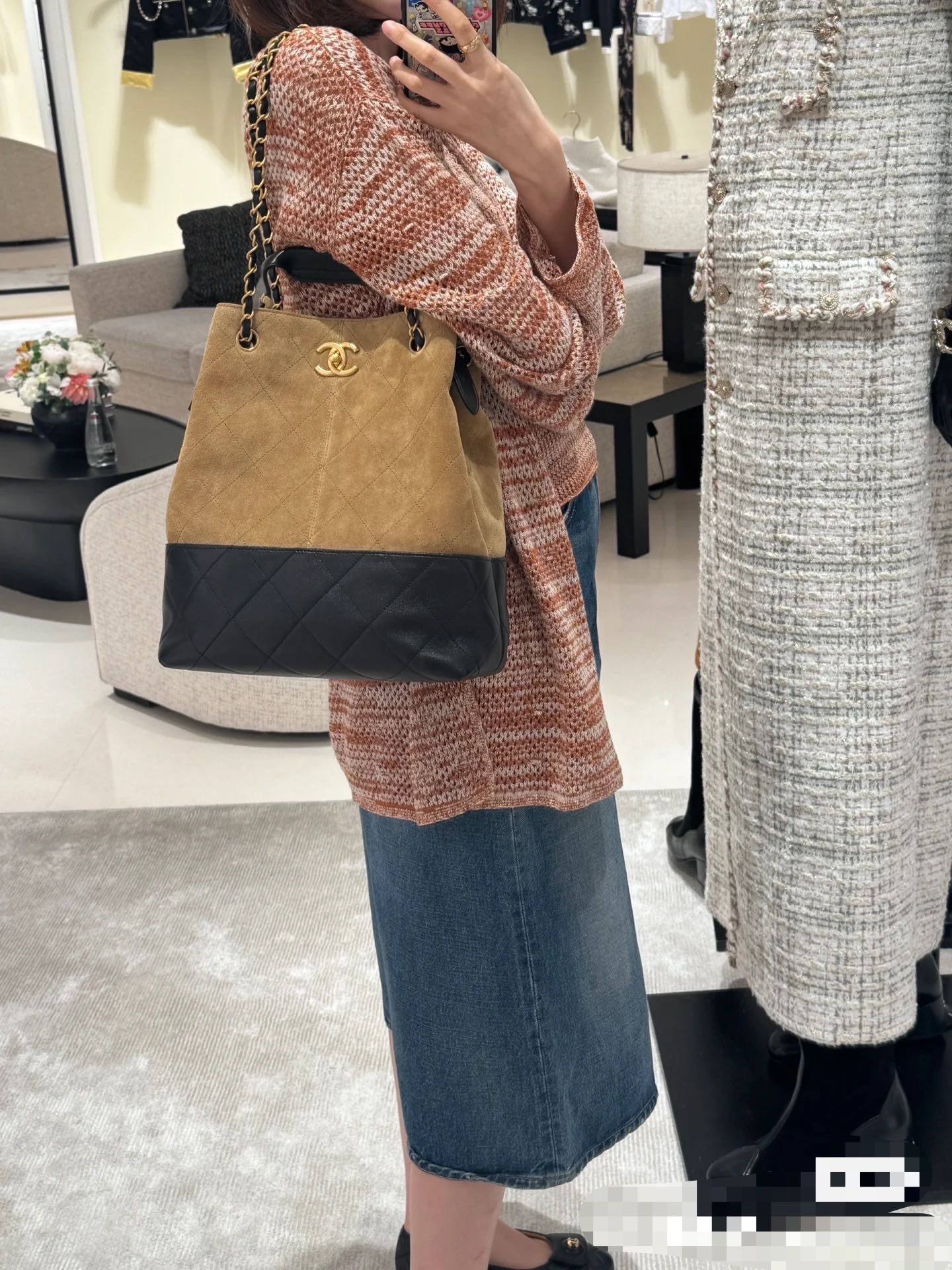 Chanel Small shopping bag, Suede calfskin, shiny lambskin & gold
