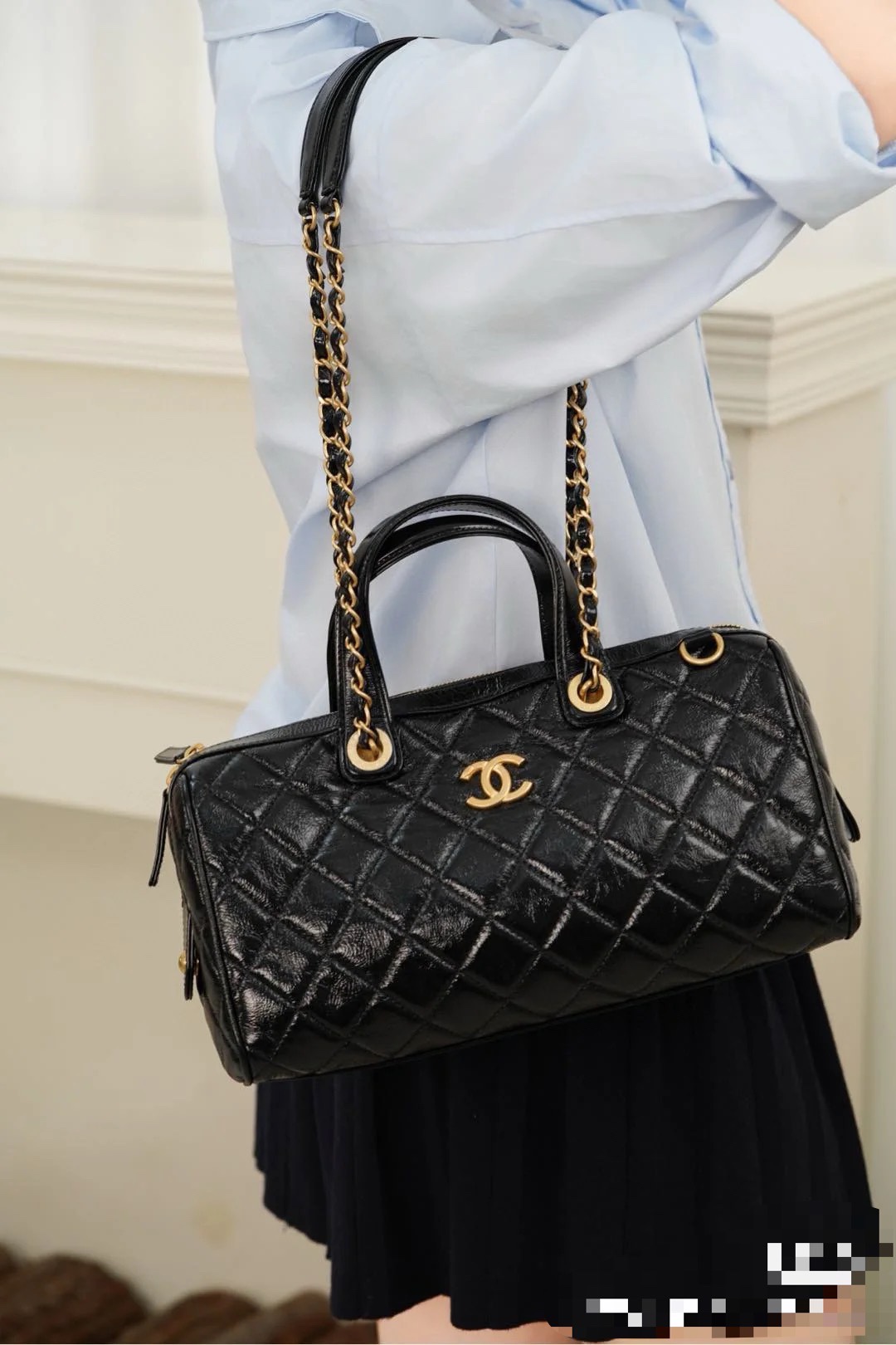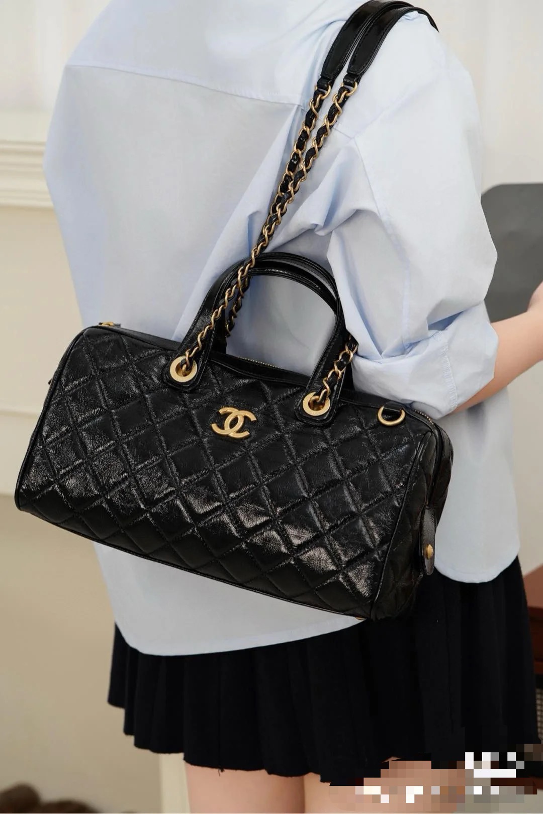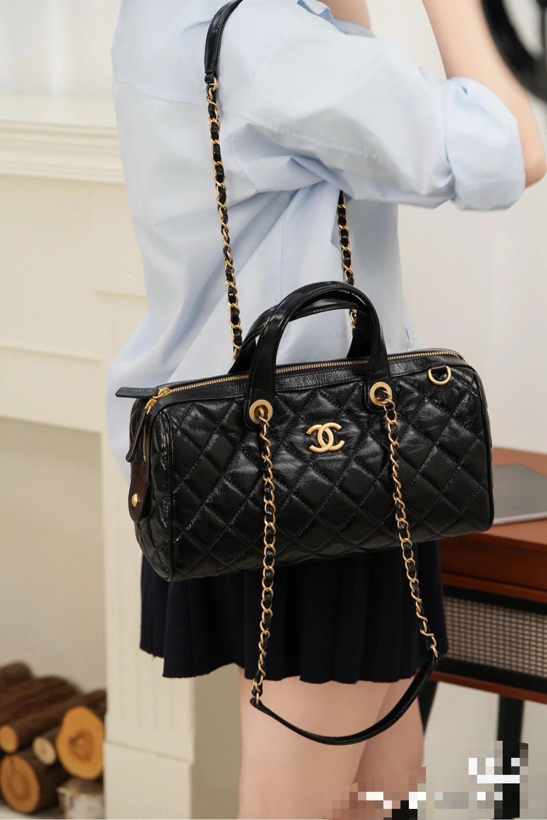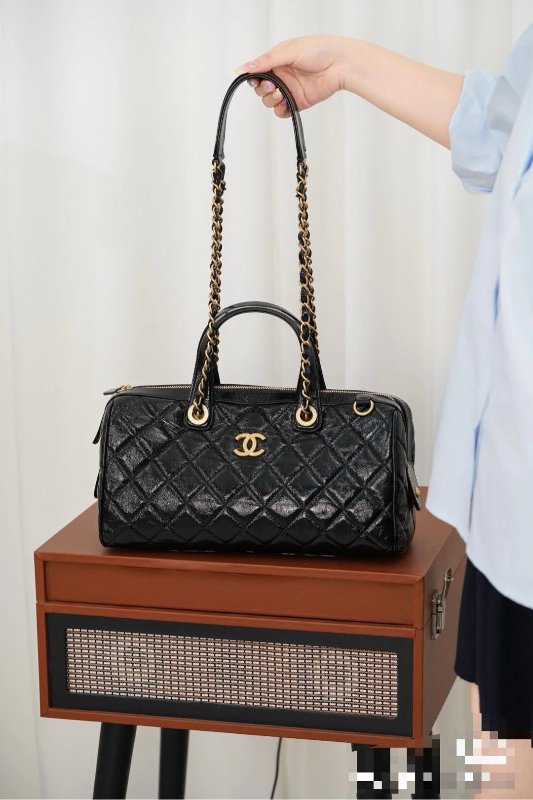Chanel Travel bag, Patent crumpled calfskin & gold-tone metal ,