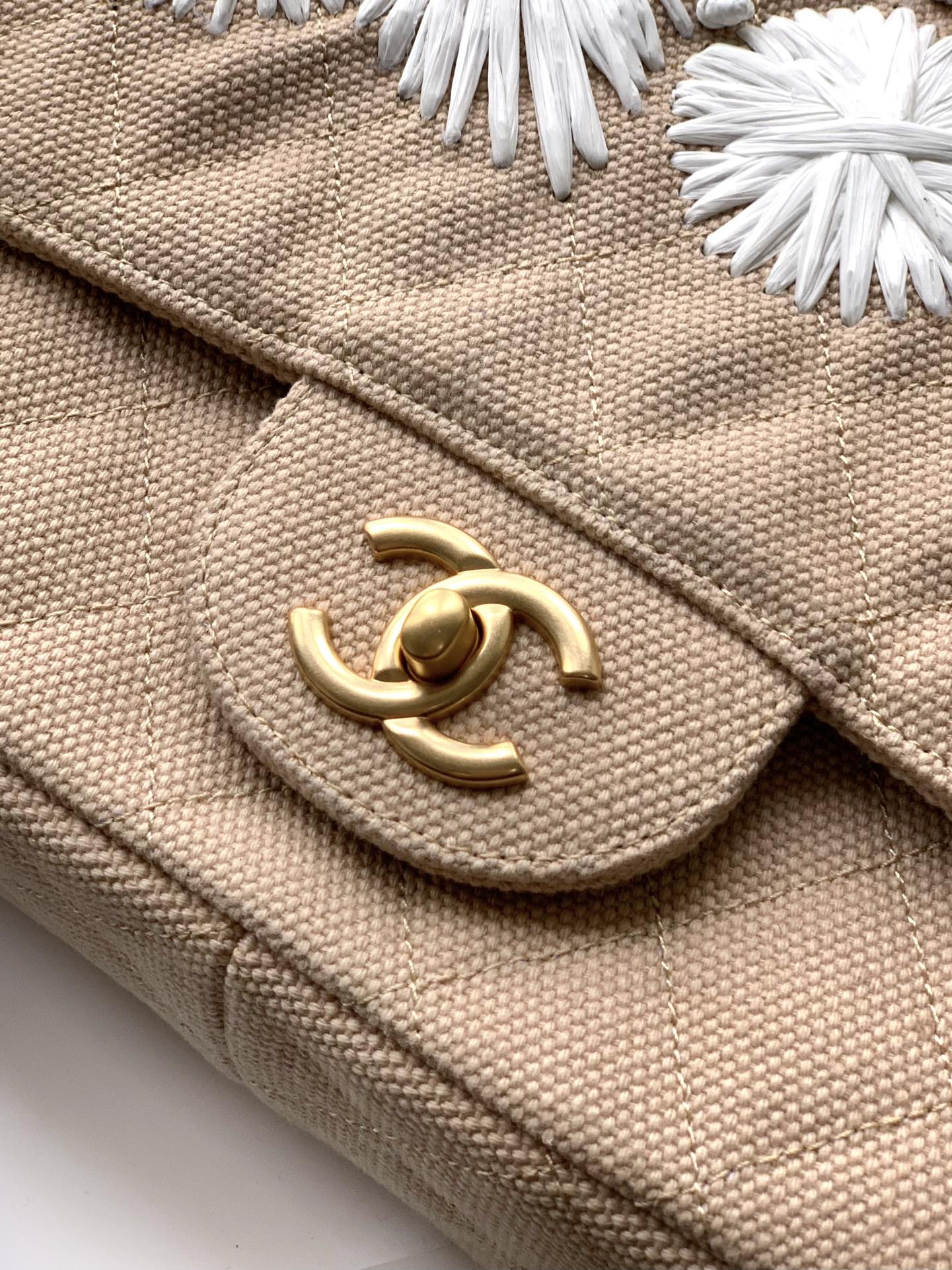 CHANEL Tweed Raffia Coco Country Jumbo Flap 752003