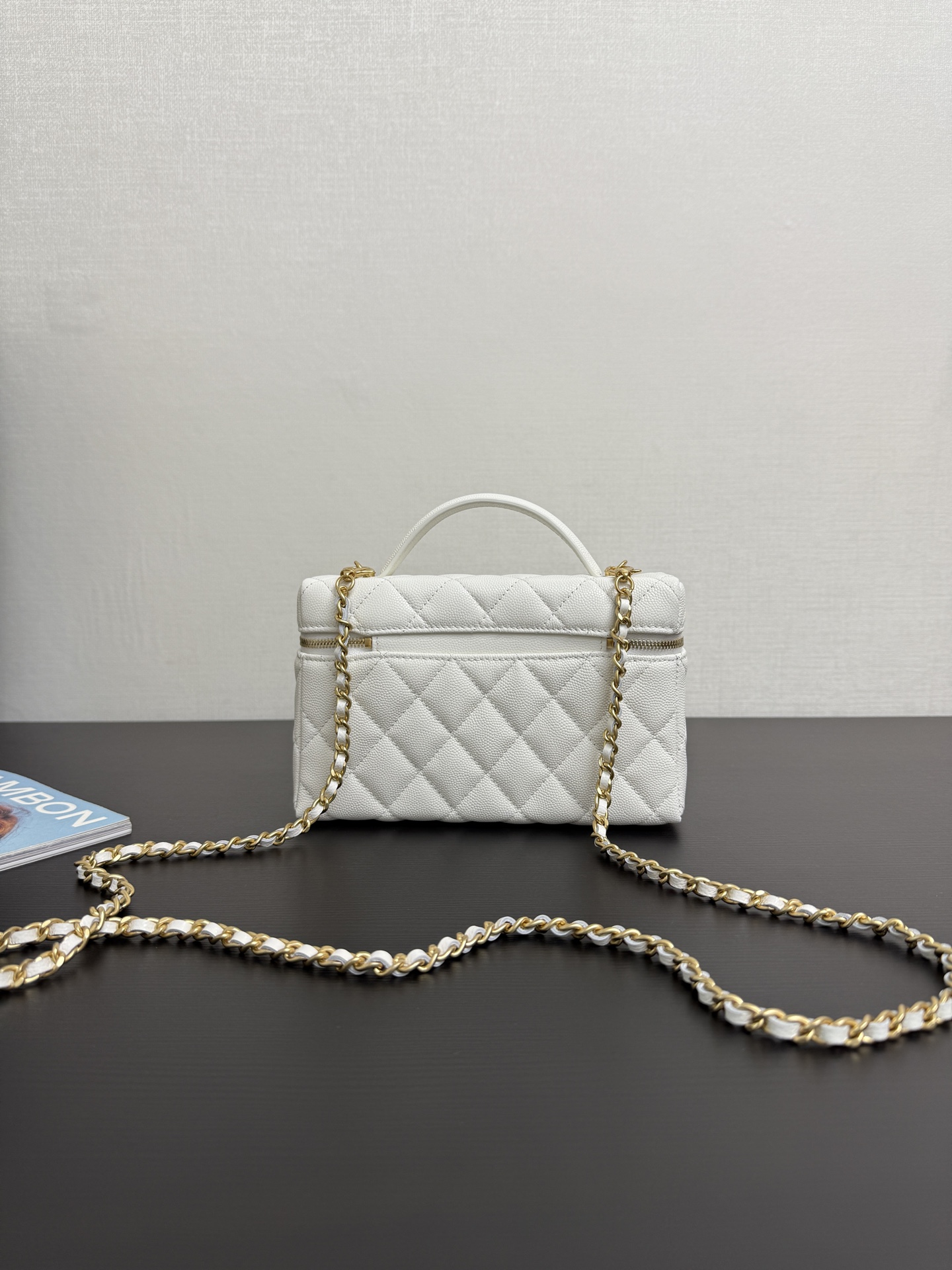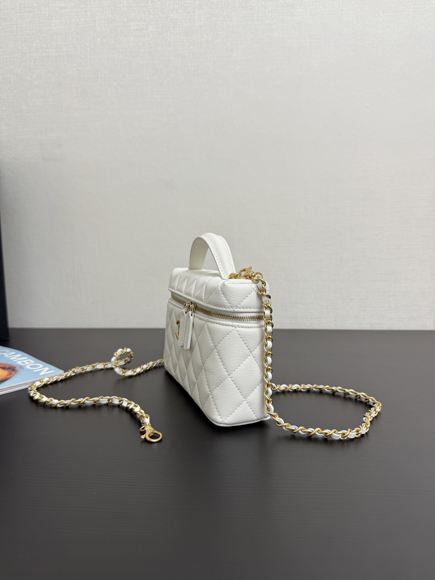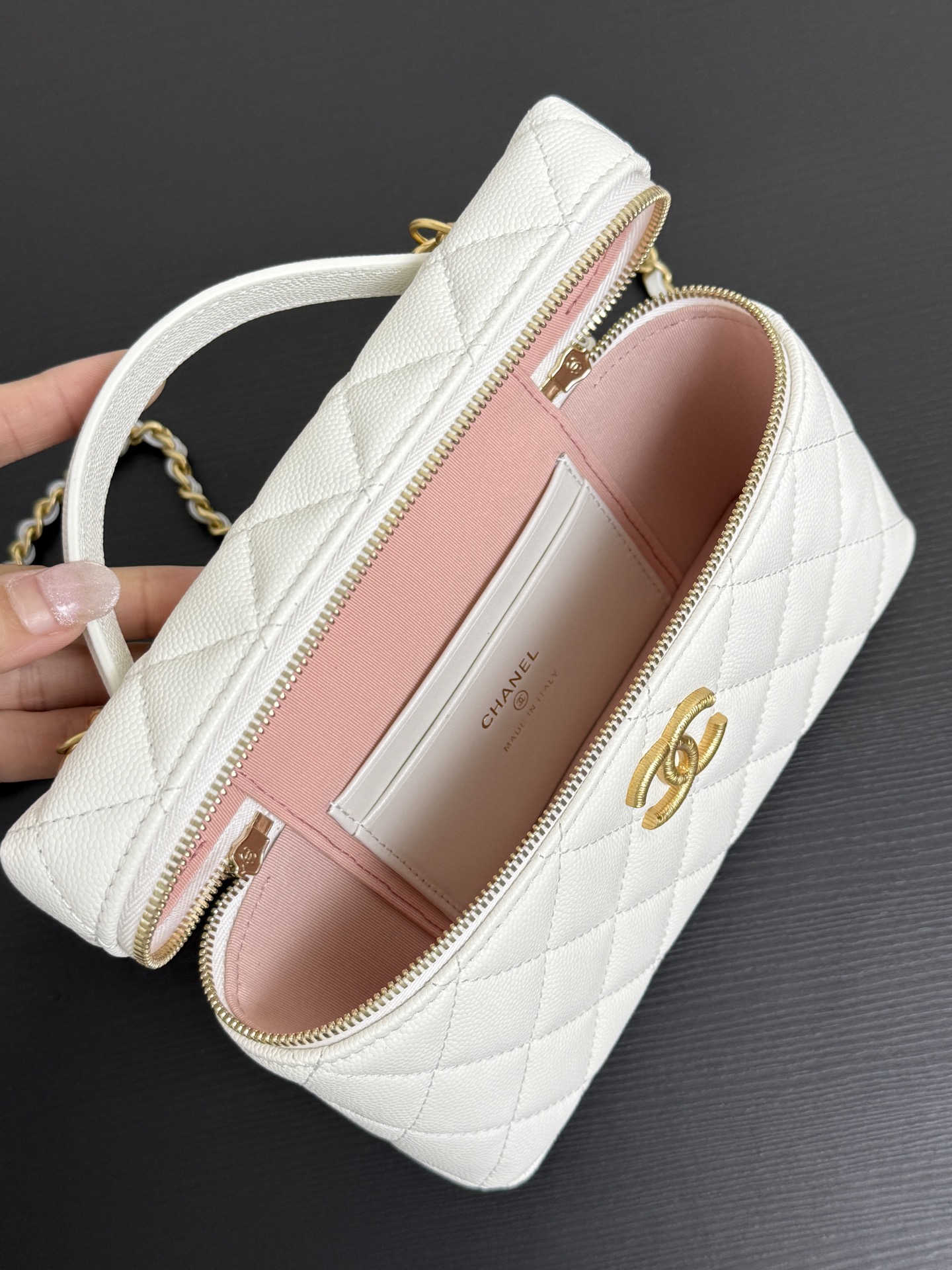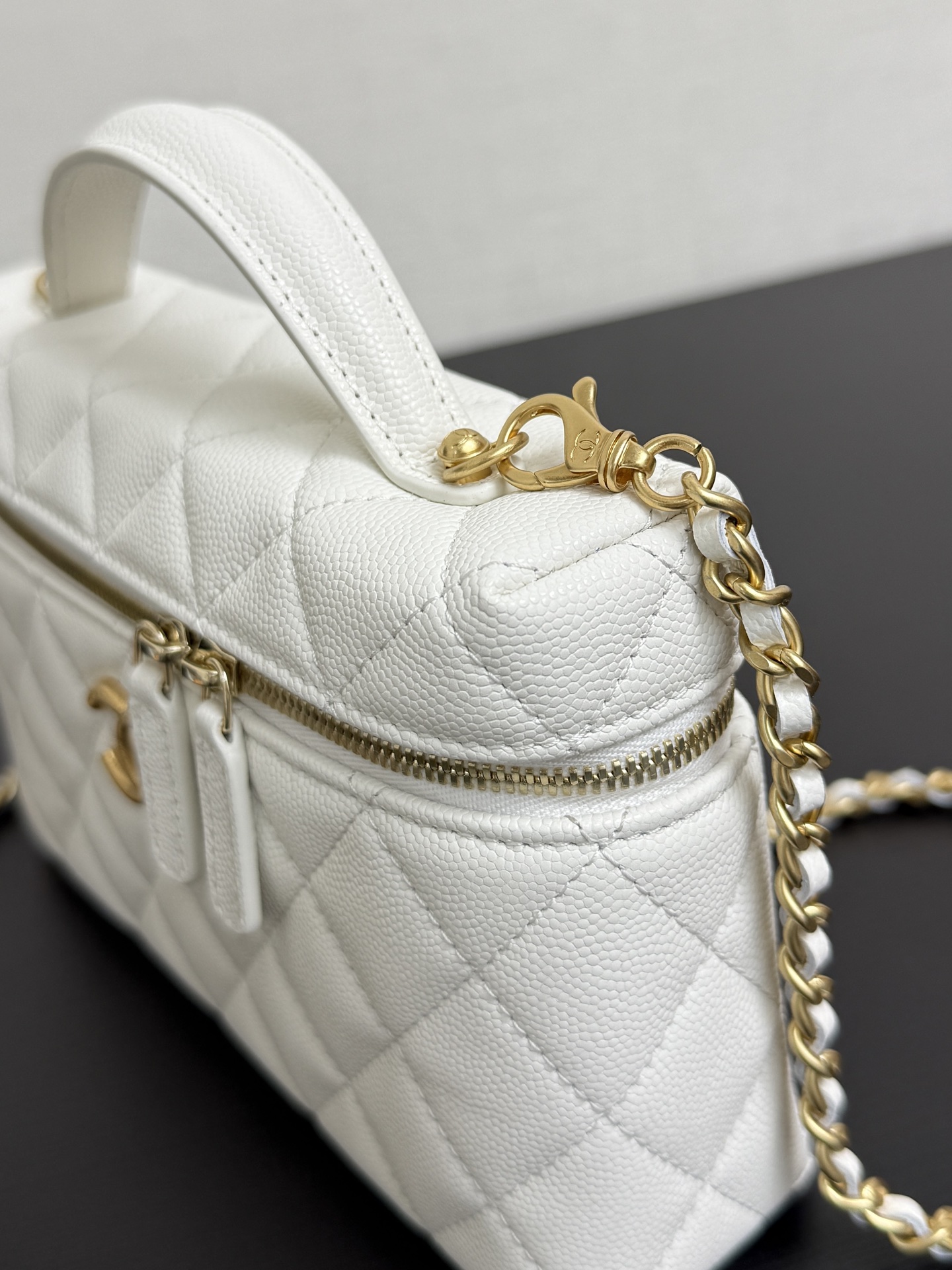 Chanel Vanity with chain - Shiny lambskin, strass & gold-tone white