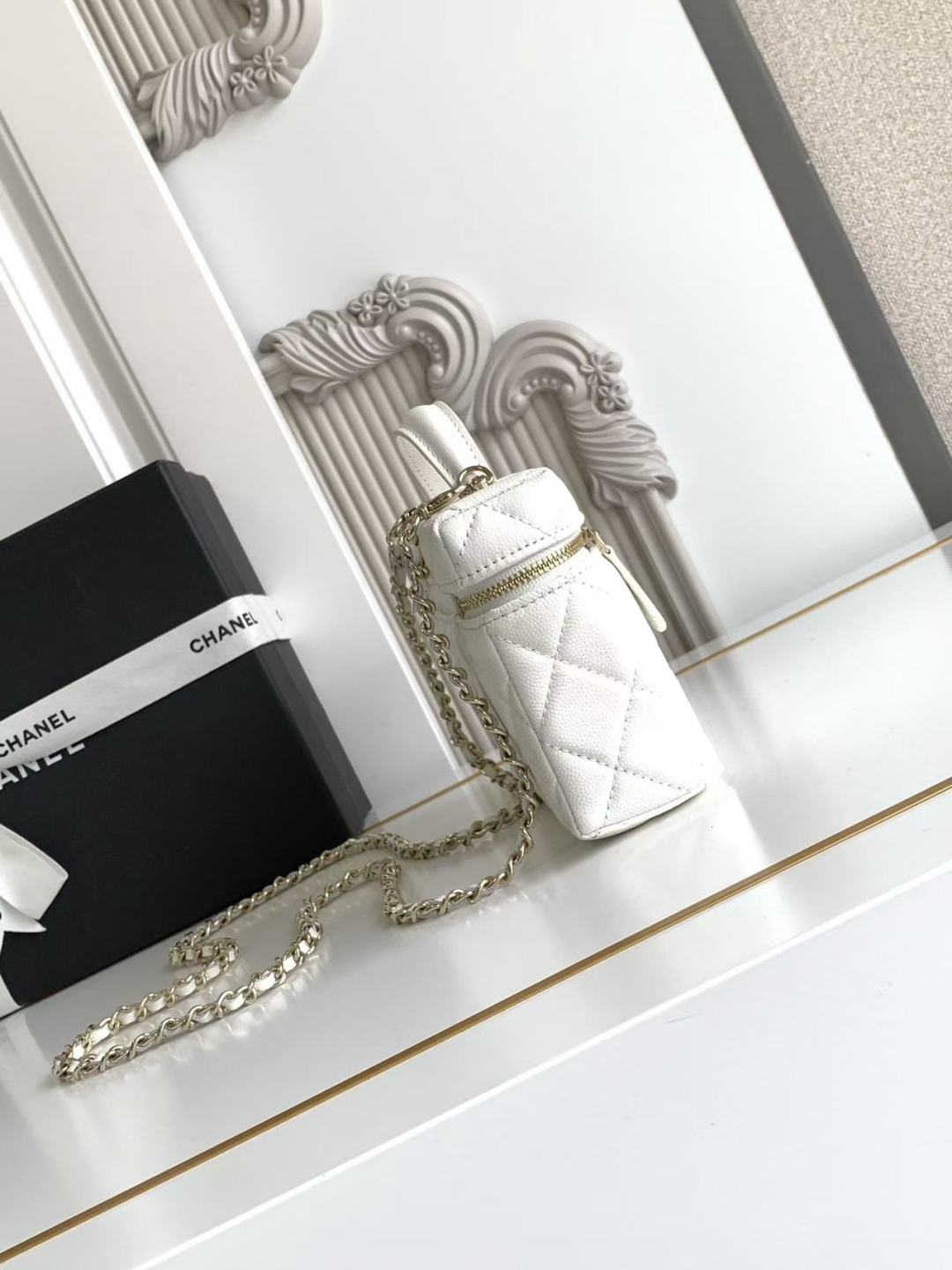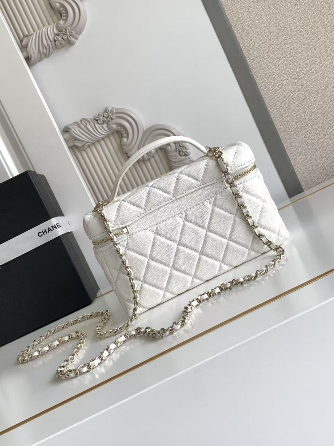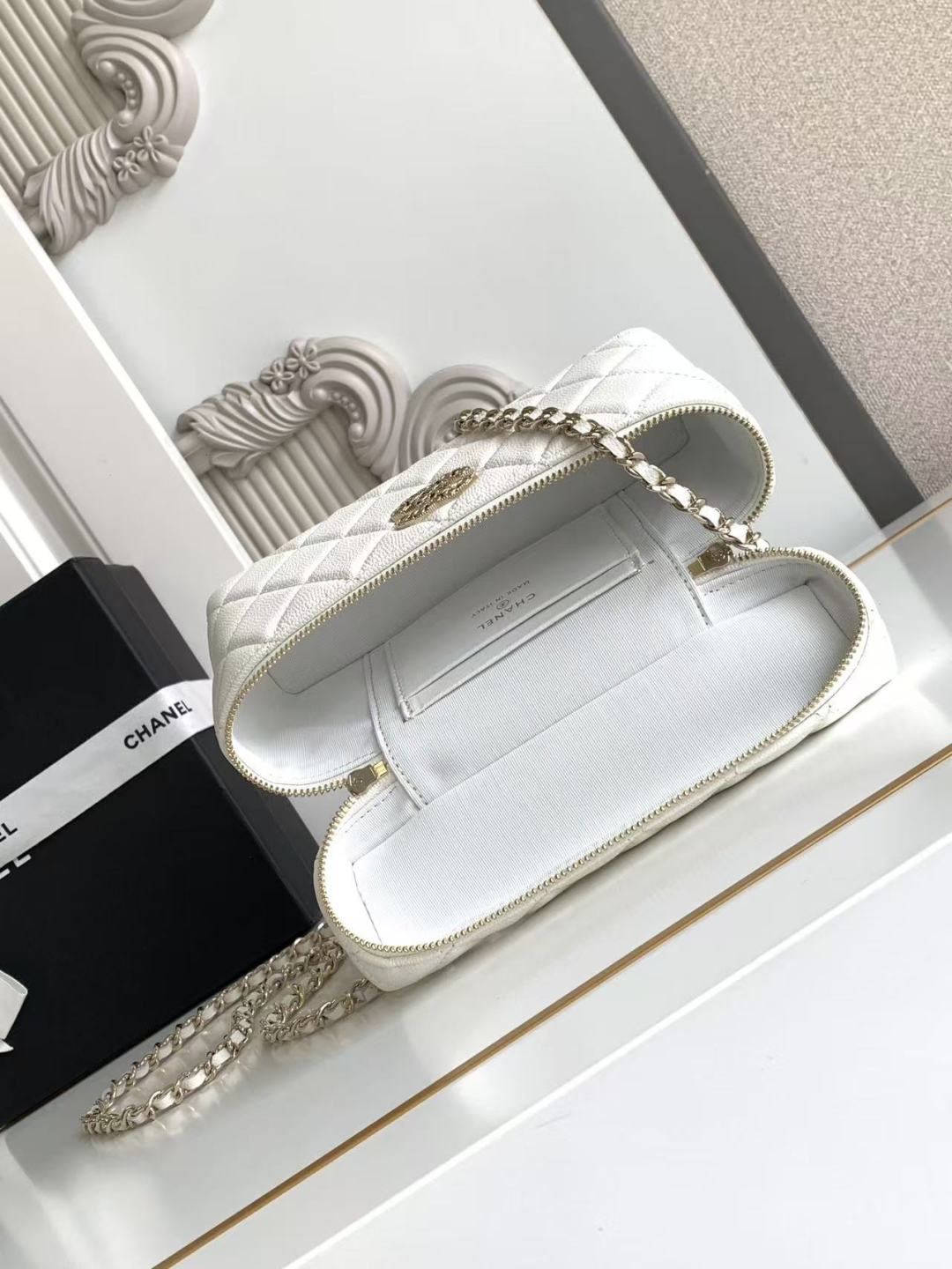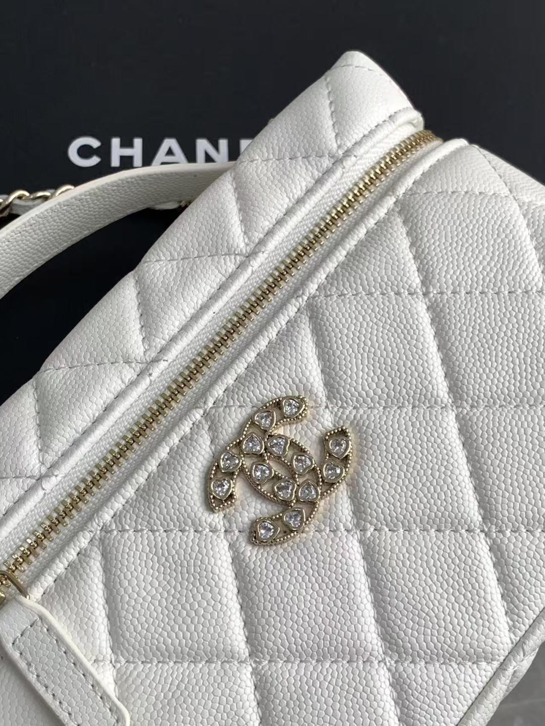 Chanel Vanity with chain - Shiny lambskin, strass & gold-tone white