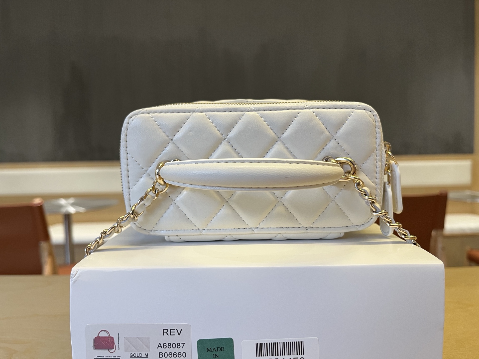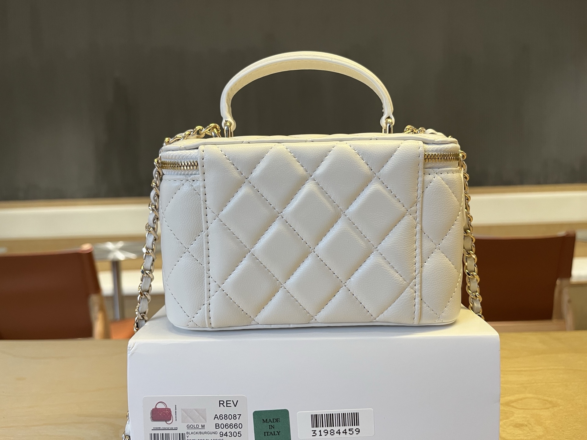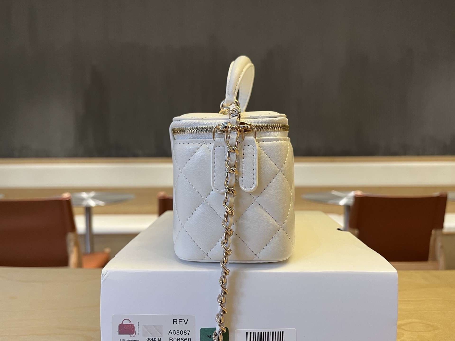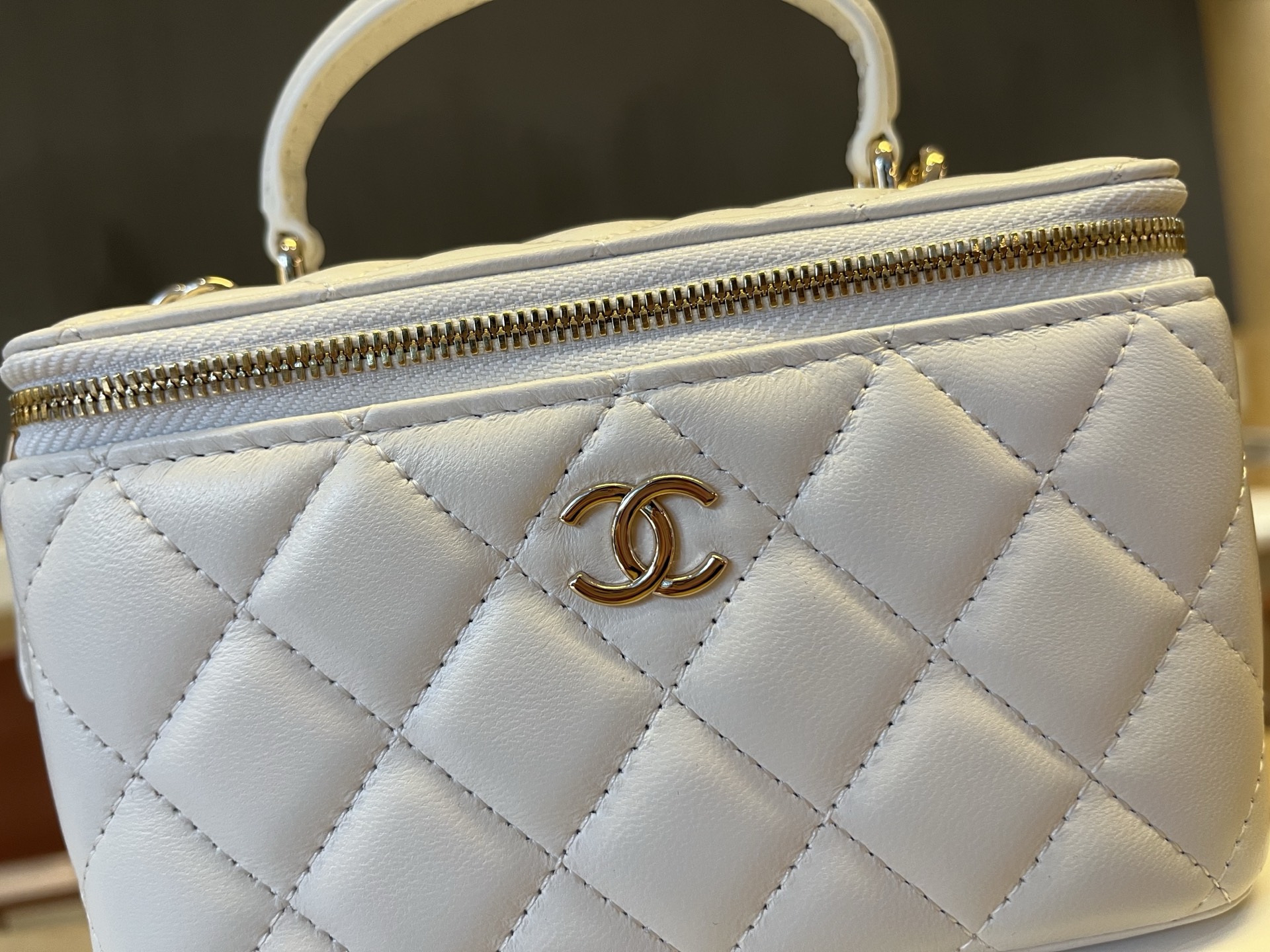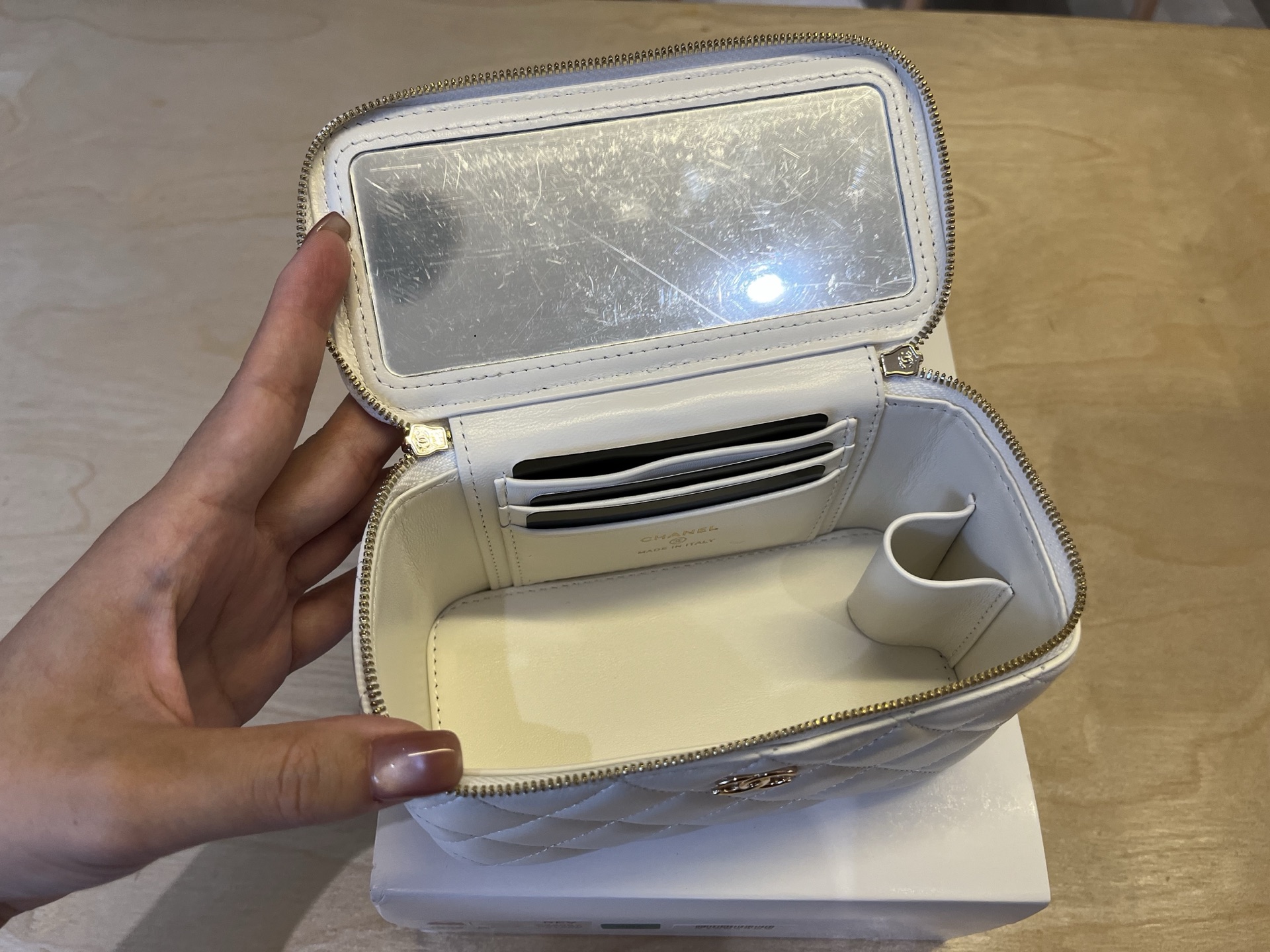 Chanel White Quilted Lambskin Top Handle Vanity Case