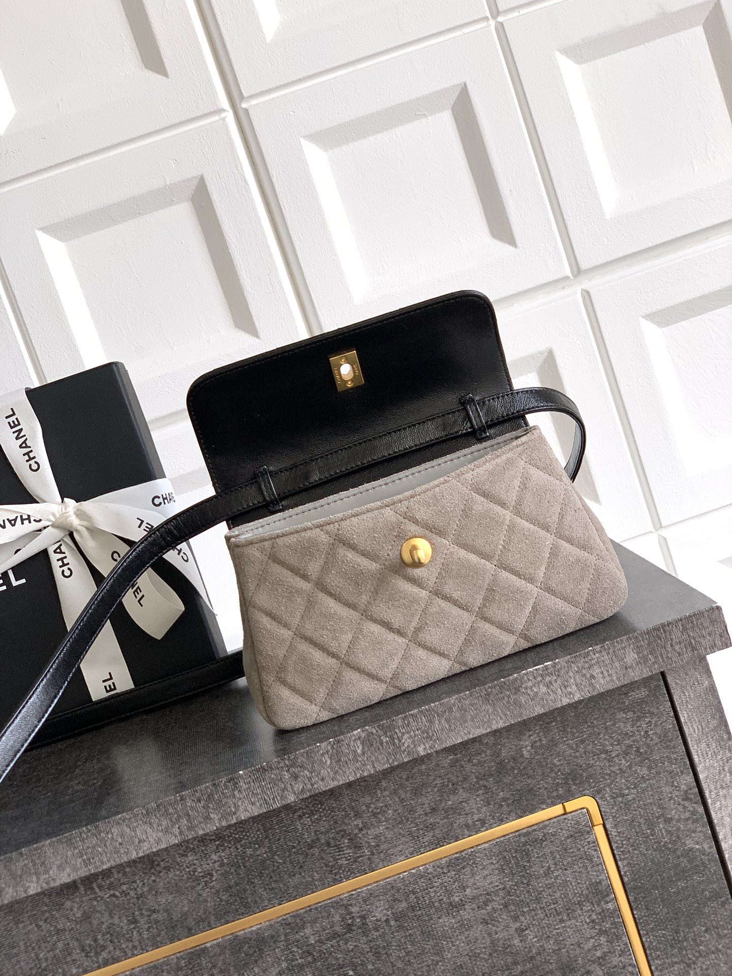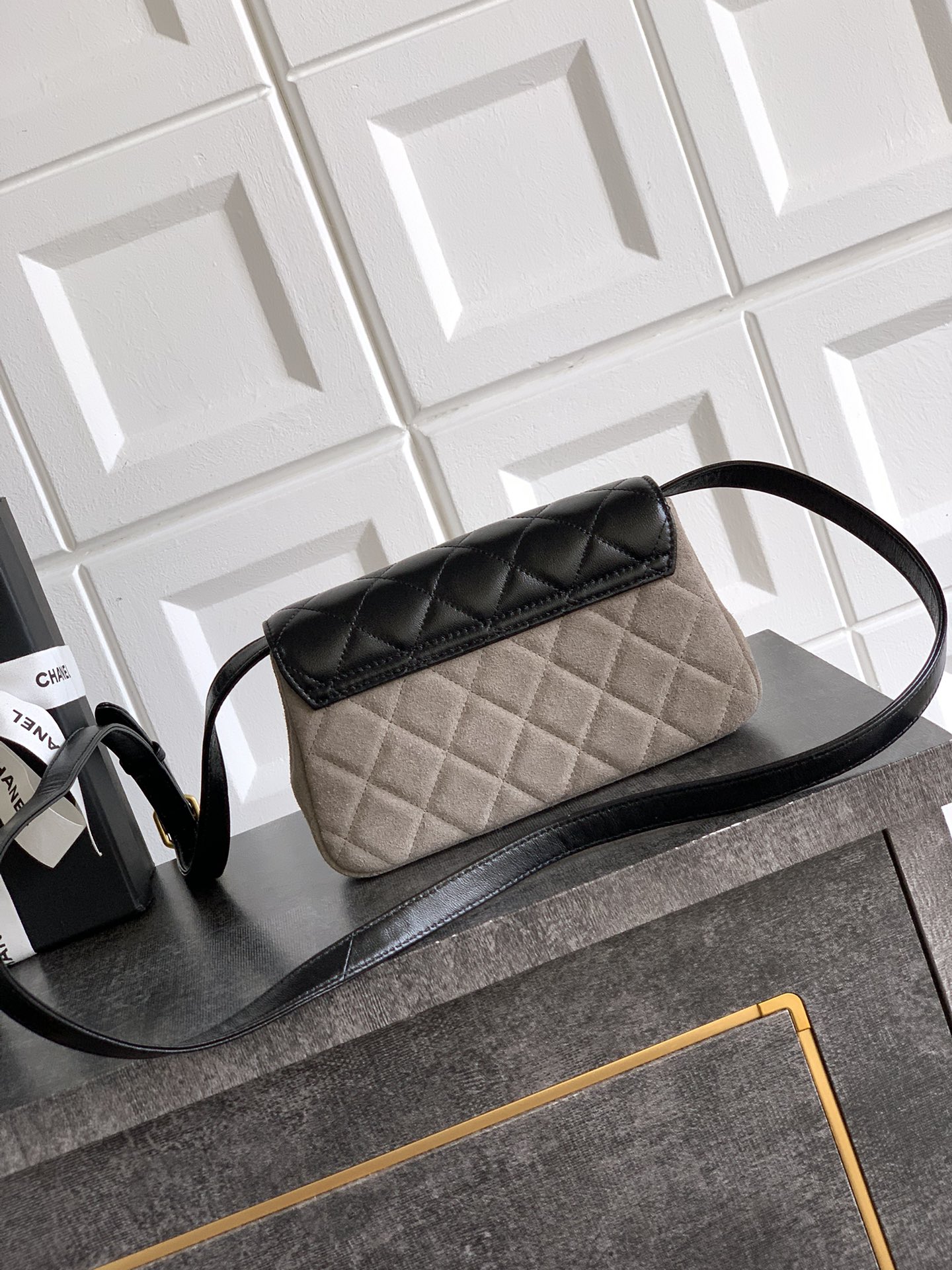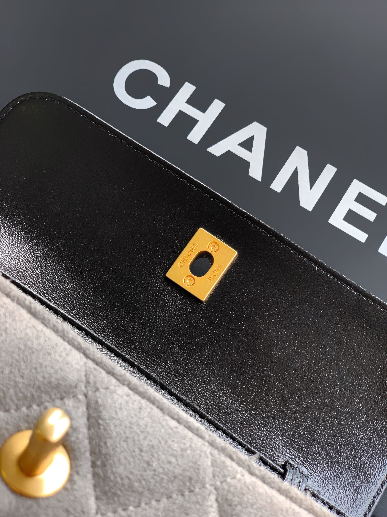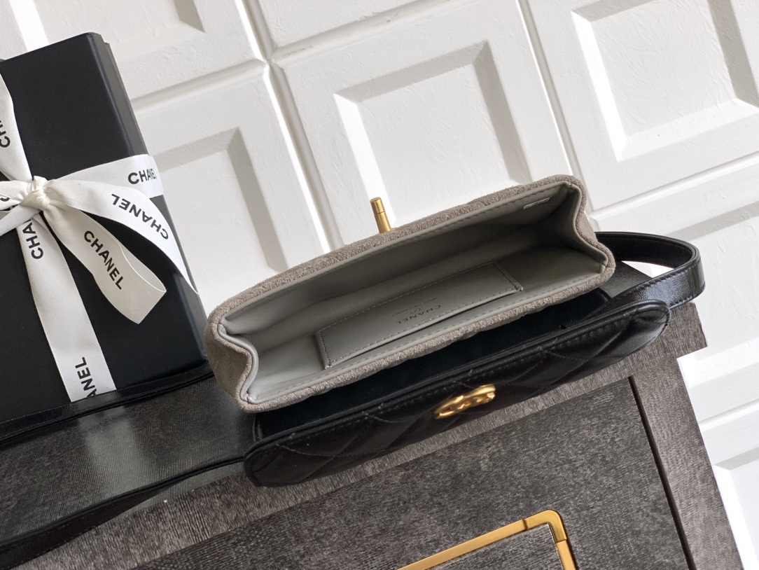 Chanel Zipped phone holder with chain - Suede calfskin, shiny lambskin
