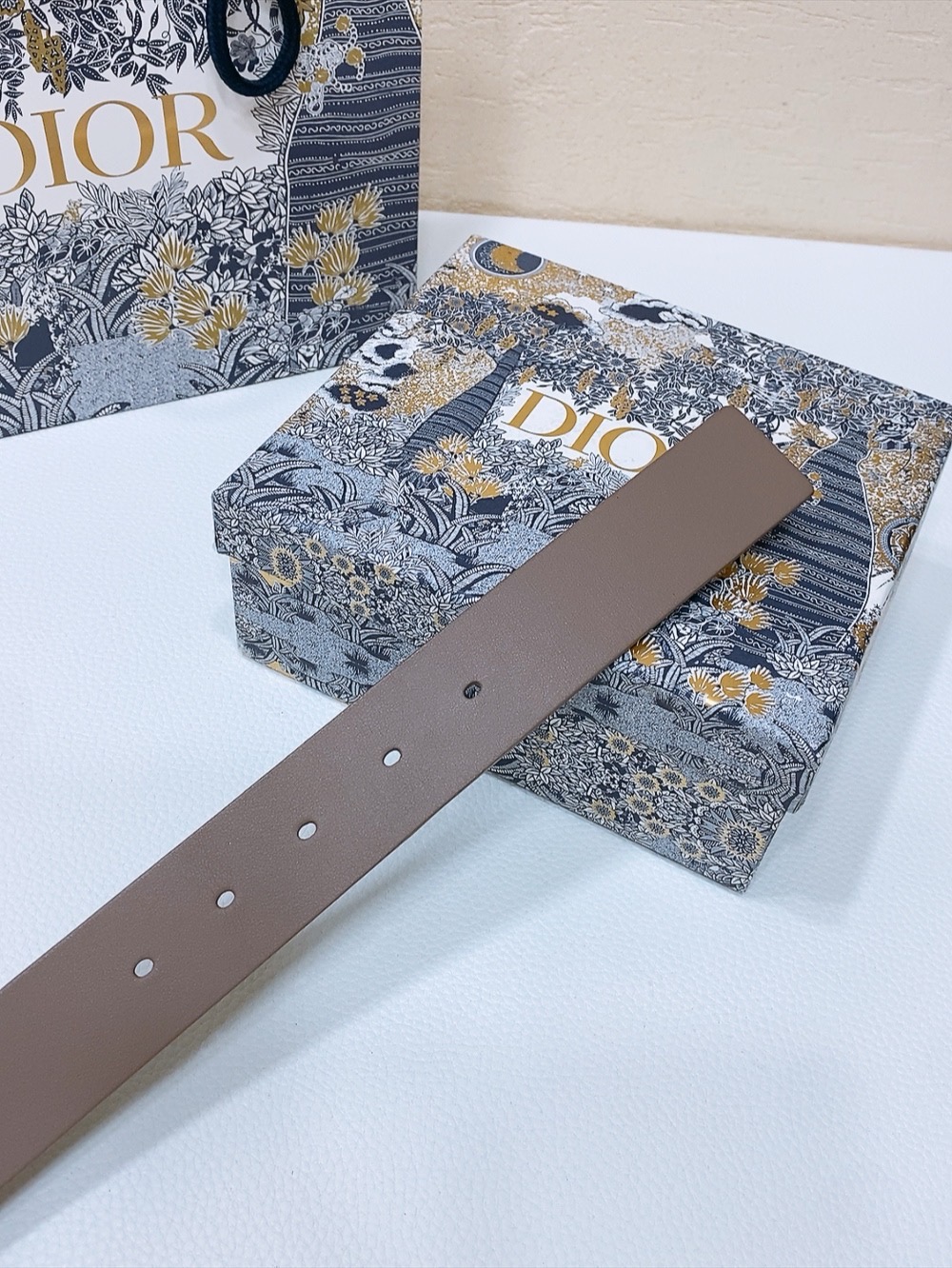 Brown leather belt with gold metal buckle engraved with Miu Miu