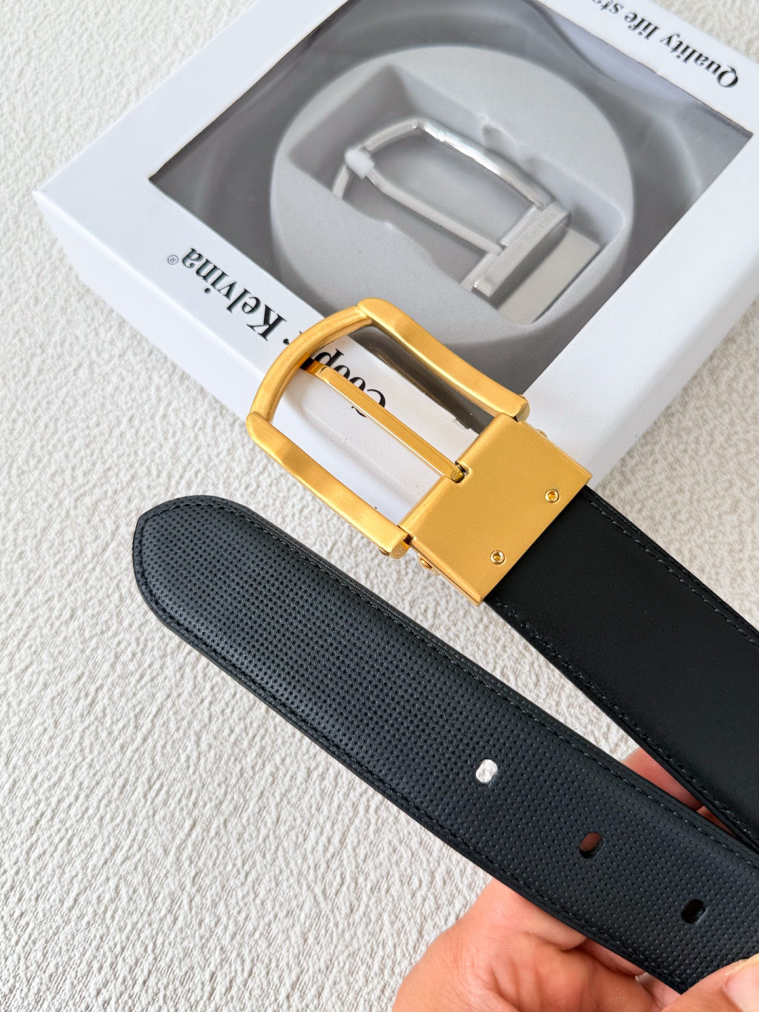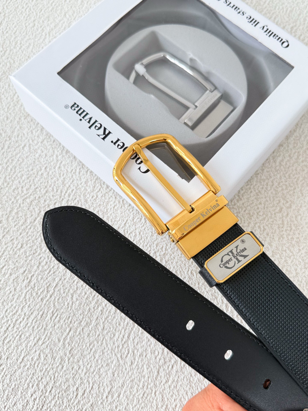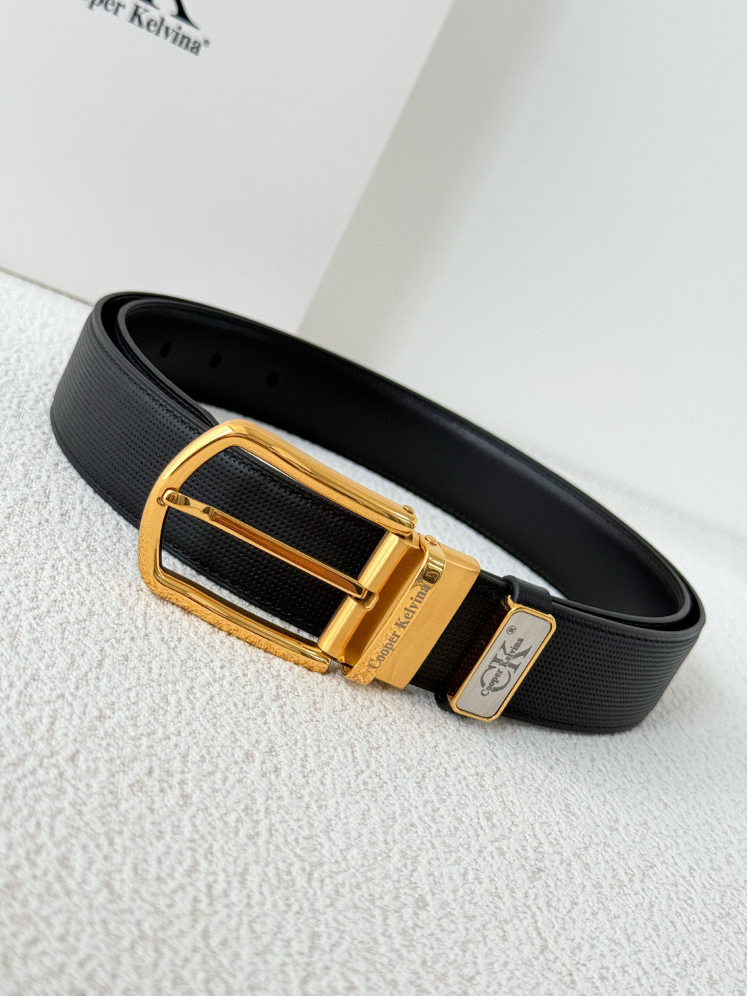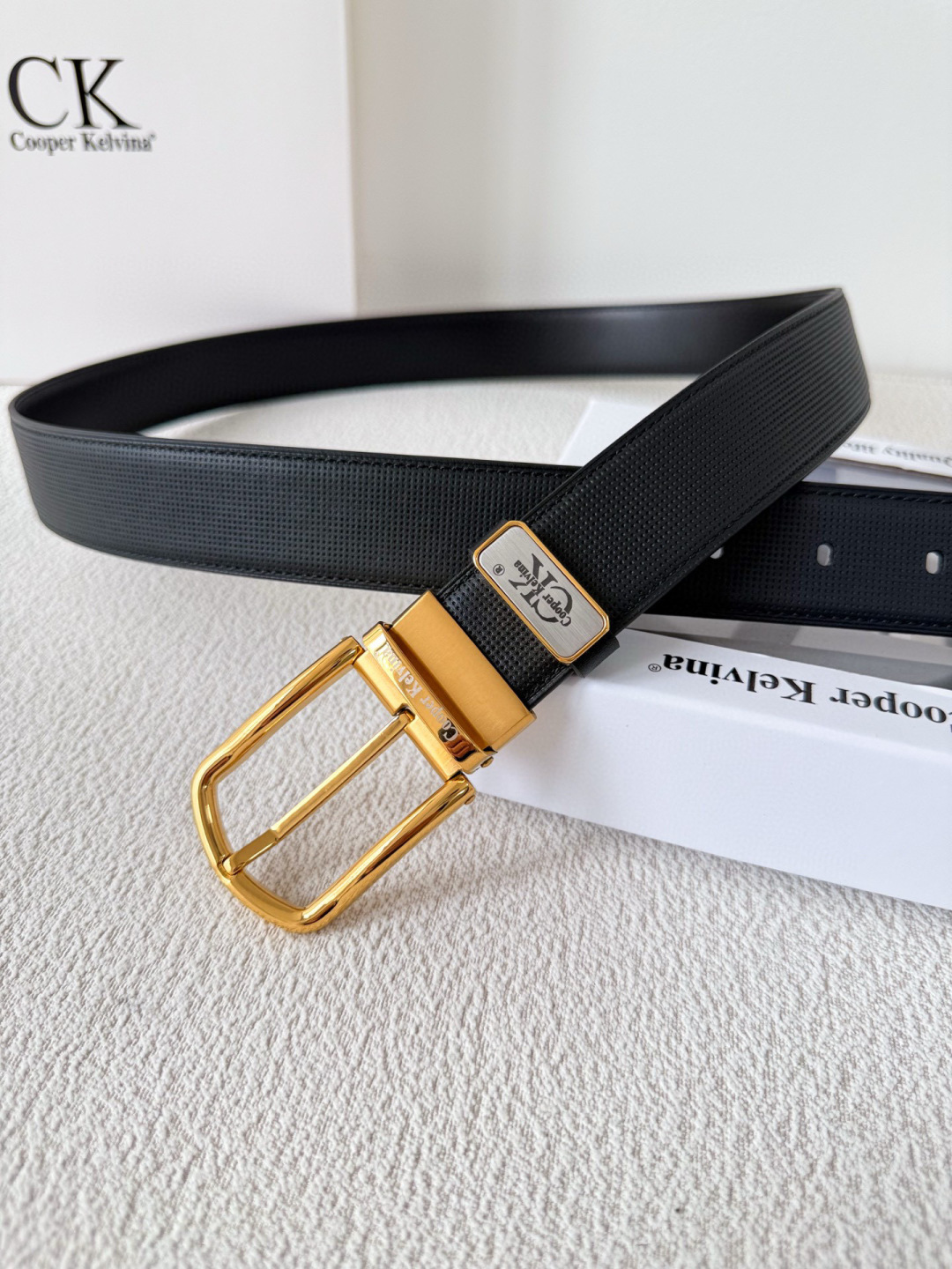 • Elegant Hardware: Features a stunning gold-tone pin buckle engraved with the signature Cooper Kelvina logo.