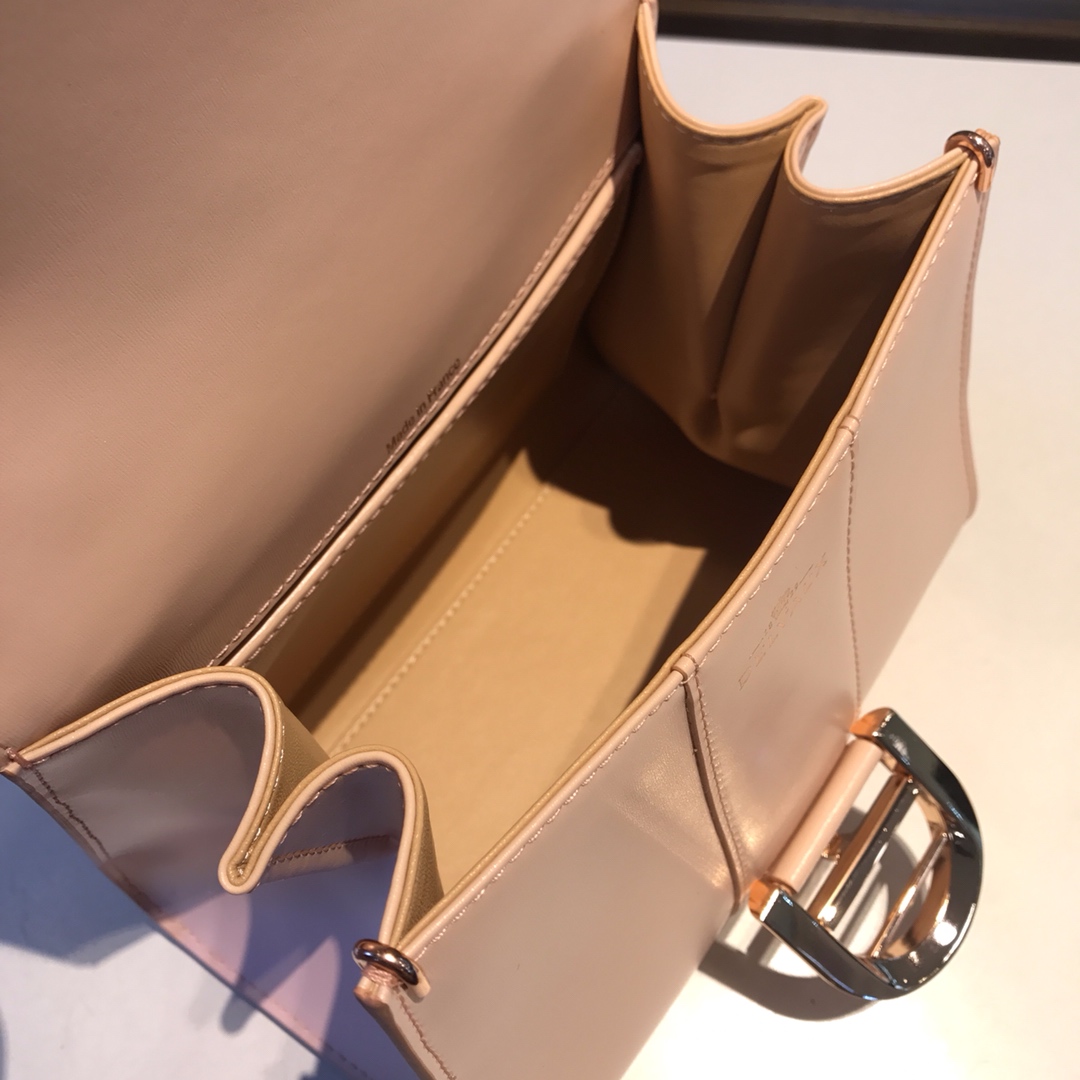 DELVAUX Grained Calfskin Mini Brillant Satchel Light Pink