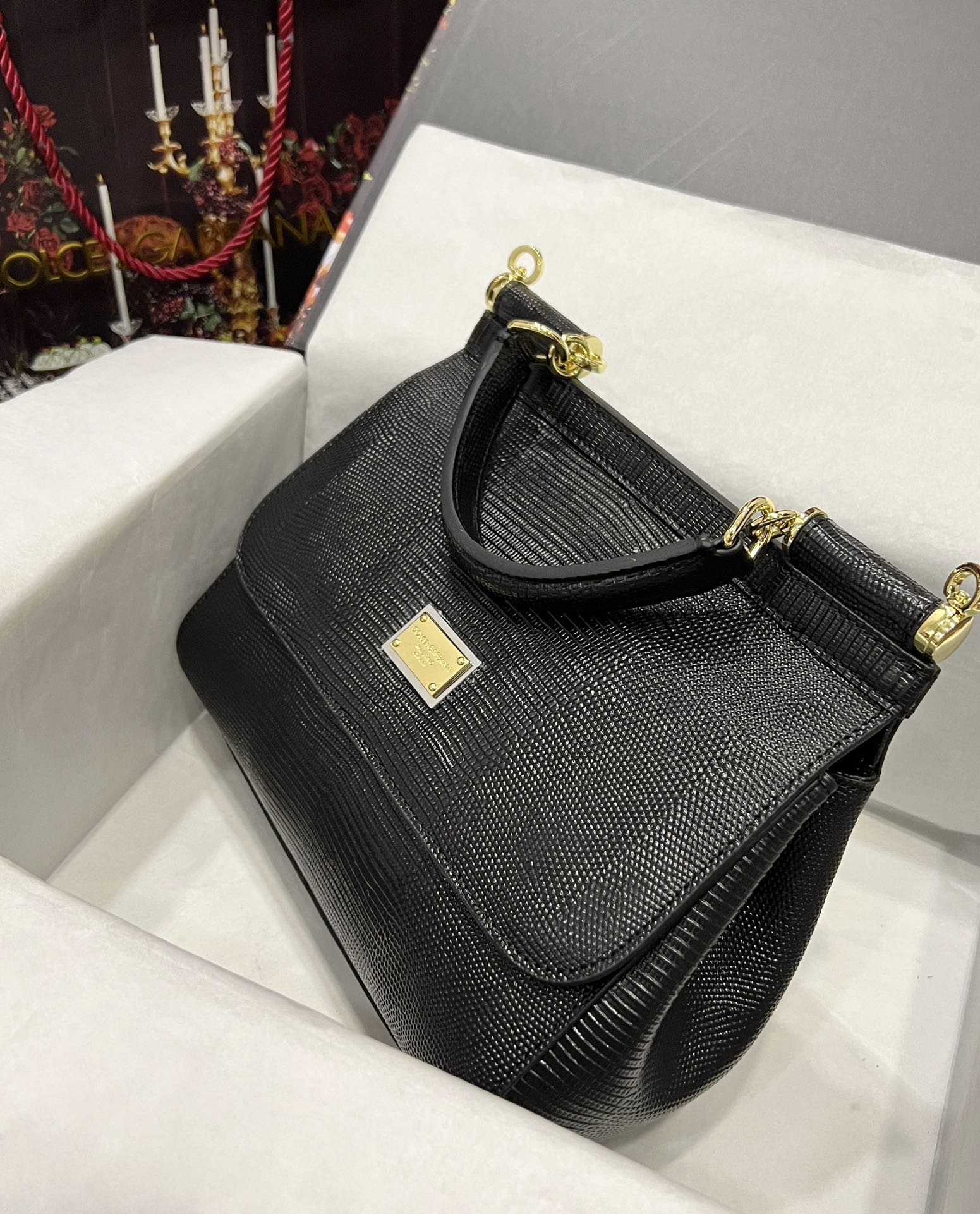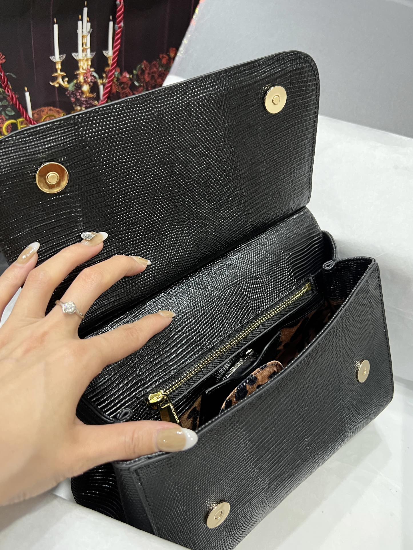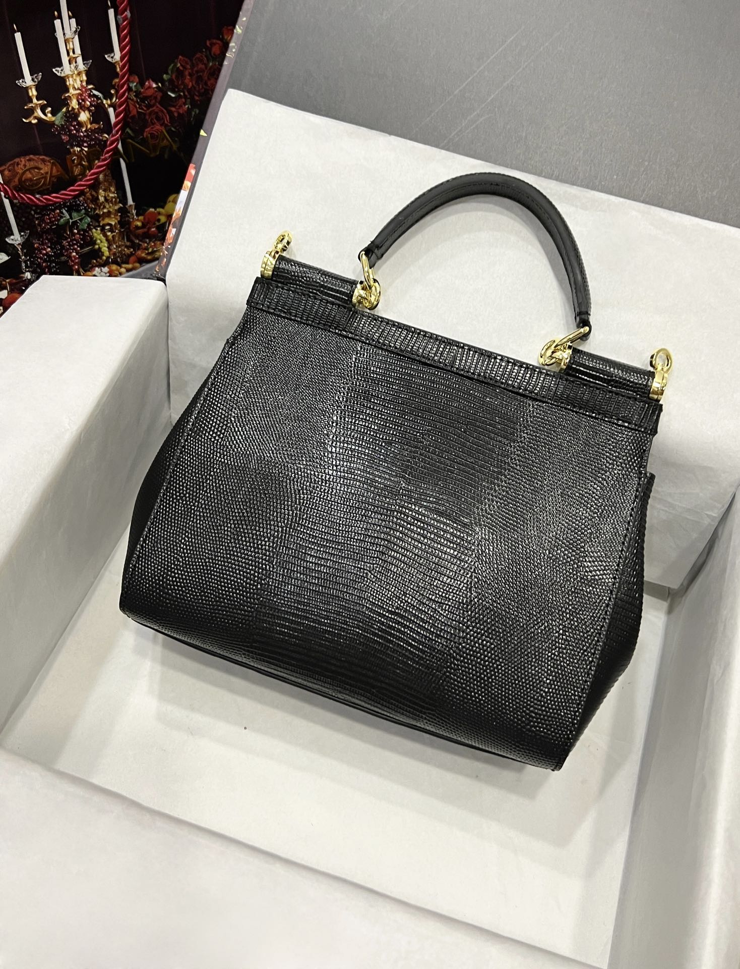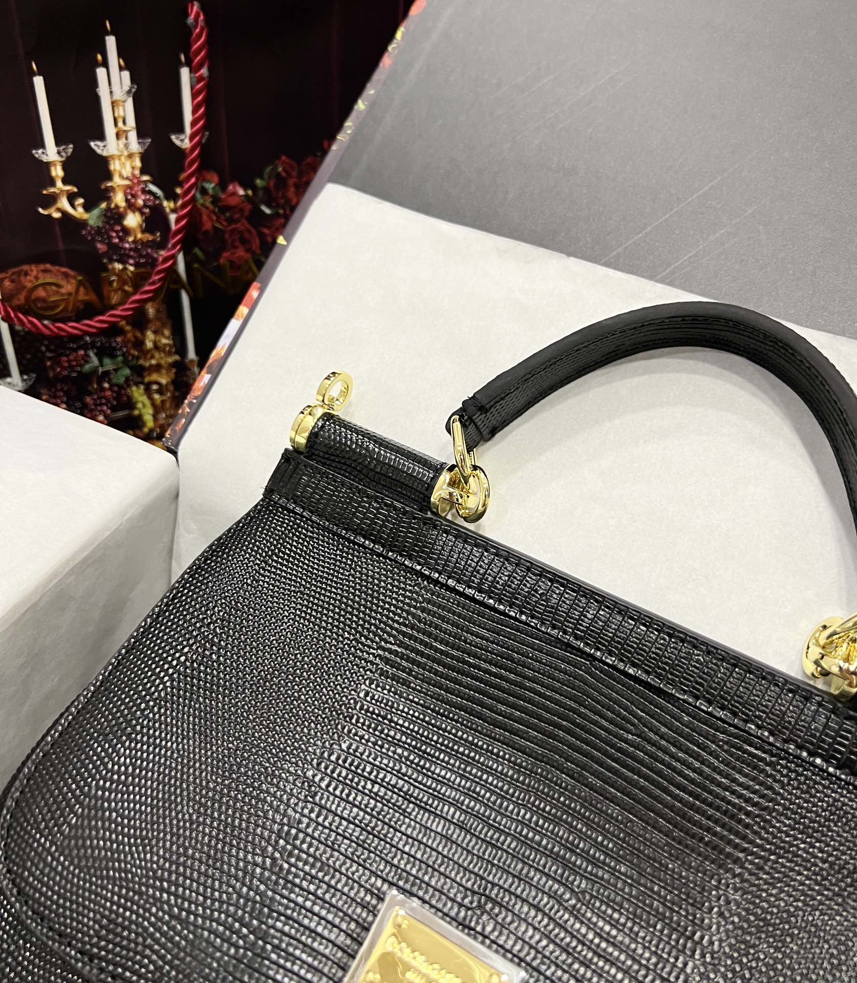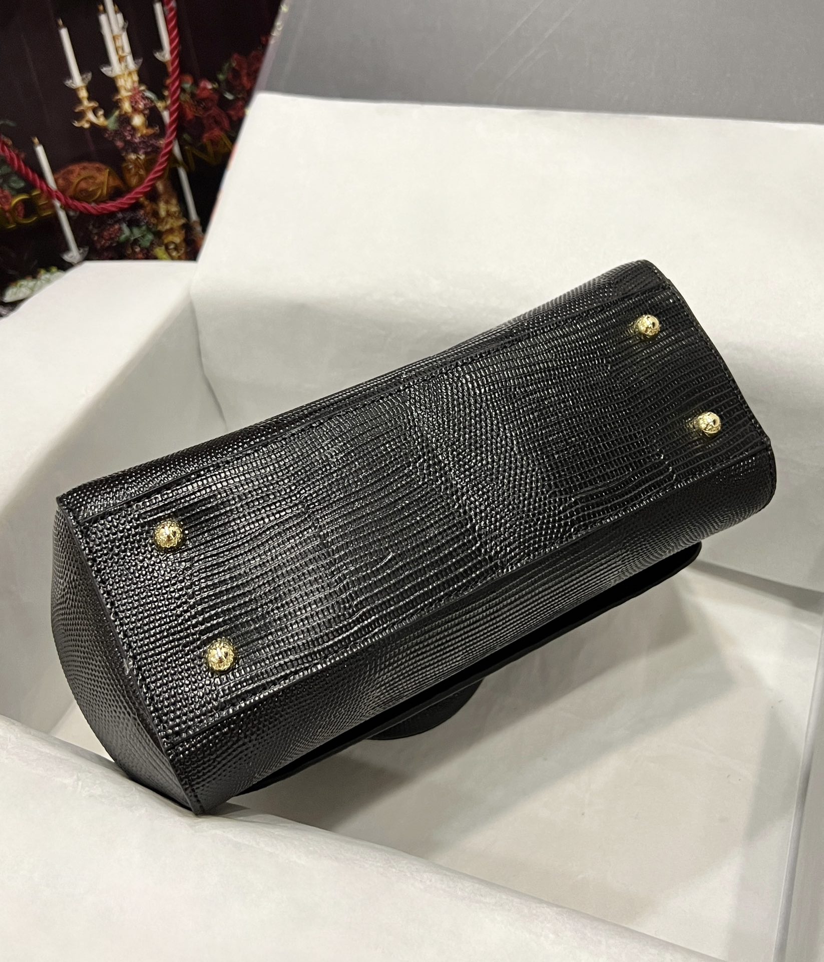 Dolce & Gabbana Black Lizard Embossed Leather Small Miss Sicily Top Handle Bag Dolce & Gabbana | TLC