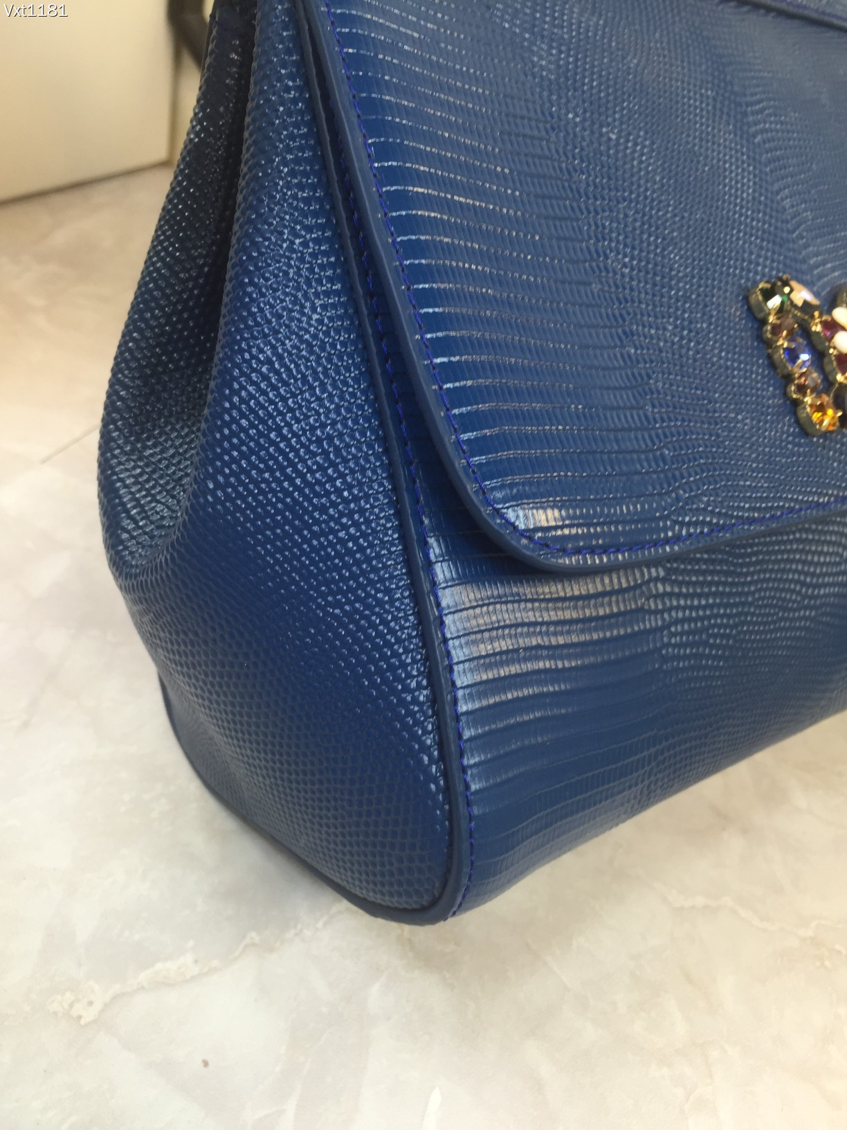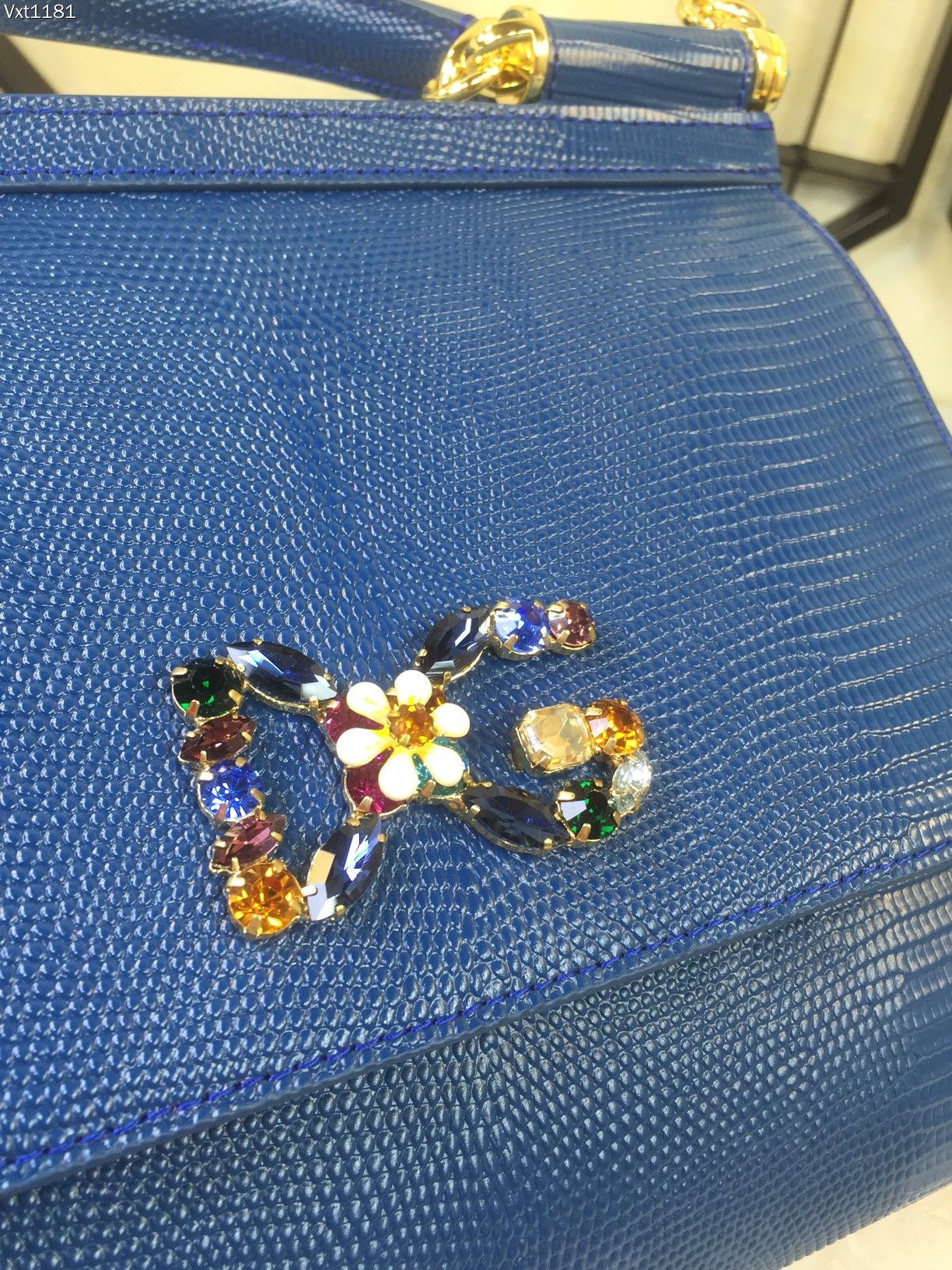 Dolce & Gabbana Blue Iguana Embossed Leather Crystal DG
