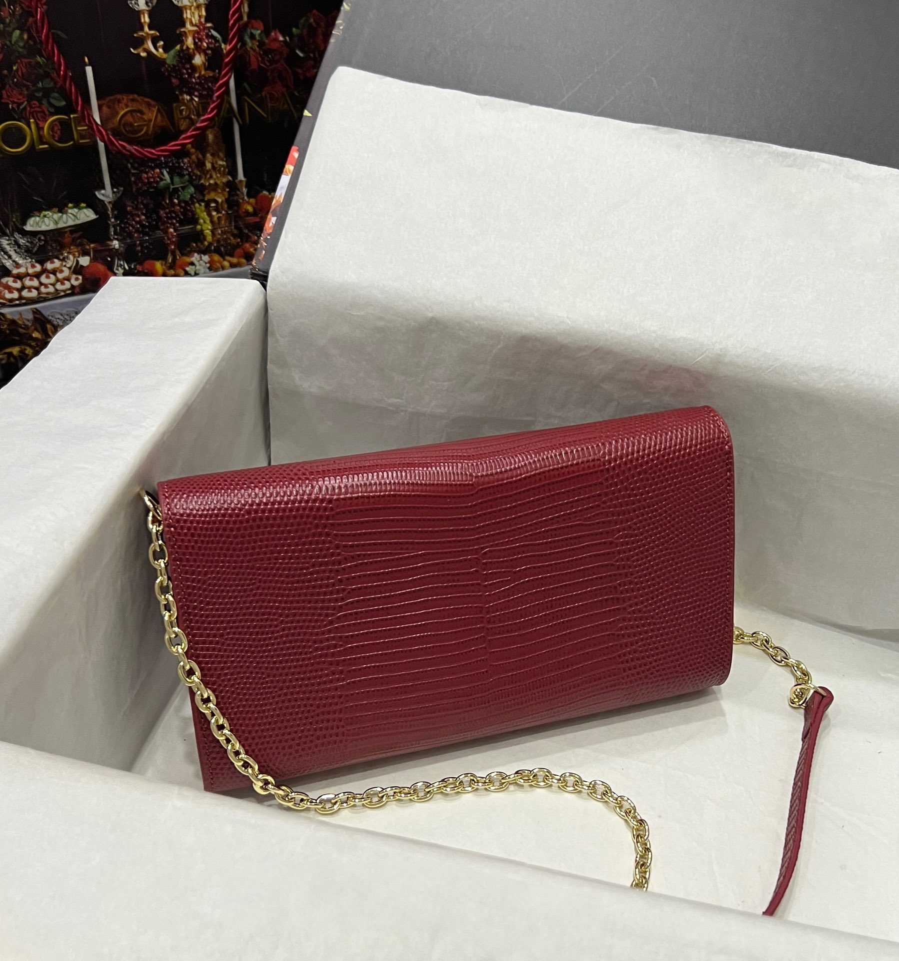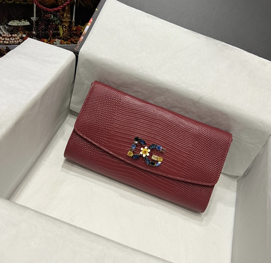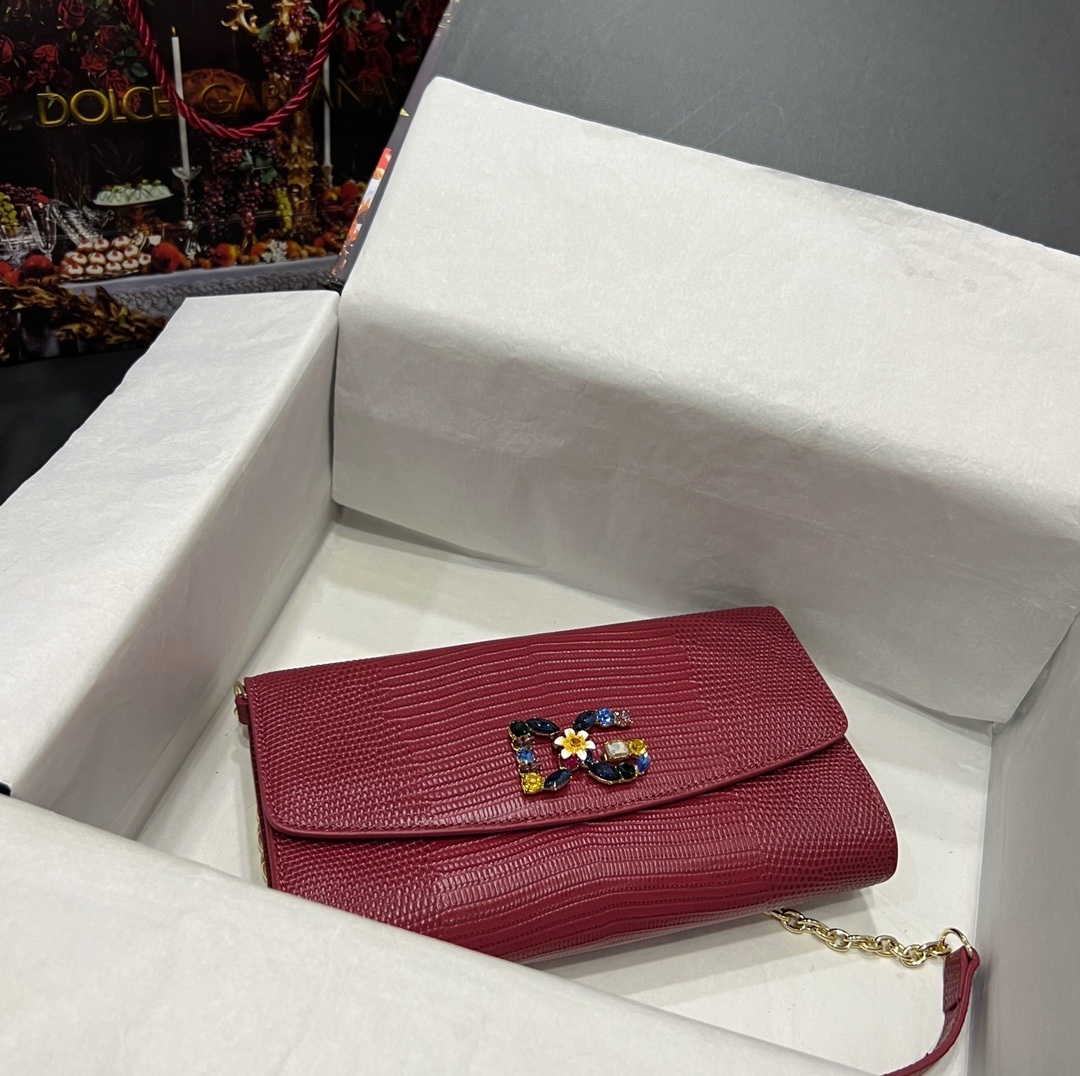 Dolce & Gabbana Dark red Lizard Embossed Leather DG