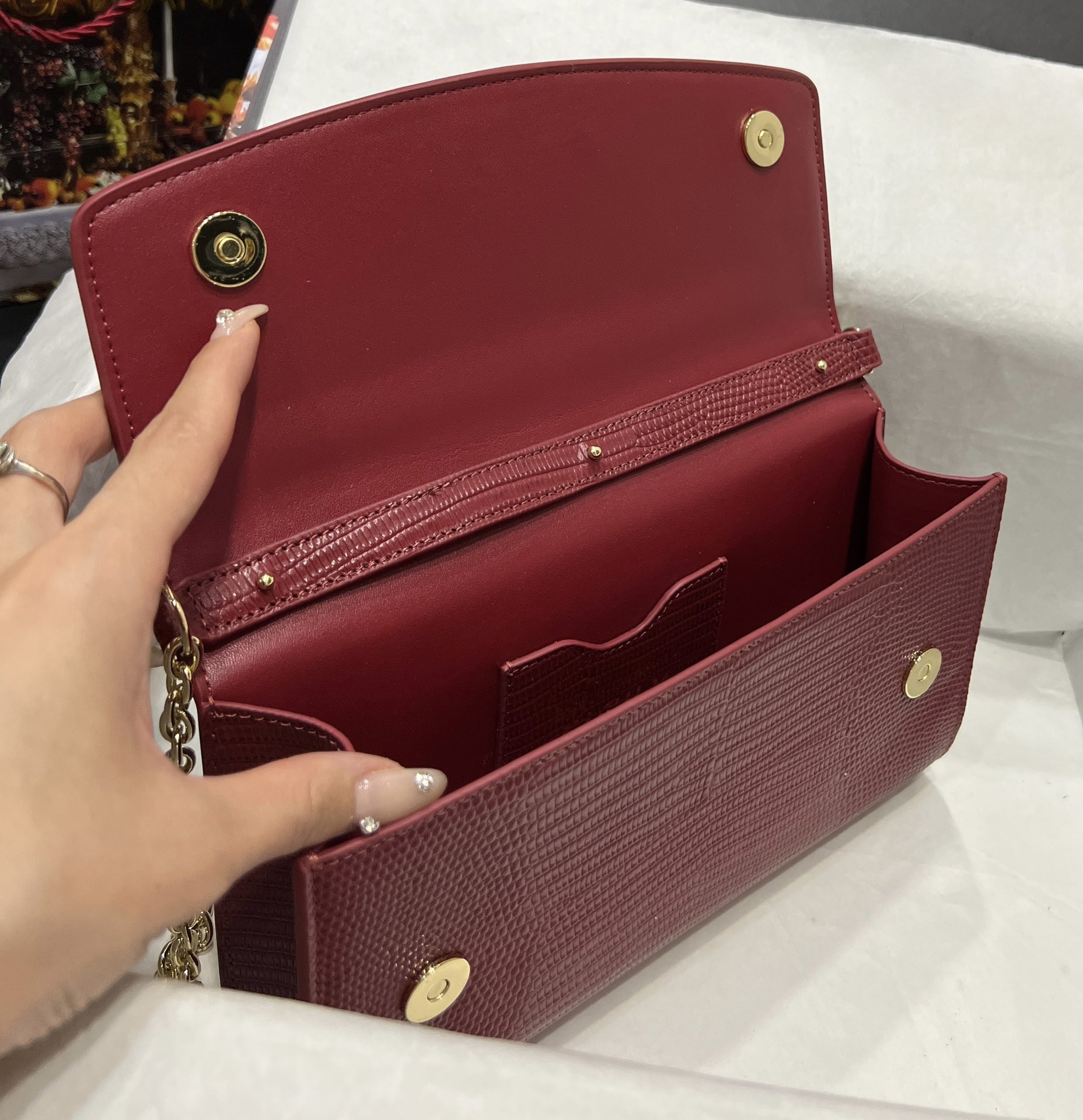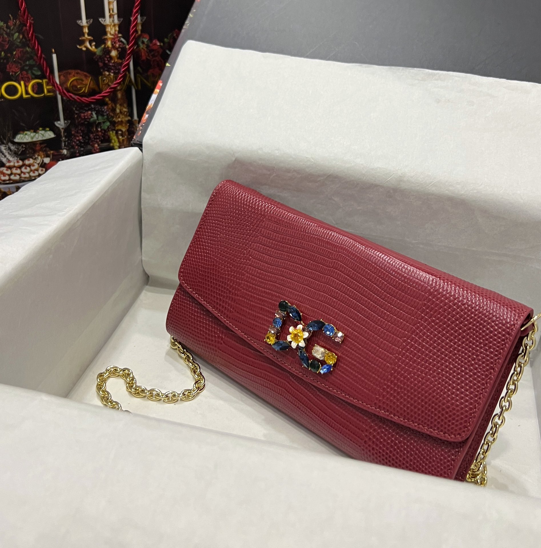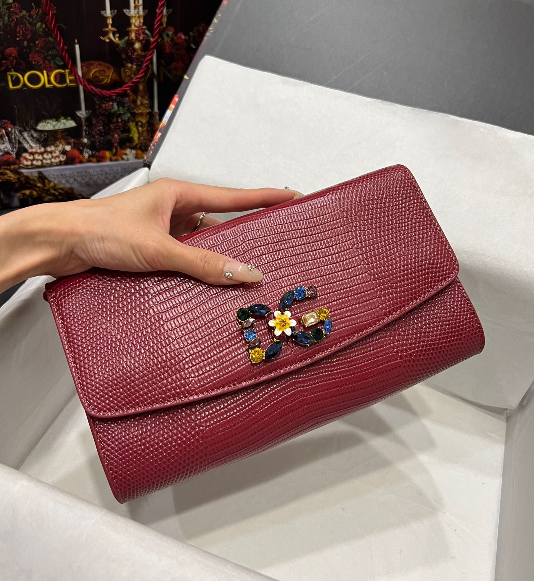 Dolce & Gabbana Dark red Lizard Embossed Leather DG