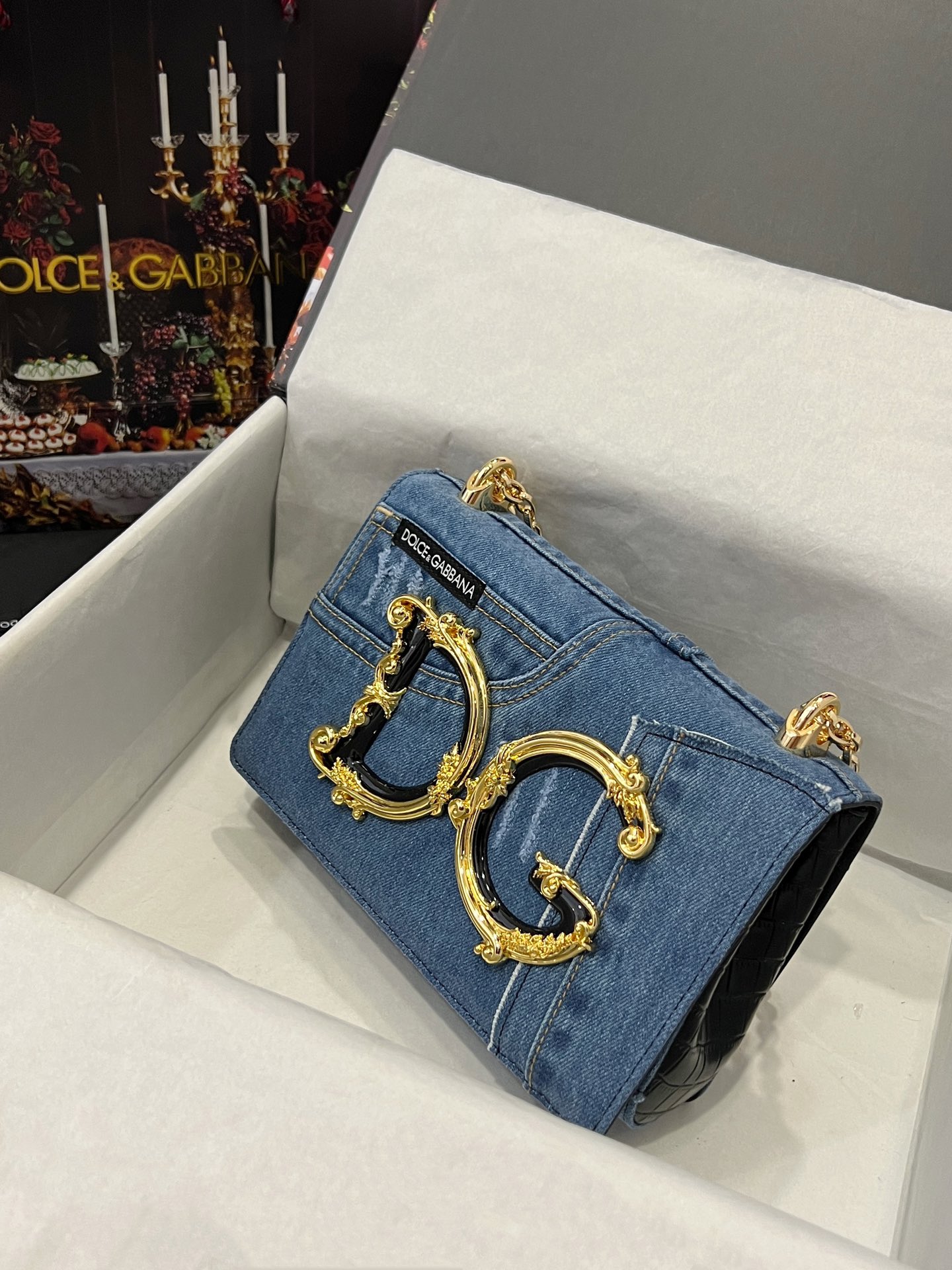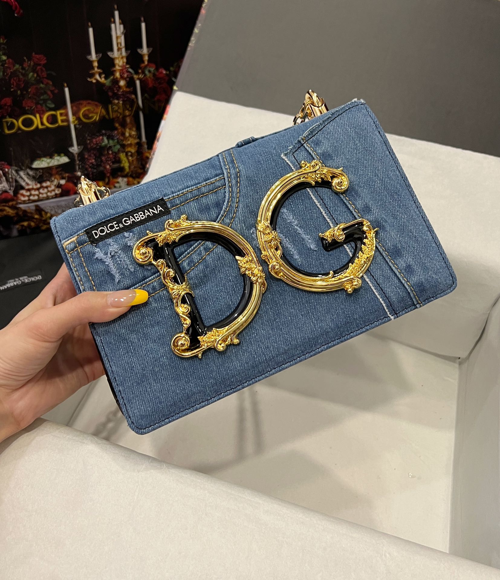 DOLCE & GABBANA Denim DG Girls Shoulder Bag Blue 1222908