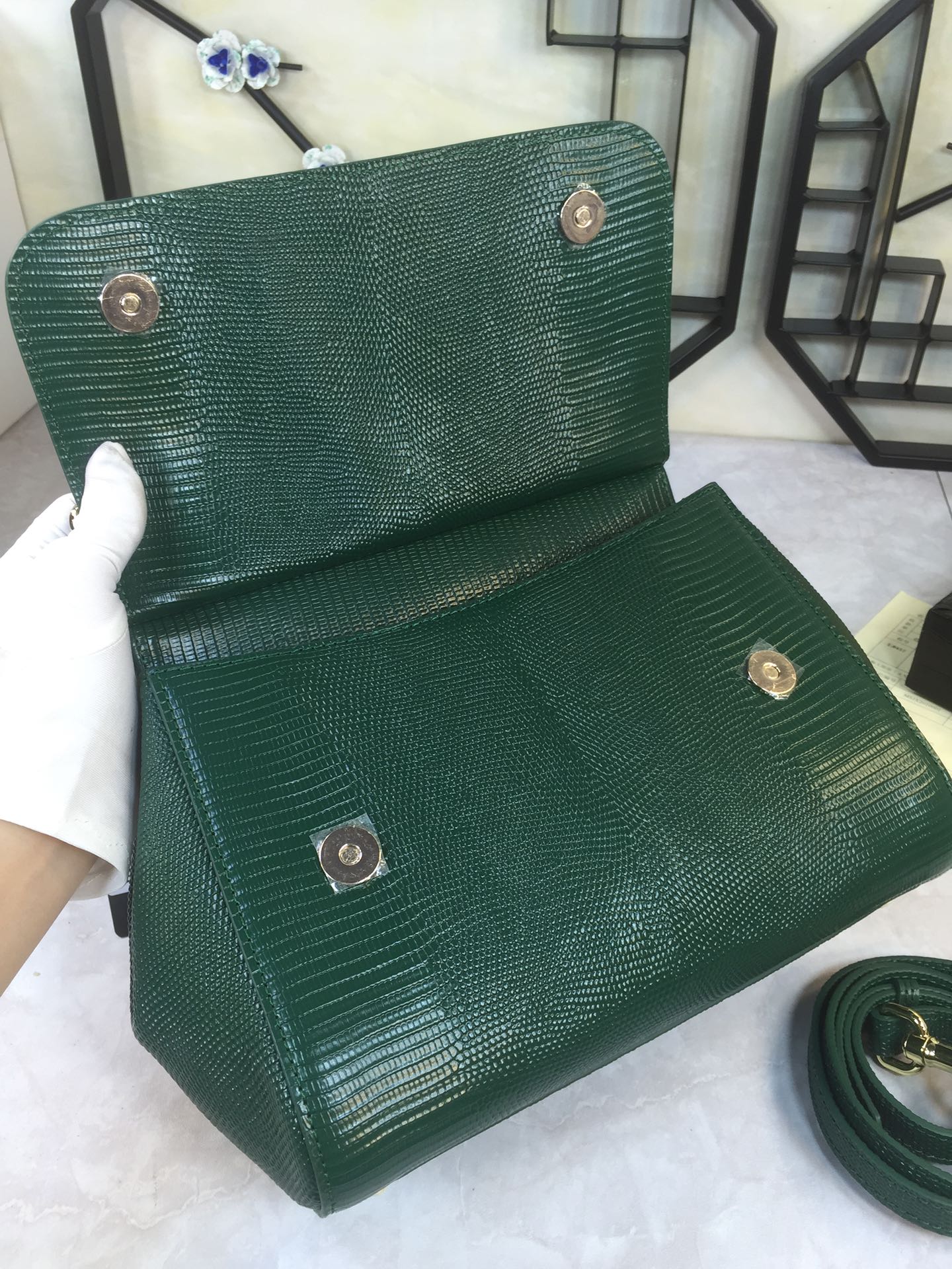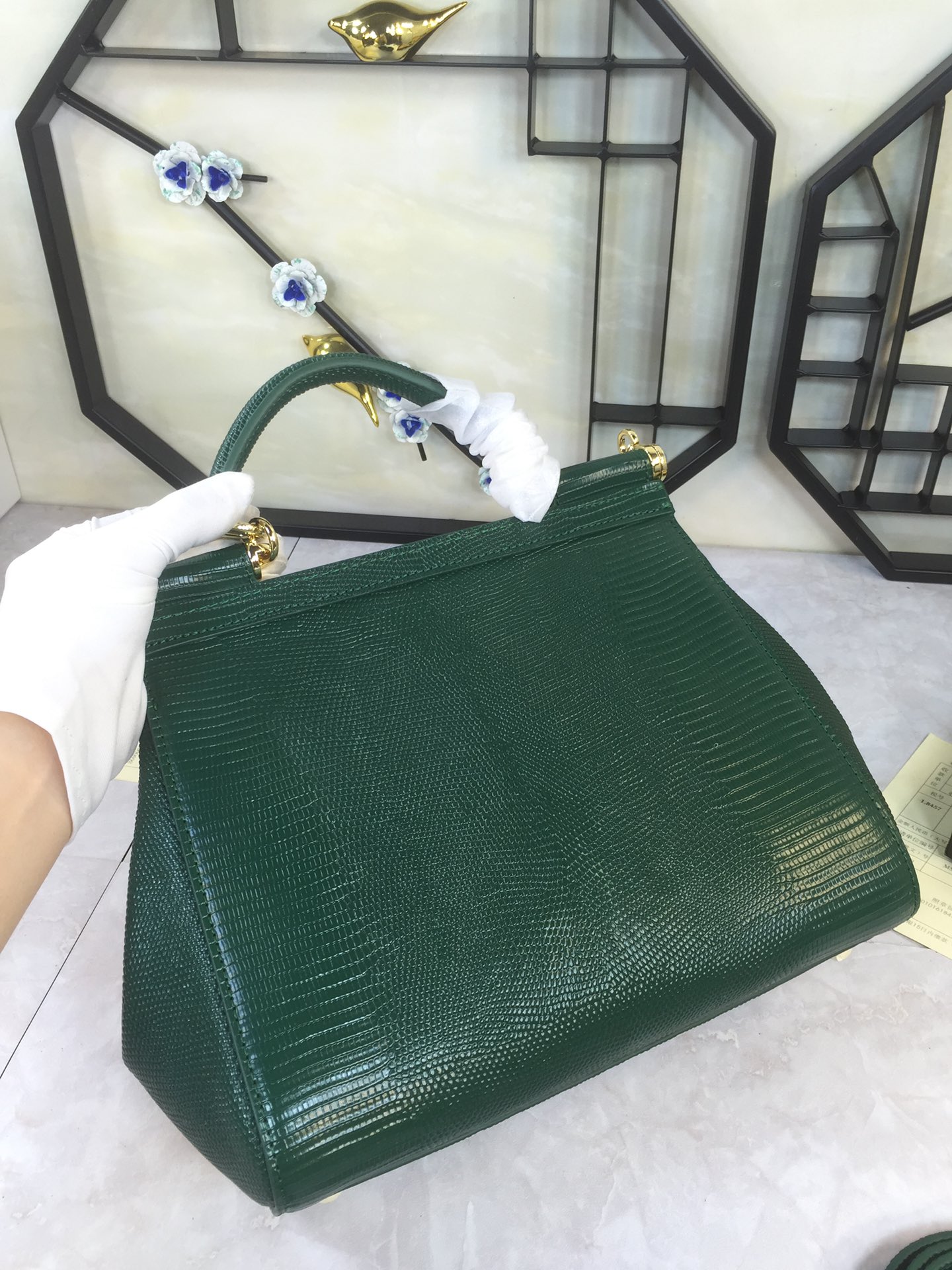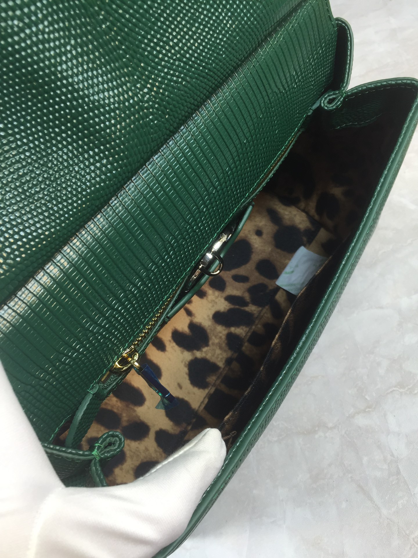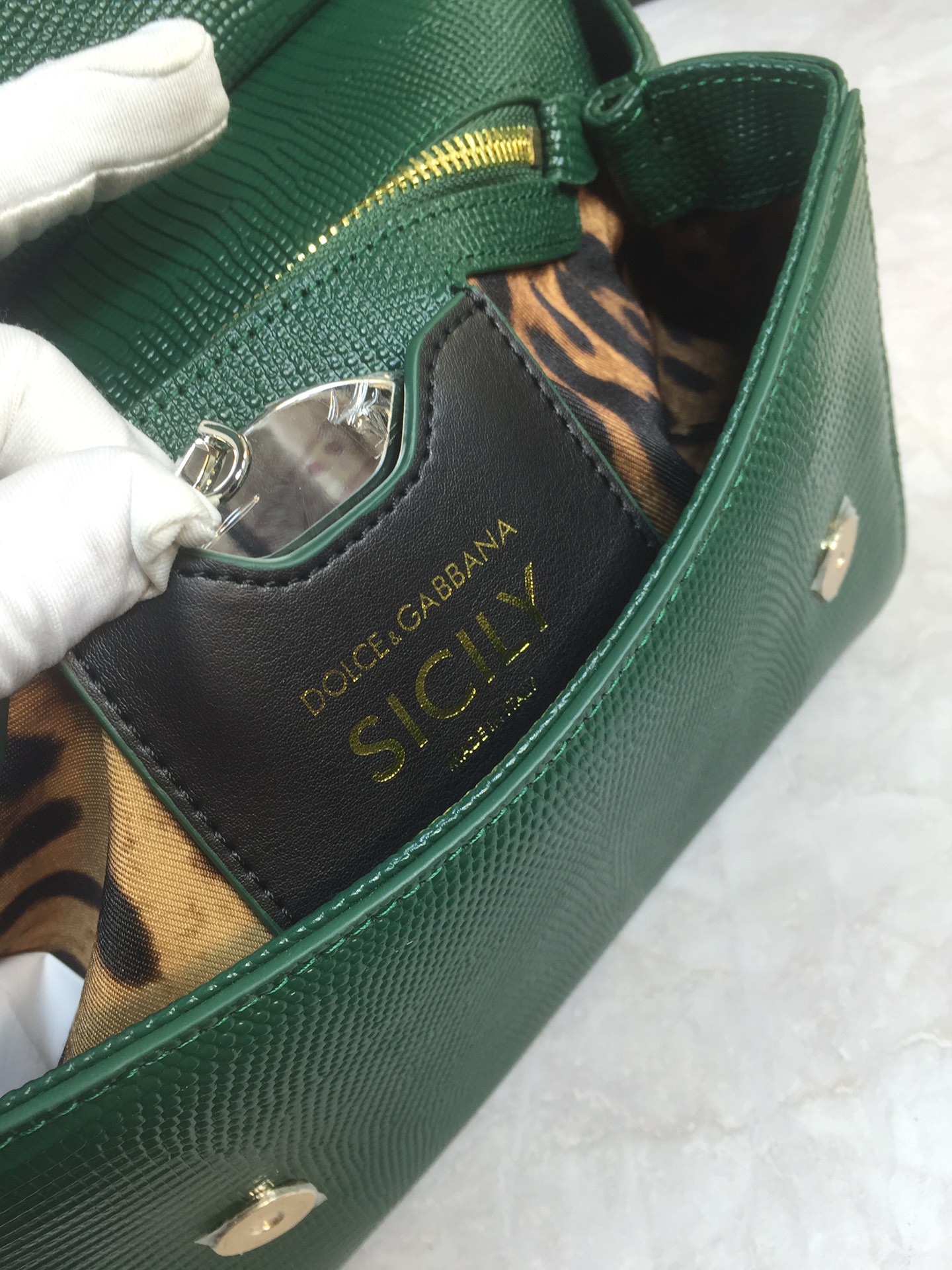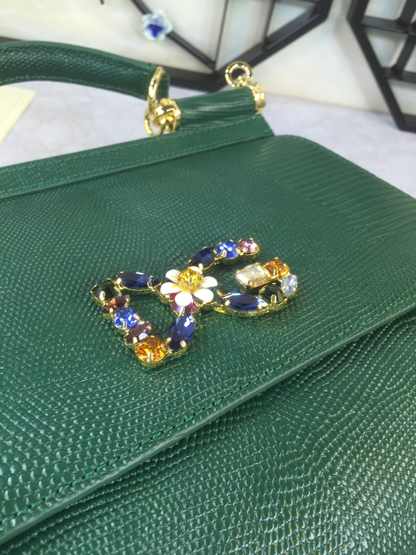 DOLCE & GABBANA Emerald Green Medium Sicily Bag Top Handle Millenials Logo stone