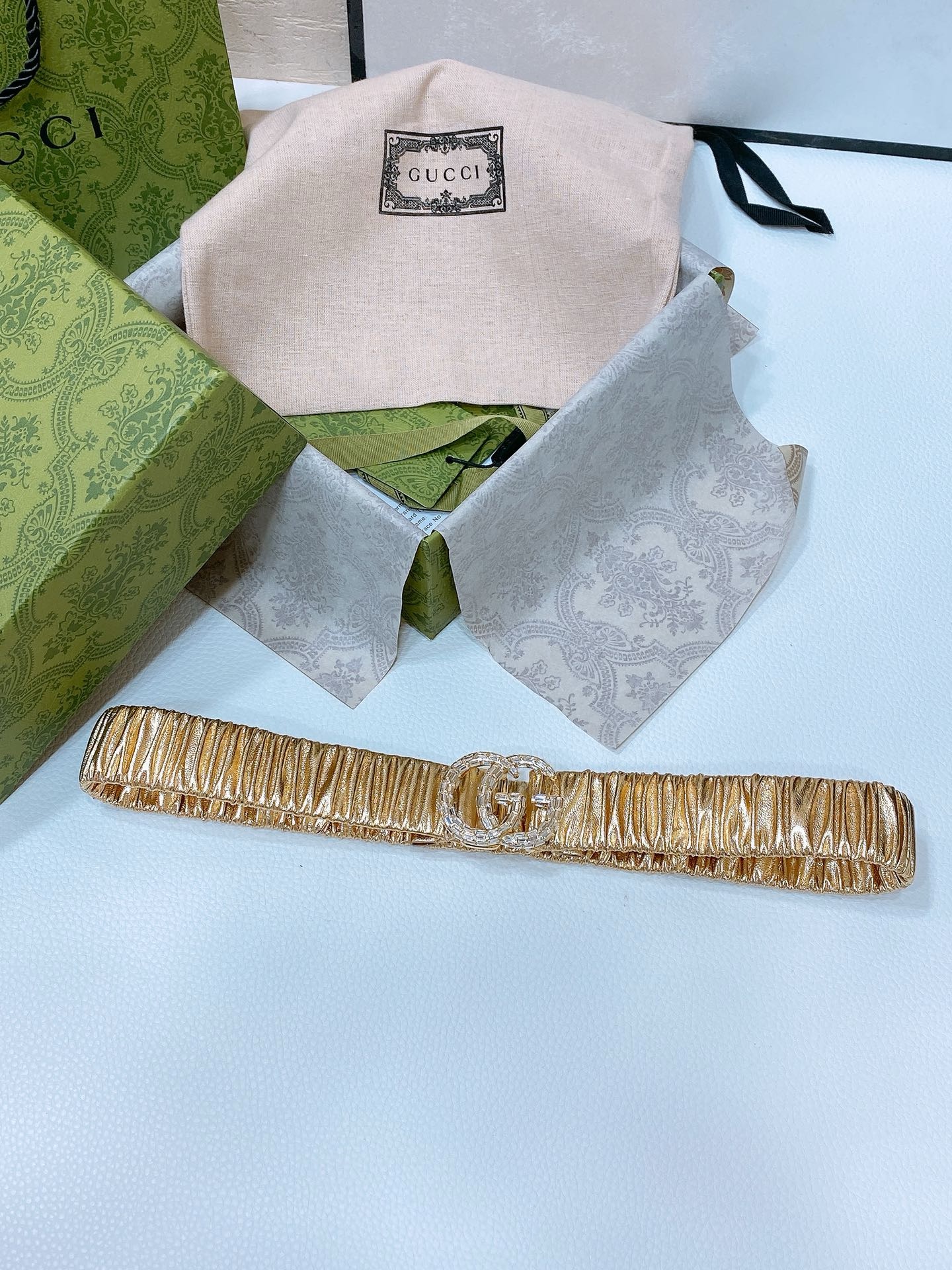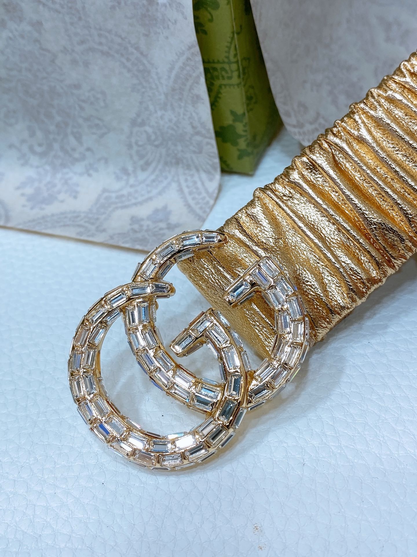 Gucci Marmont wide crystal-embellished satin belt