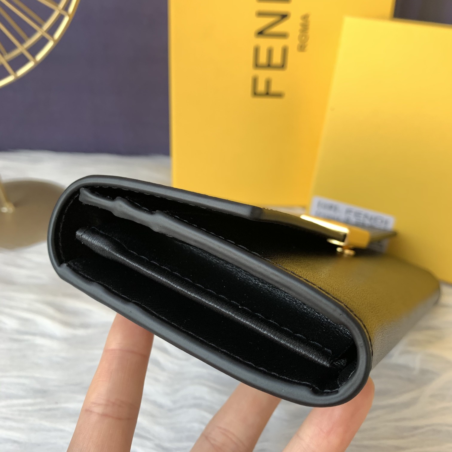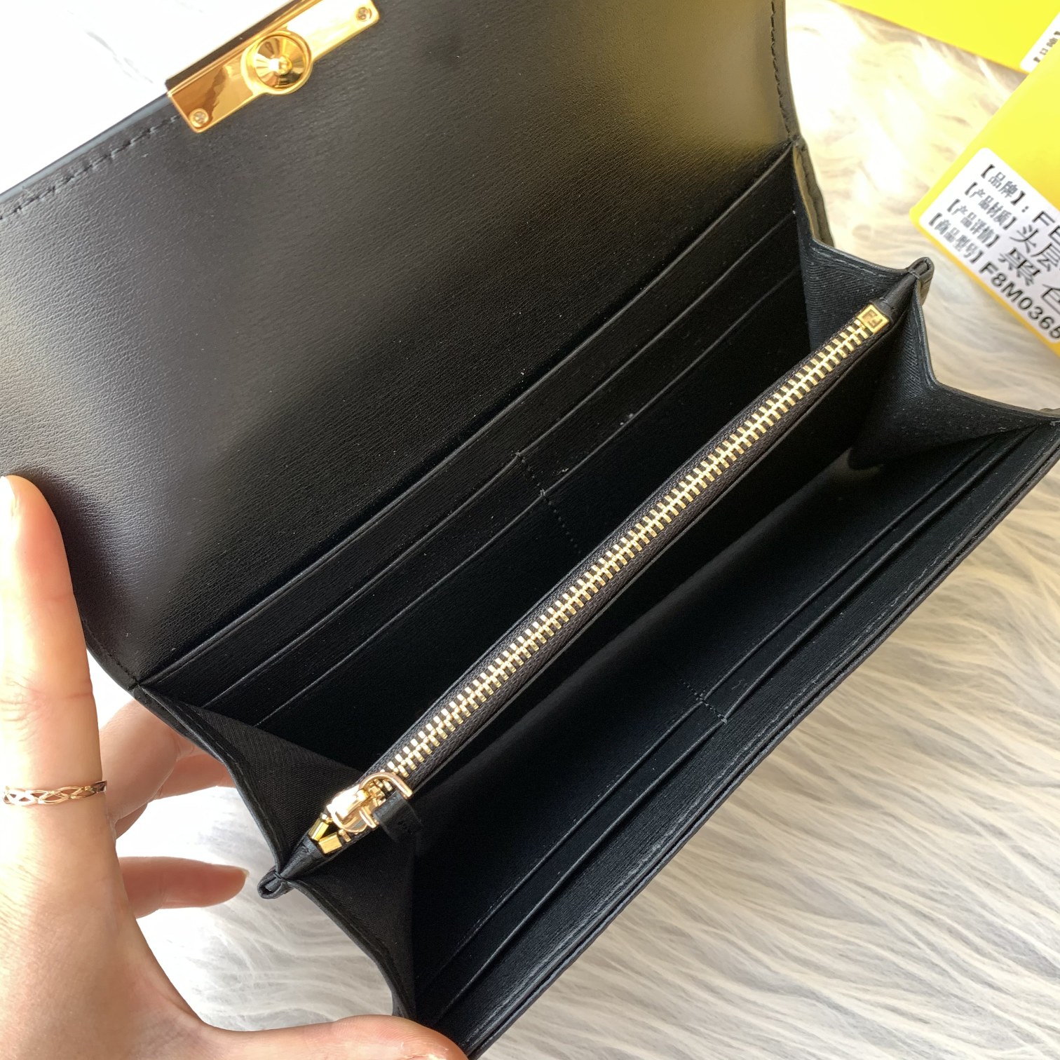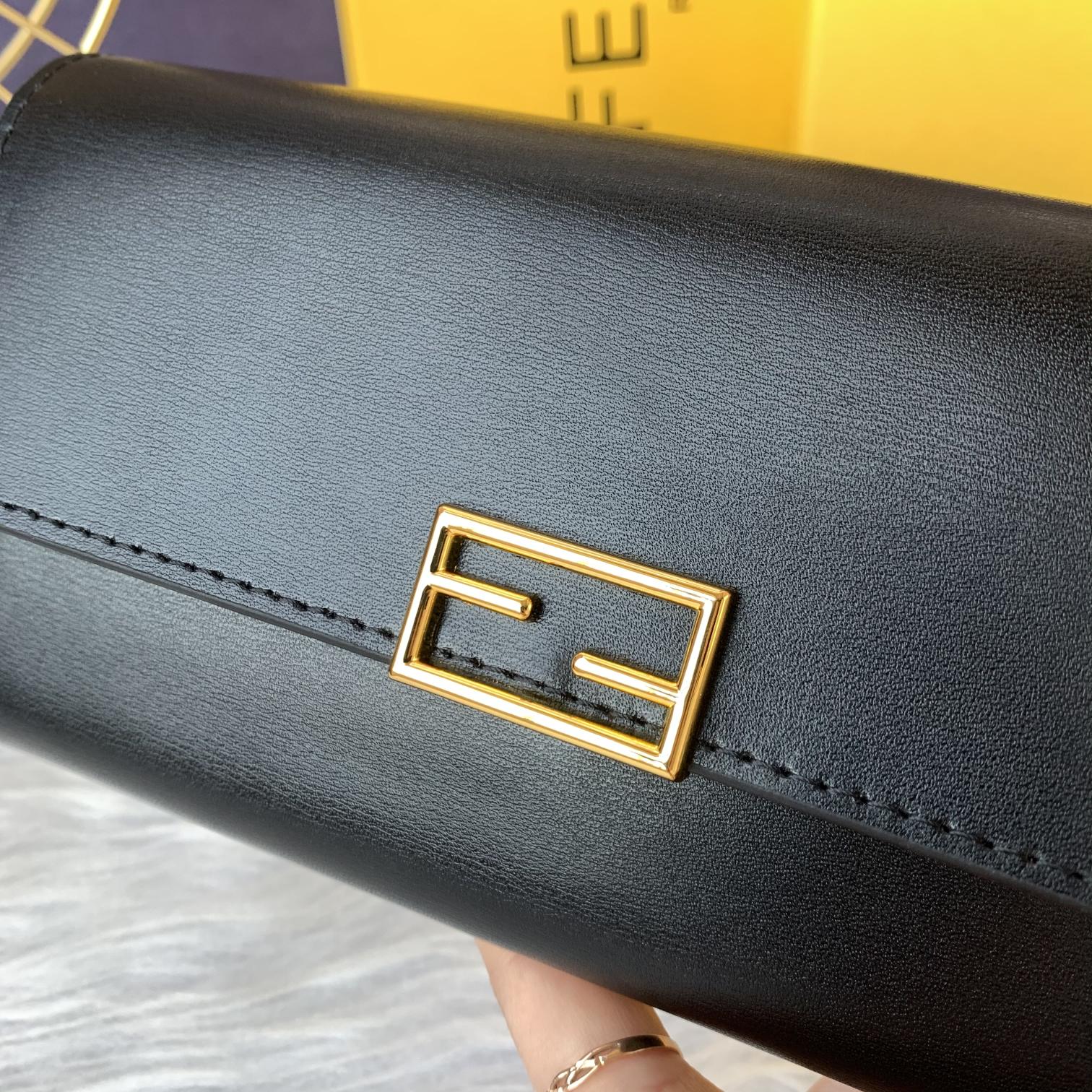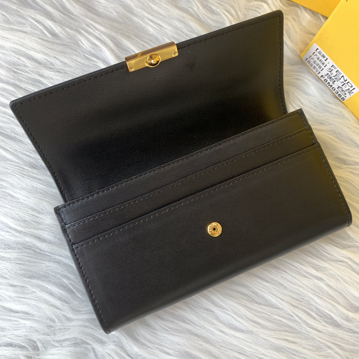 FENDI Black Leather Long Wallet Flap Wallet Baguette Continental
