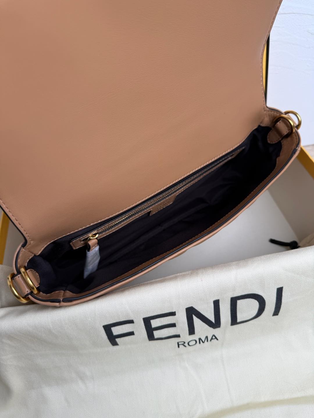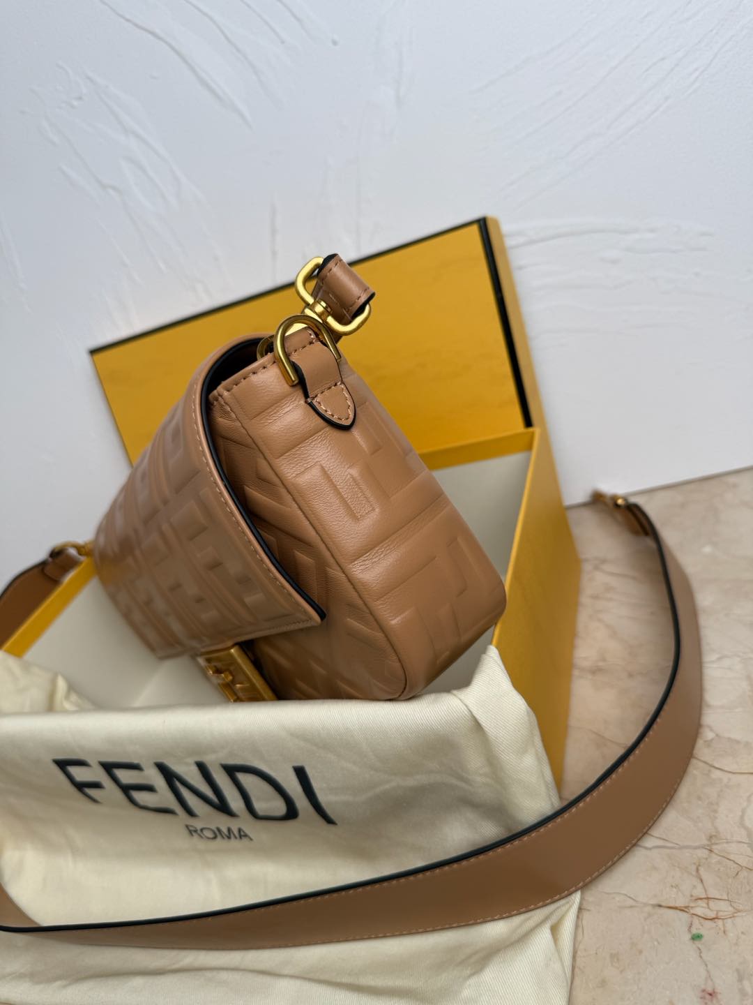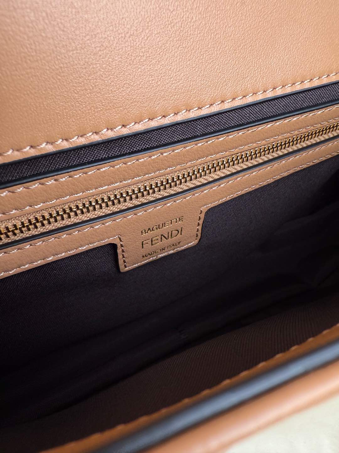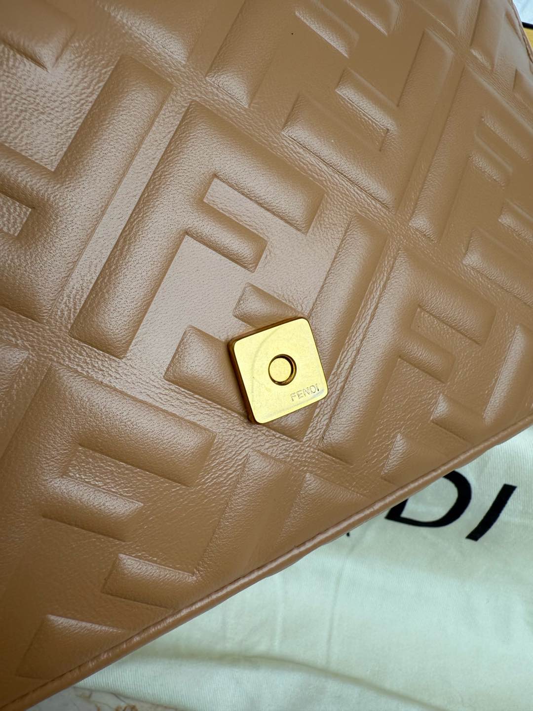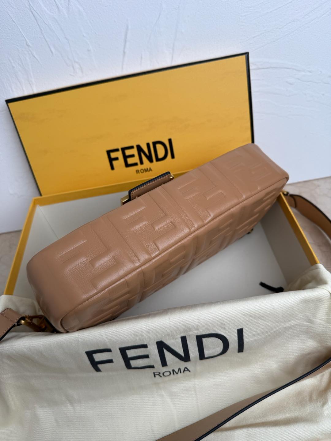 FENDI Nappa FF 1974 Embossed Baguette Miele Scuro 1301809
