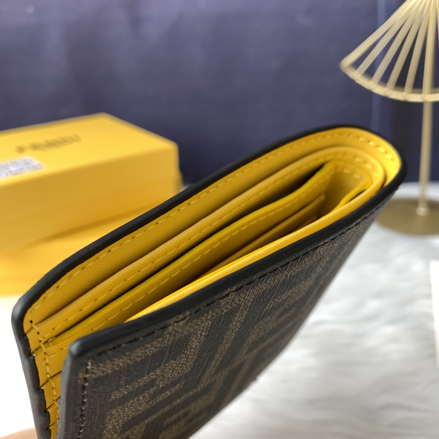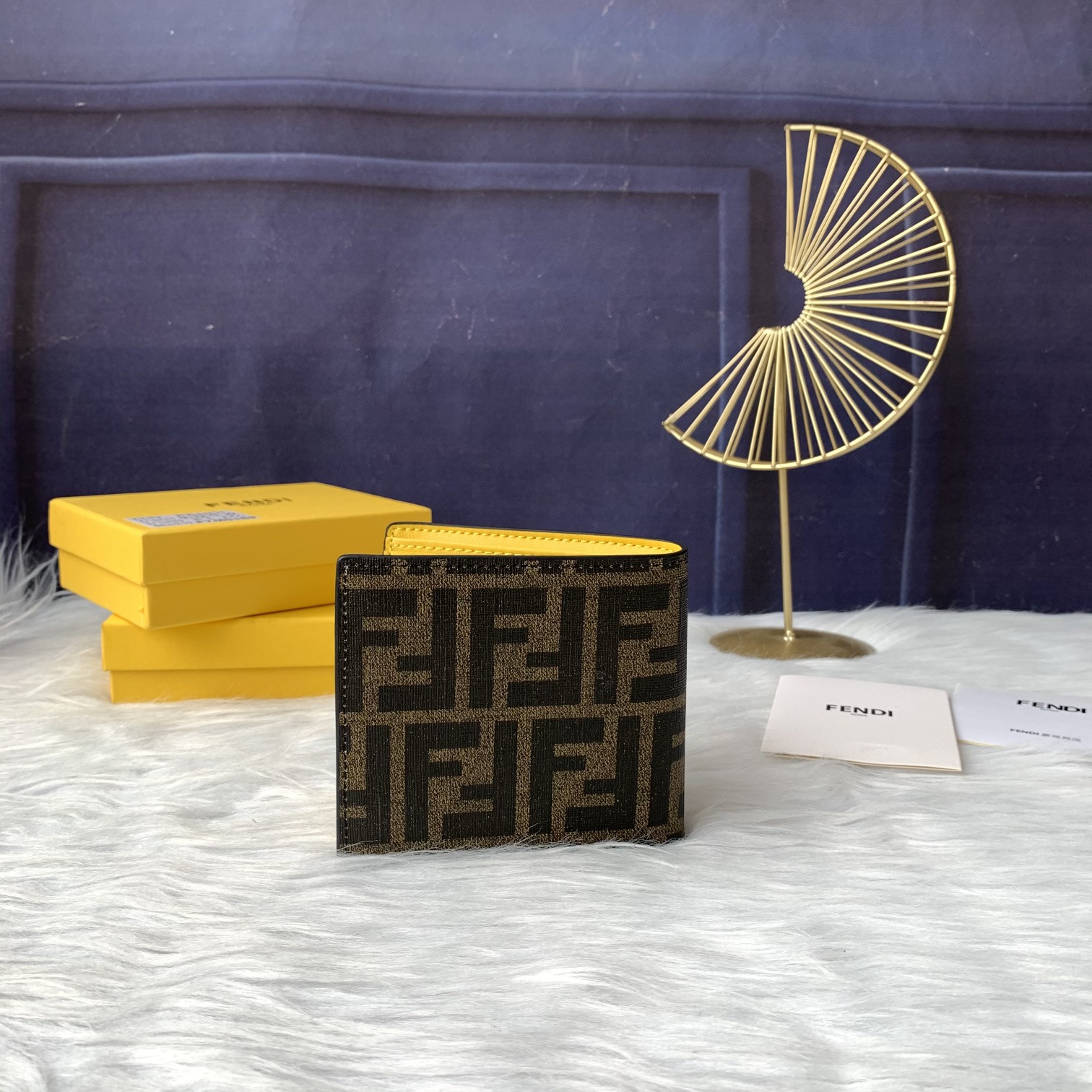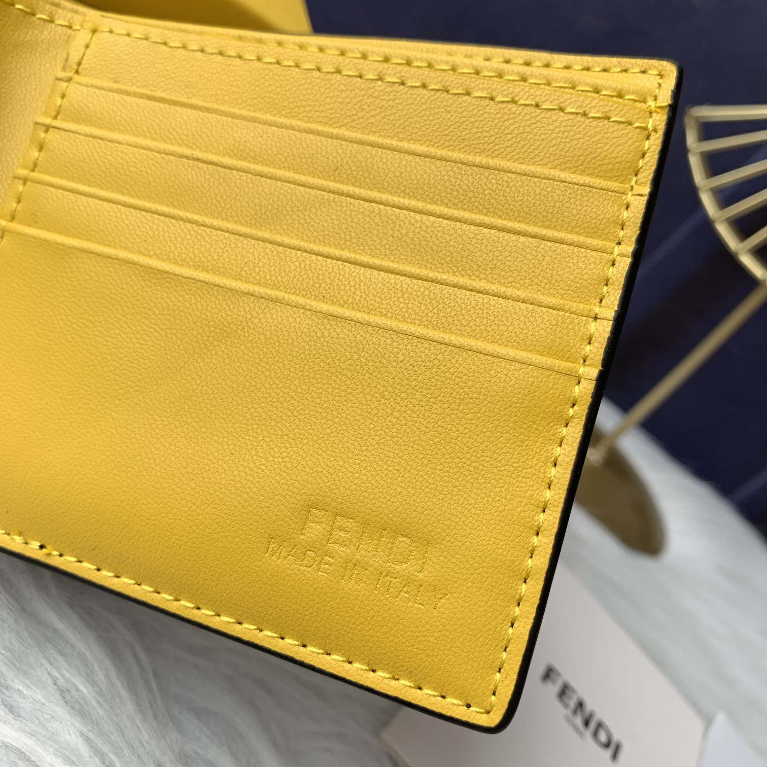 Fendi short men's wallet, specifically the Fendi short men's Rep 1:1 model, black, rough leather, yellow eyes FD 05