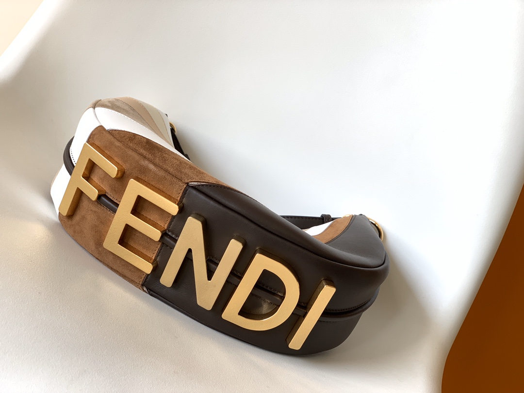 FENDI Vitello Seta Goatskin Suede Rainbow Inlay Small