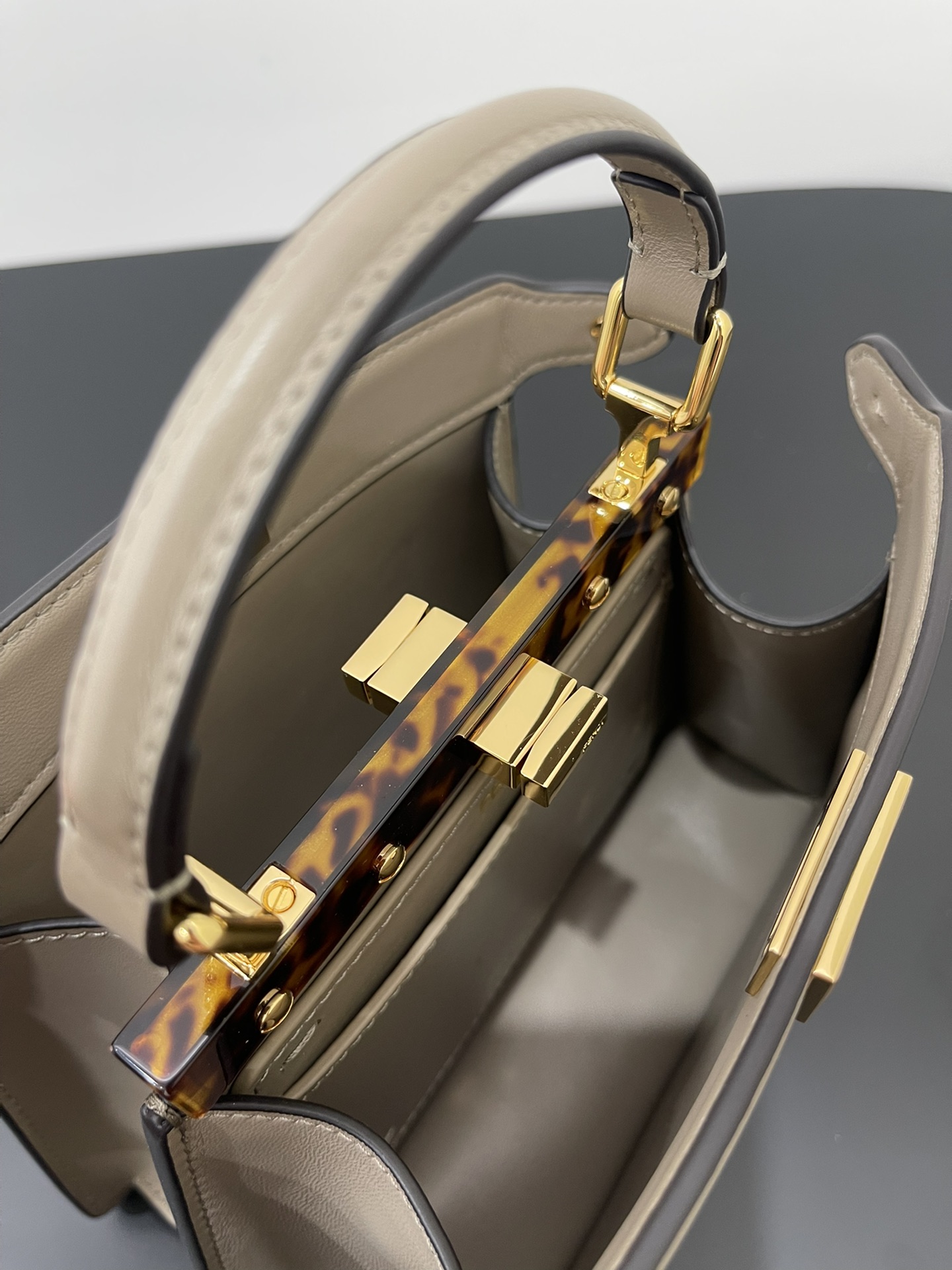 FENDI Vitello Seta Shiny Nappa Plexiglass Tortoise Mini