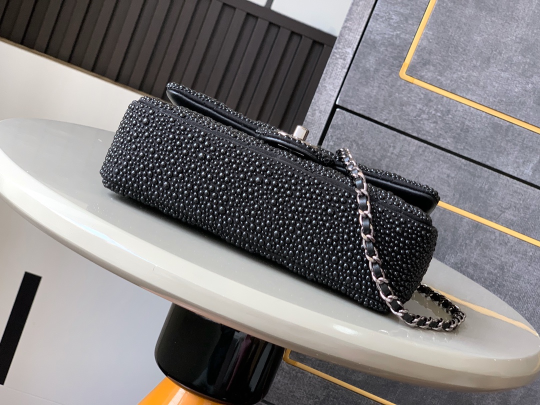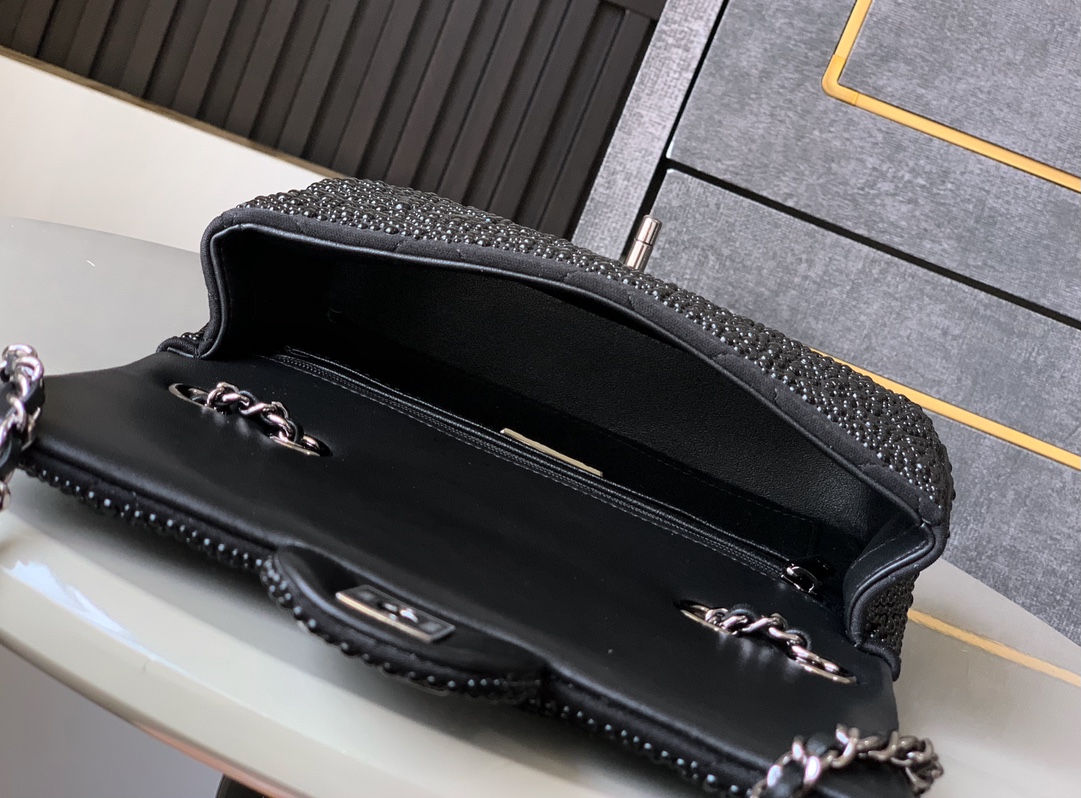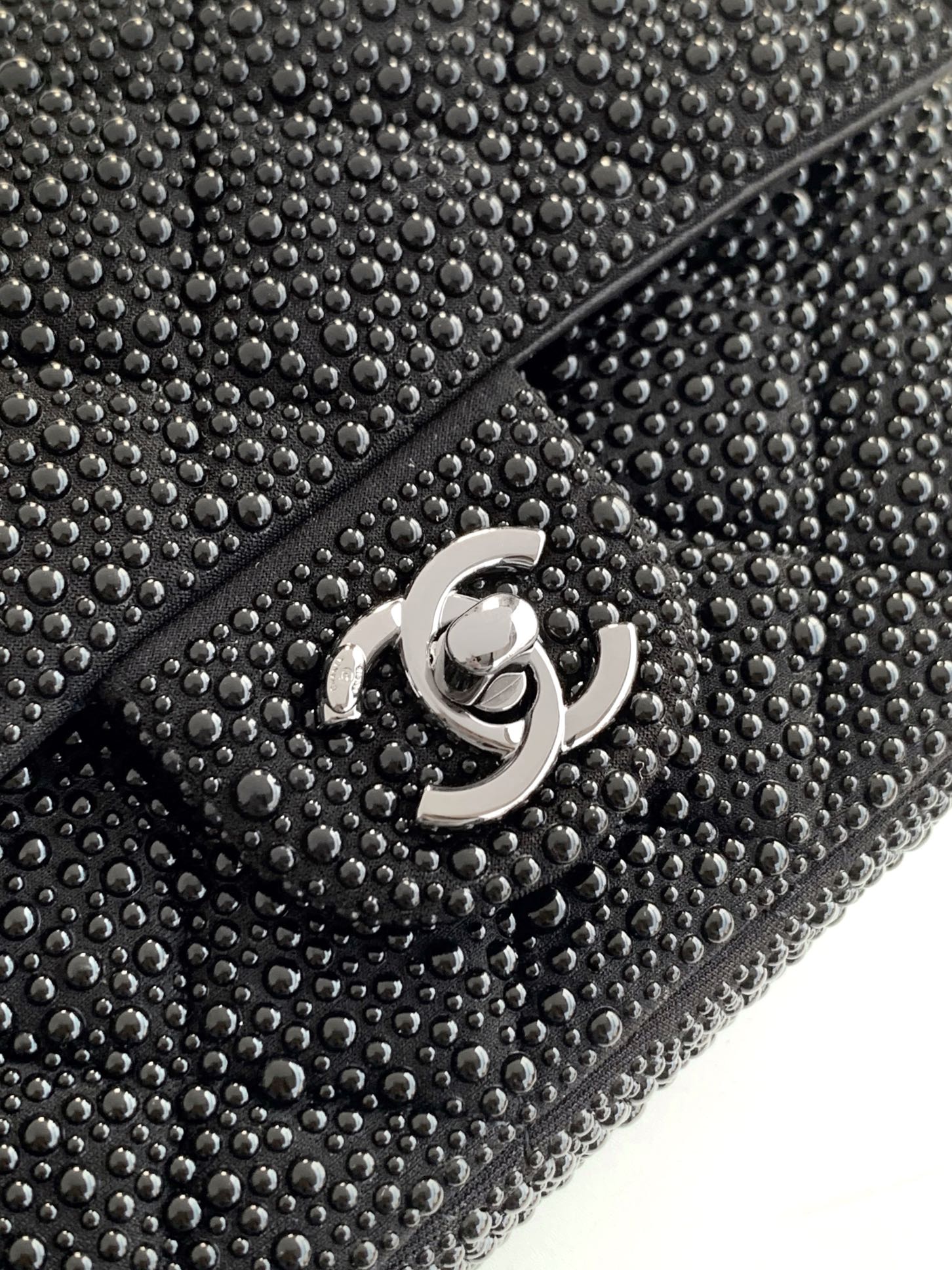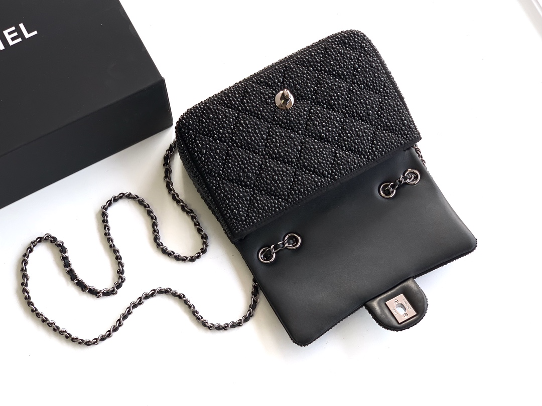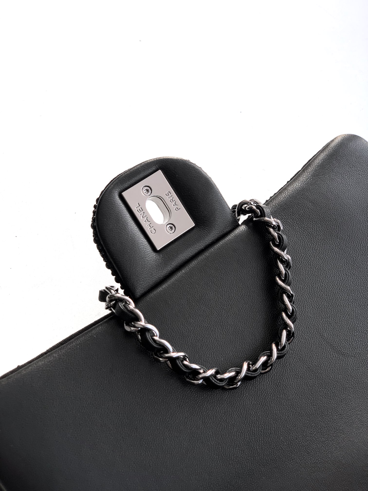 Flap bag, Lambskin & gold-tone metal, black & white — Fashion