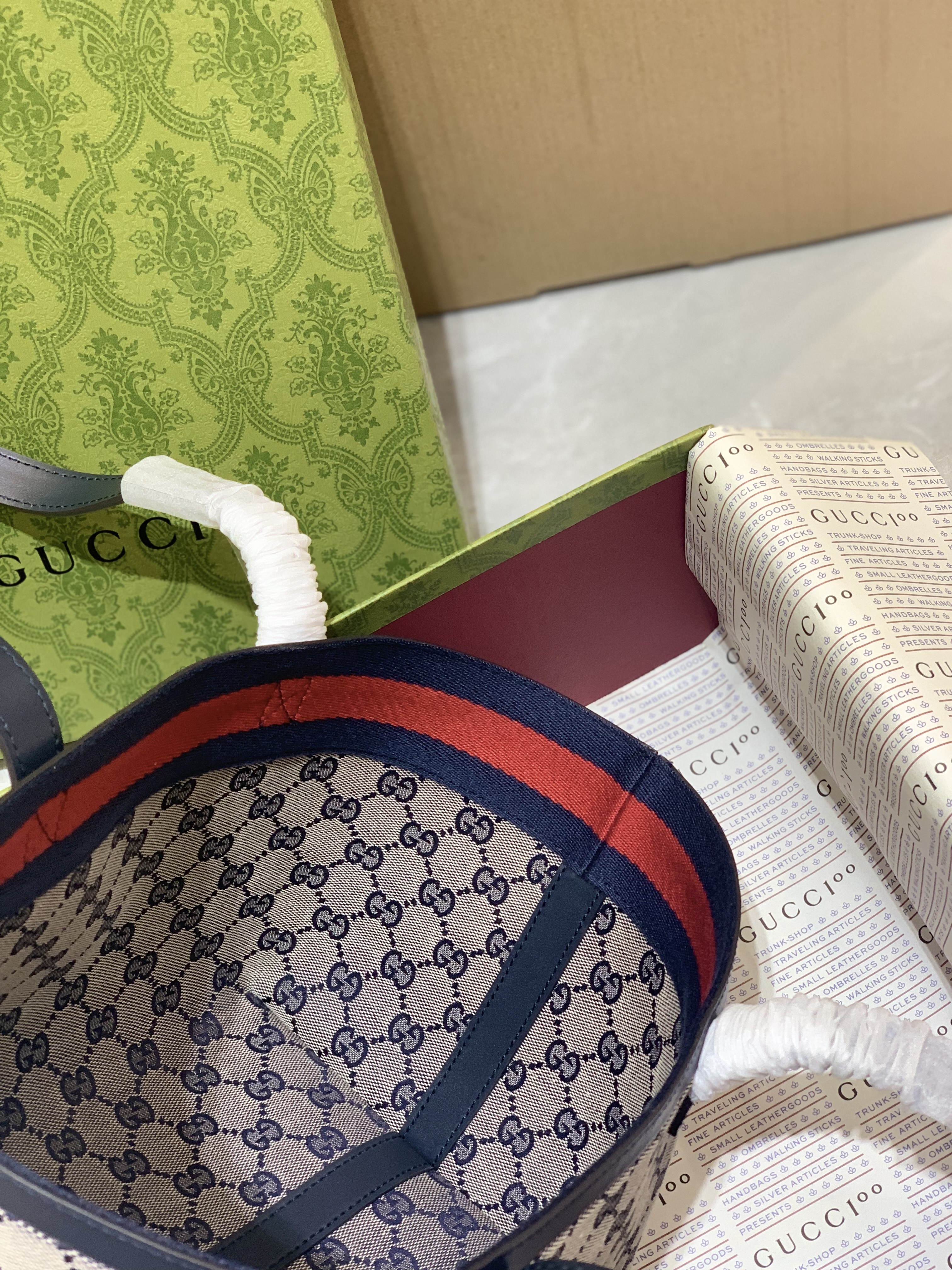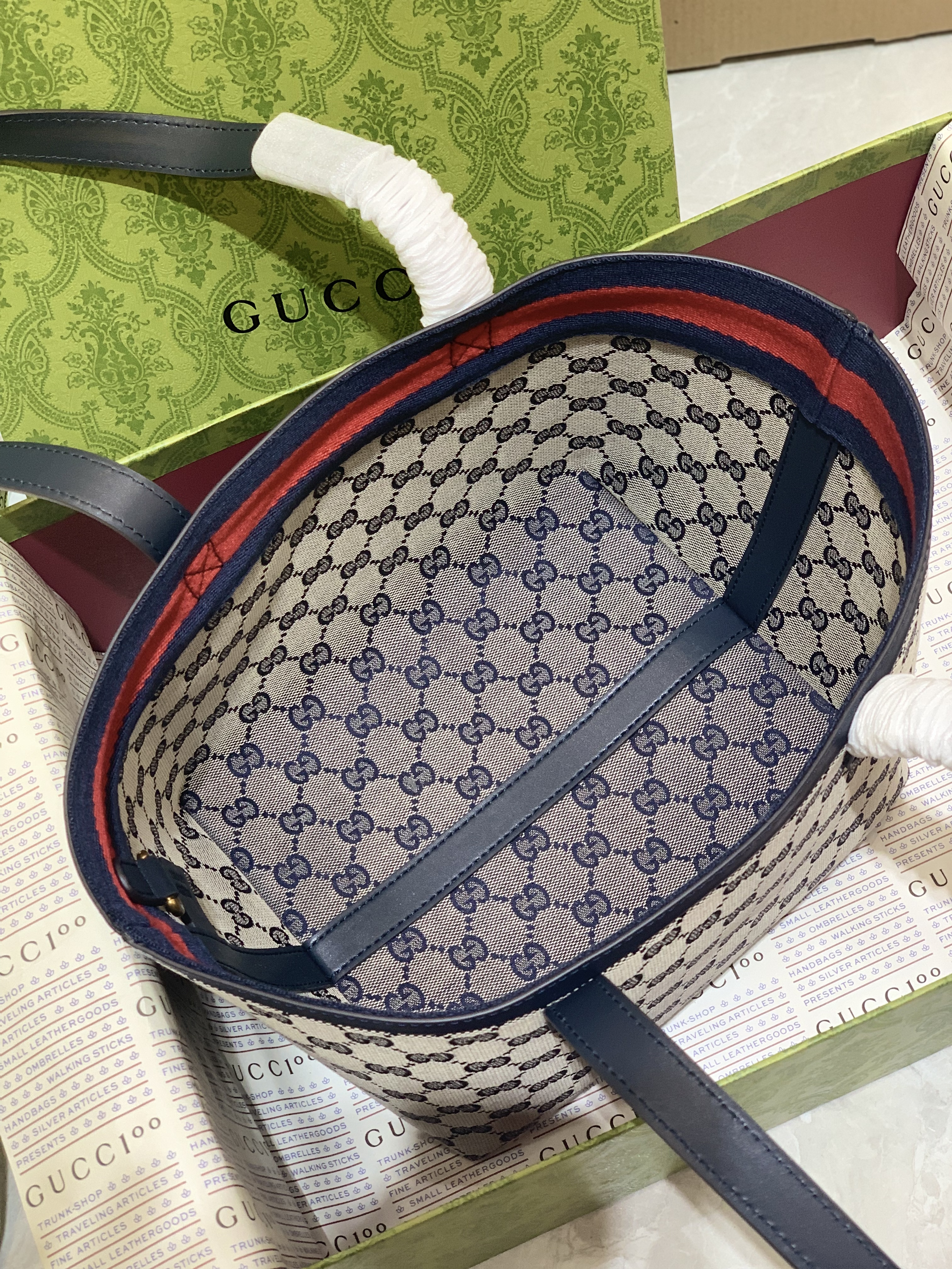 GG Medium Tote Bag - Beige/Blue | Gucci