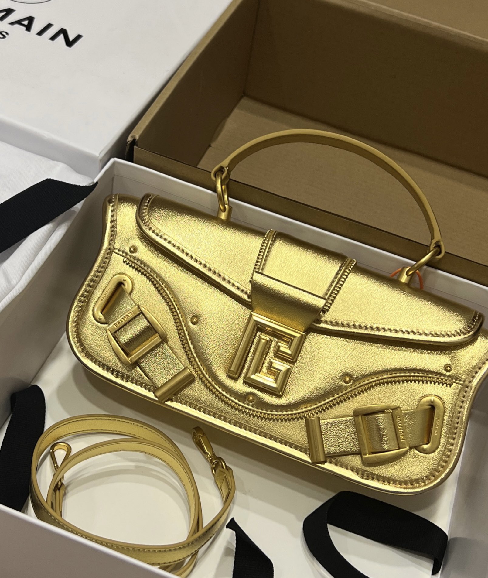 Indulge in the epitome of luxury with our exquisite Golden Designer Bag. This handbag is more than just an accessory; it's a statement piece that exudes sophistication and glamour. Crafted with meticulous attention to detail, this bag is designed to turn heads and elevate your style to new heights. The shimmering golden hue adds a touch of opulence to any ensemble, making it the perfect choice for special occasions or adding a touch of luxury to your everyday look.
