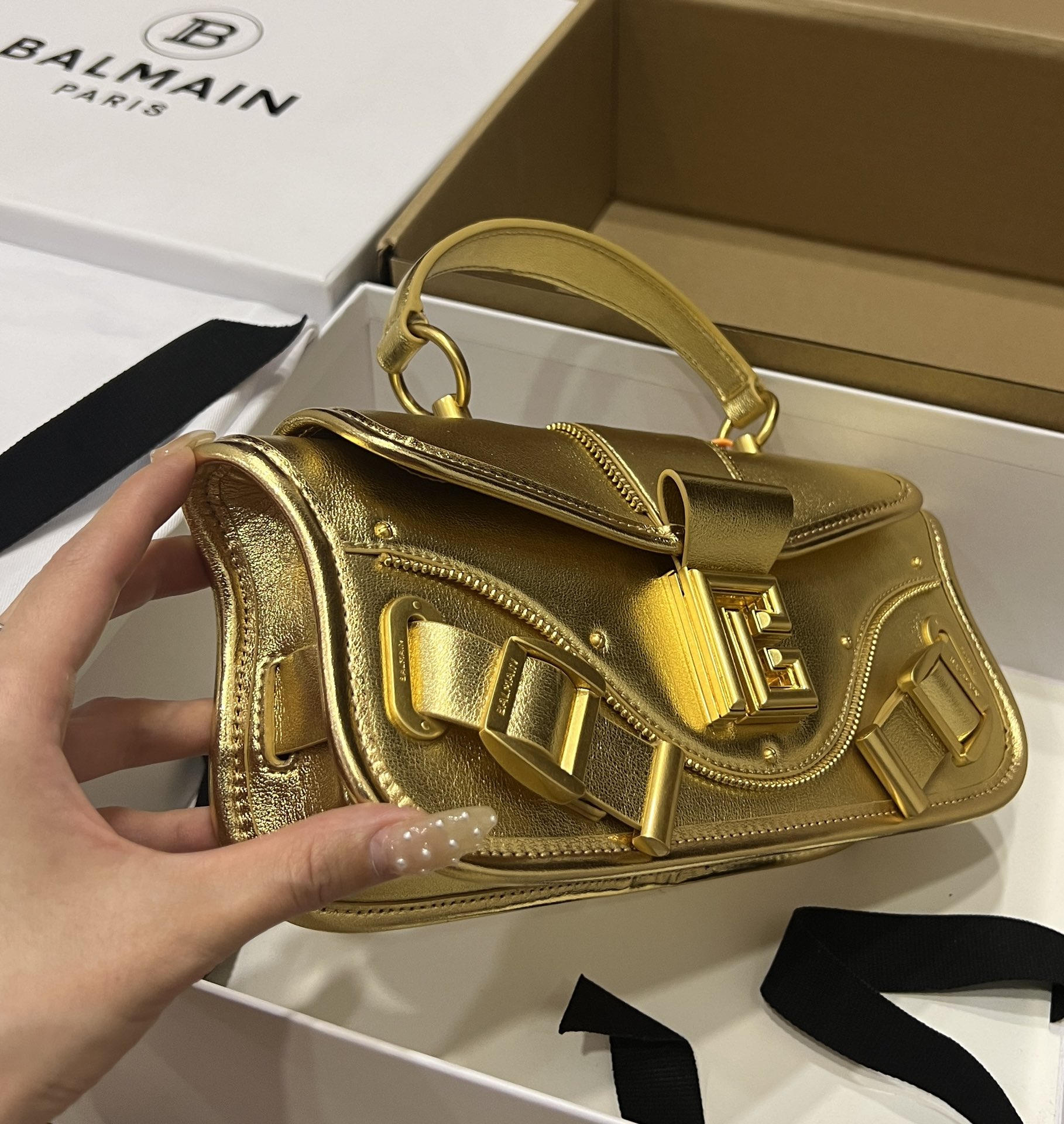 This golden designer bag is not just about aesthetics; it's about the confidence and sophistication it brings to your overall look. Whether you're attending a gala, a business meeting, or a casual outing, this bag will complement your style and make you feel like a star. Its compact size allows you to carry your essentials without sacrificing style, while the secure closure ensures your belongings are safe and secure. The comfortable handle makes it easy to carry all day long.