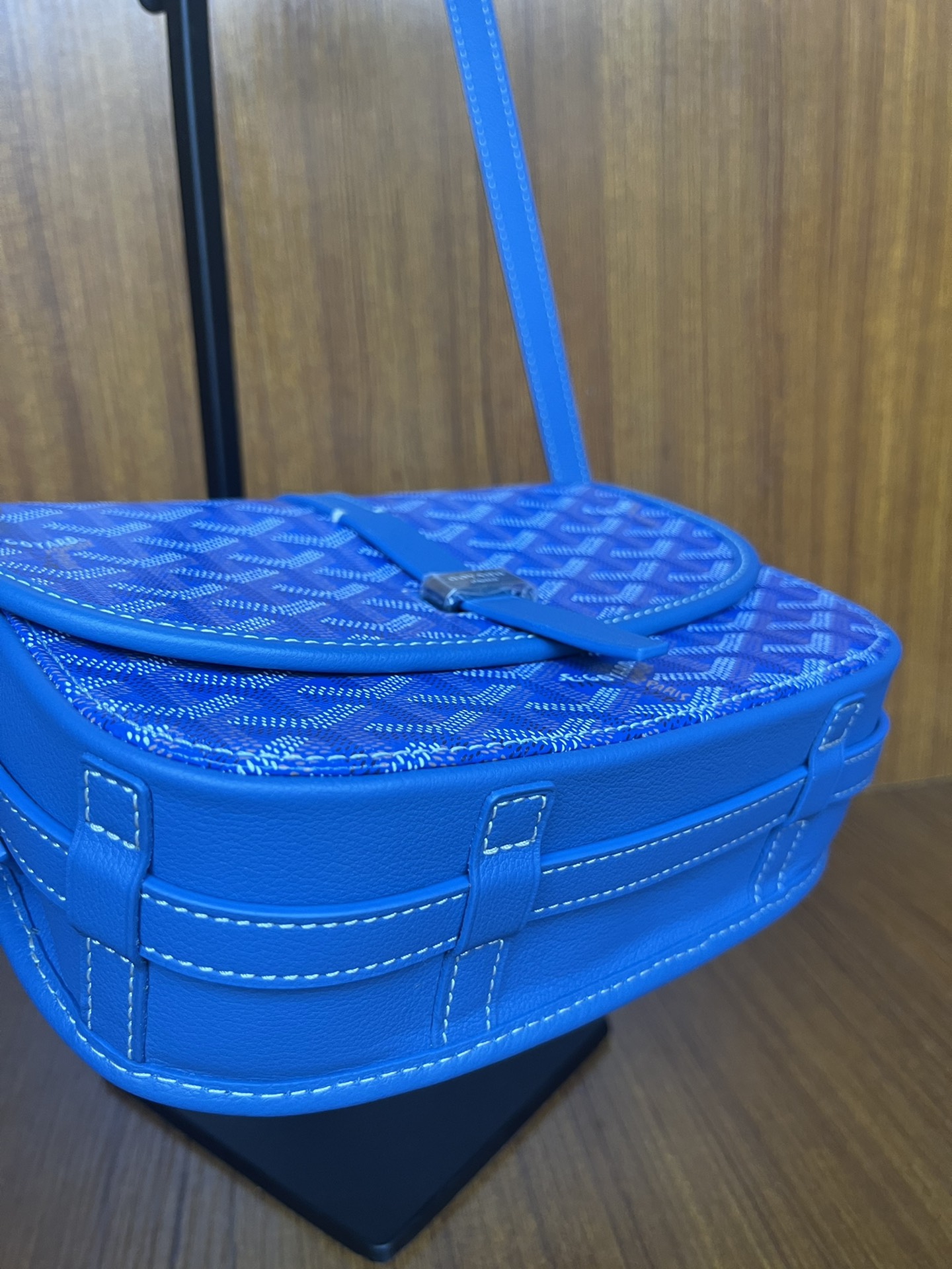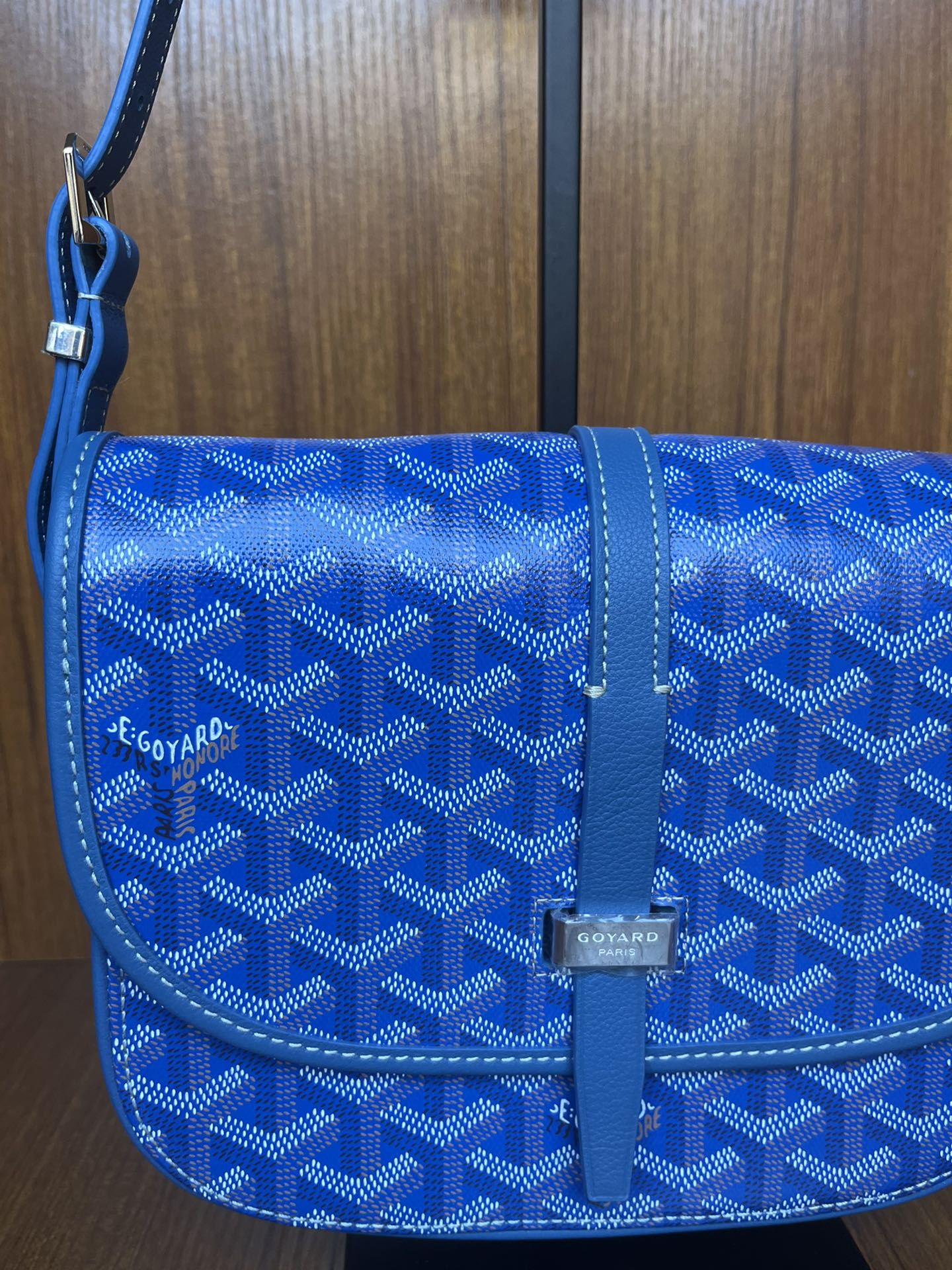 Goyard Blue Chevron Print Coated Canvas Belvedere MM Saddle Bag Goyard
