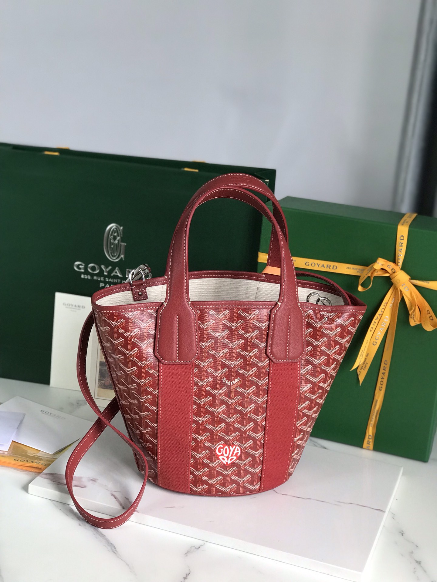 Goyard Goyardine Belharra PM Coral Tote Palladium bag red
