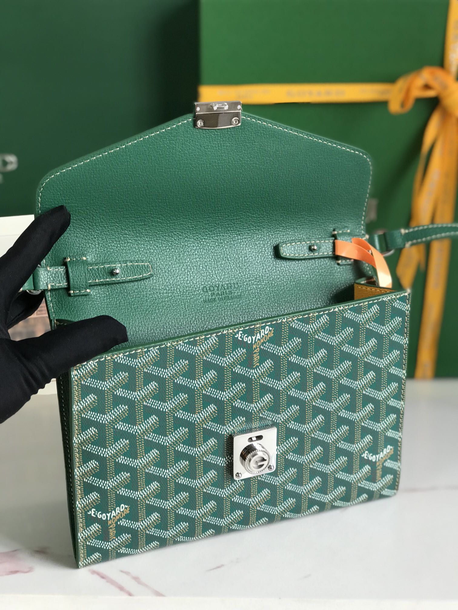 Goyard Green Goyardine Coated Canvas and Leather