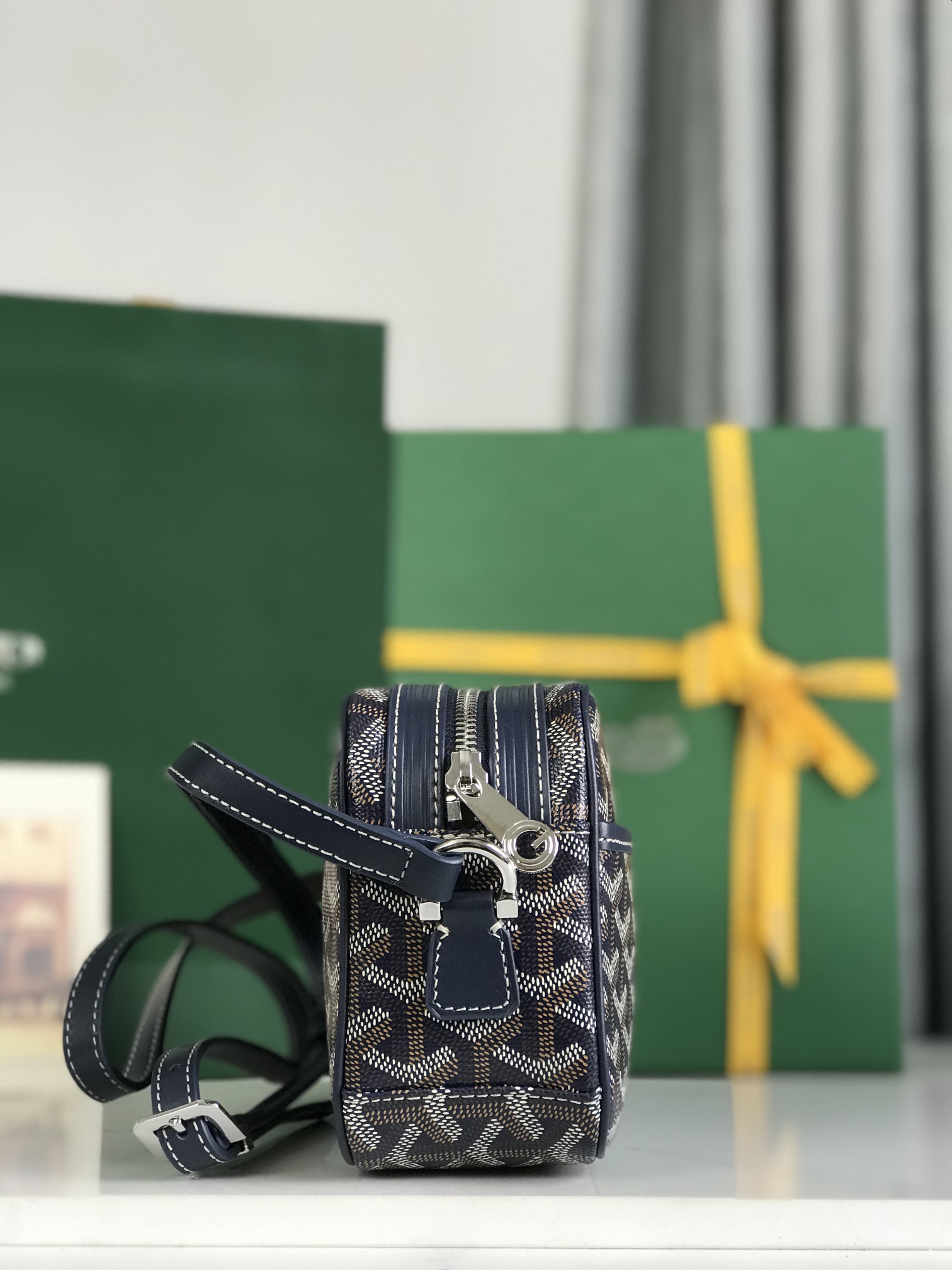 GOYARD Herringbone Cup Vert PM Shoulder Bag PVC navy