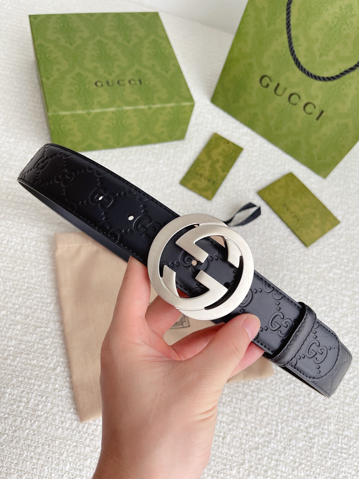 Elegant GG diamond logo buckle belt size 80