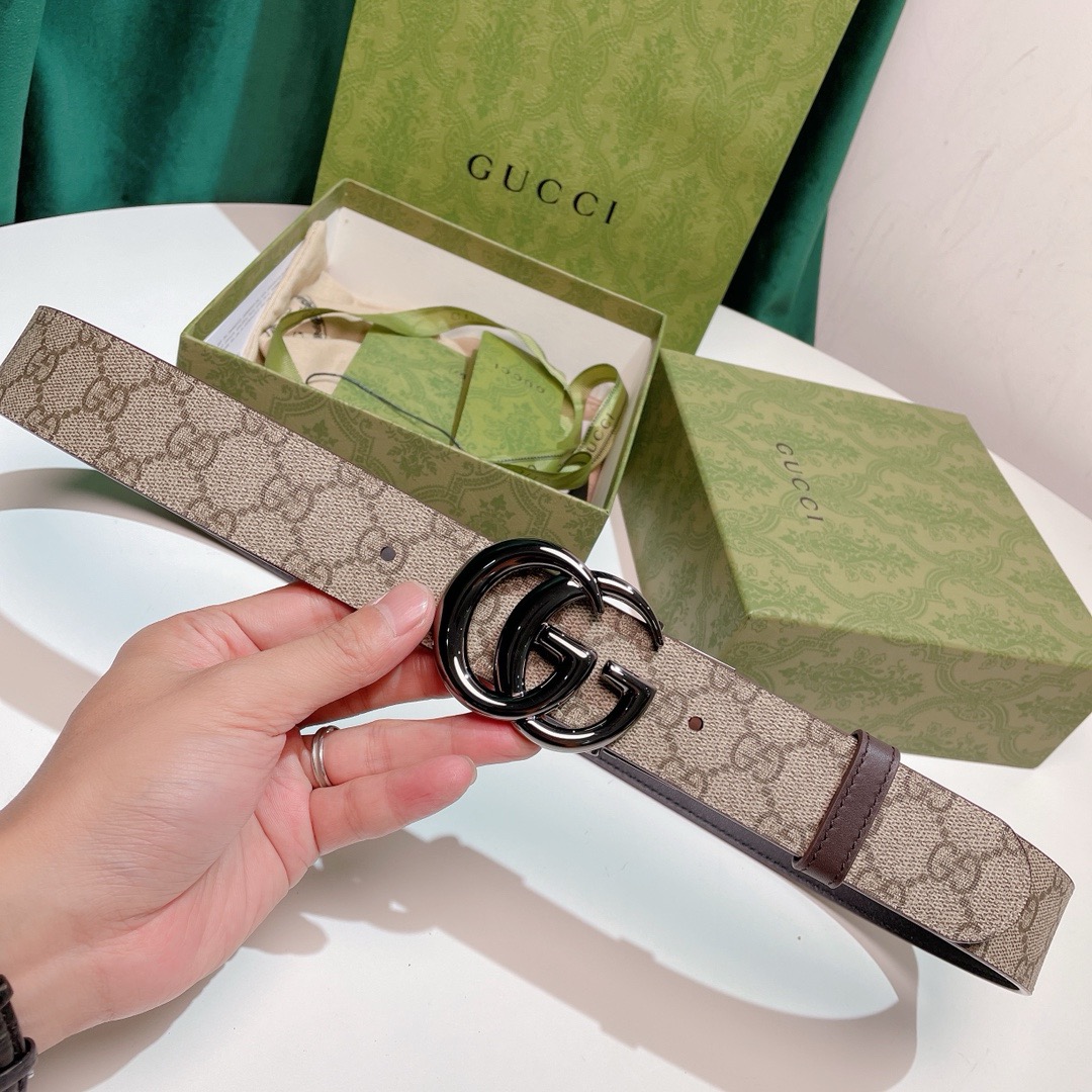 Gucci Black Smooth Calfskin Leather Gold Double G Buckle Belt 90/36
