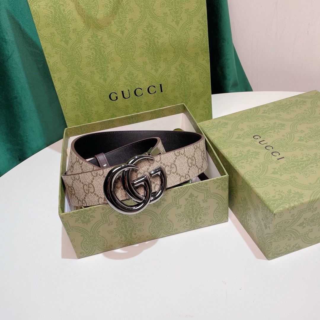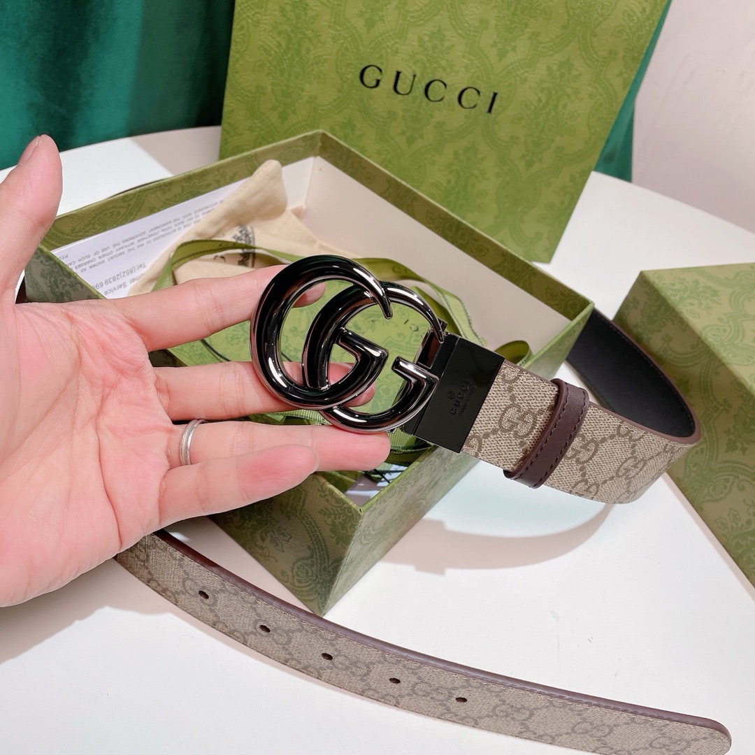 BELT GUCCI REVERSIBL BELT BLACK LEATHER SILVER BUCKLE CLASSIC