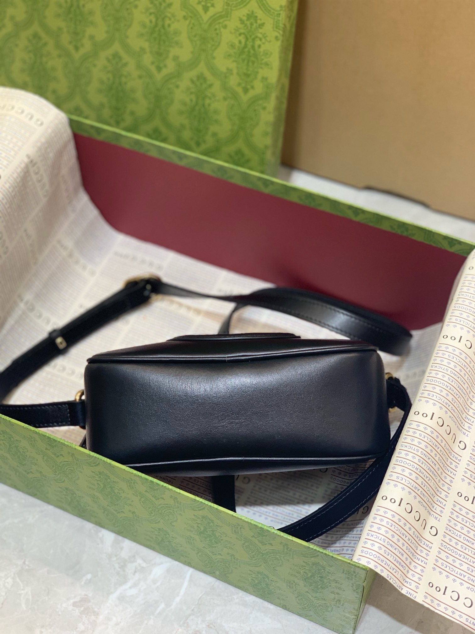 To ensure your **Gucci Black Interlocking G Camera Bag** maintains its pristine condition for years, proper care is essential. Always store your bag in its dust bag when not in use, away from direct sunlight and humidity. Avoid overloading the bag to preserve its shape and prevent stress on the straps and hardware.
