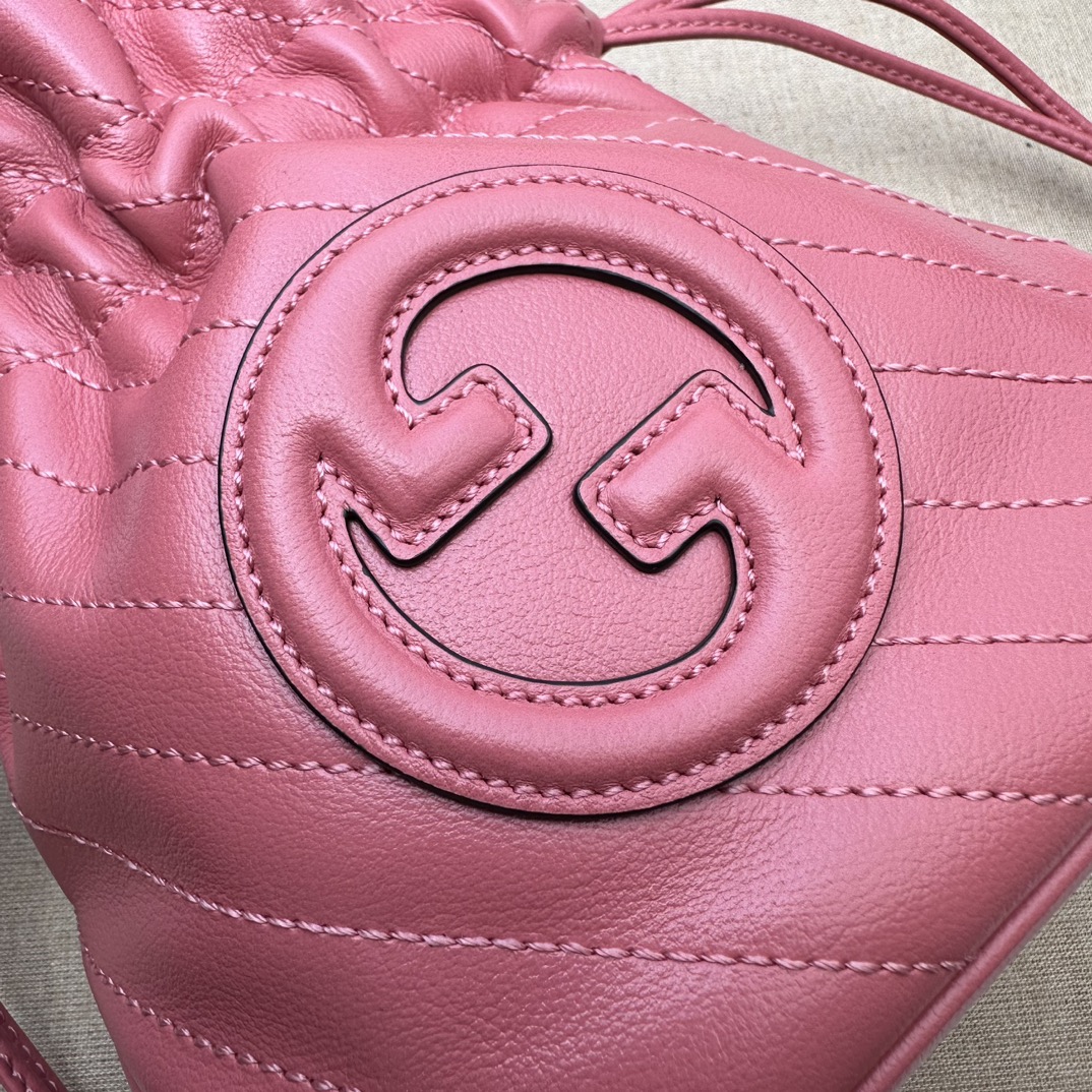 GUCCI BLONDIE MINI BUCKET BAG 760313 LEATHER PINK SILVER HARDWARE WOMEN'S