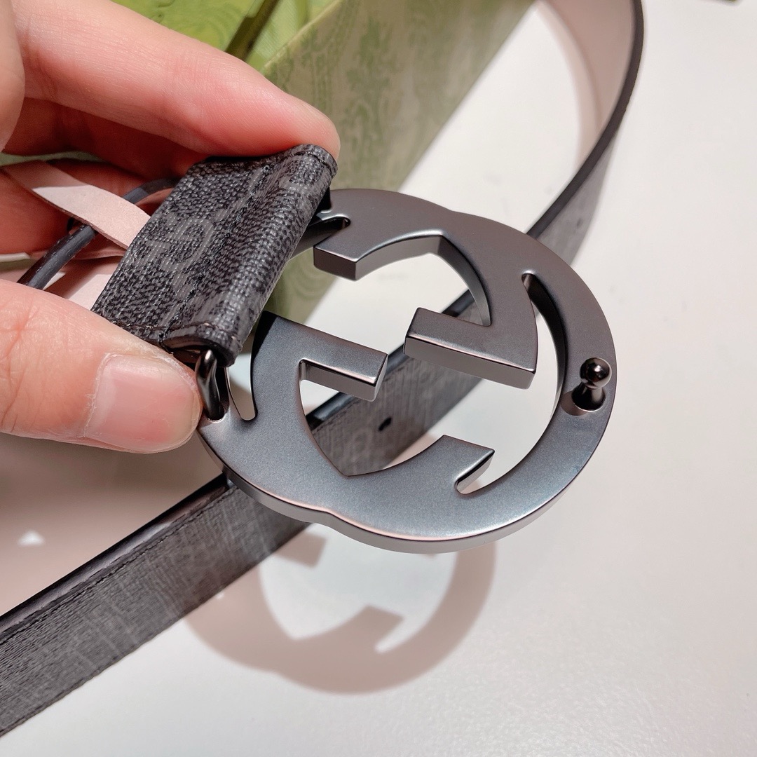 GUCCI GG Supreme Interlocking G Leather Black Mens Belt 411924 Used