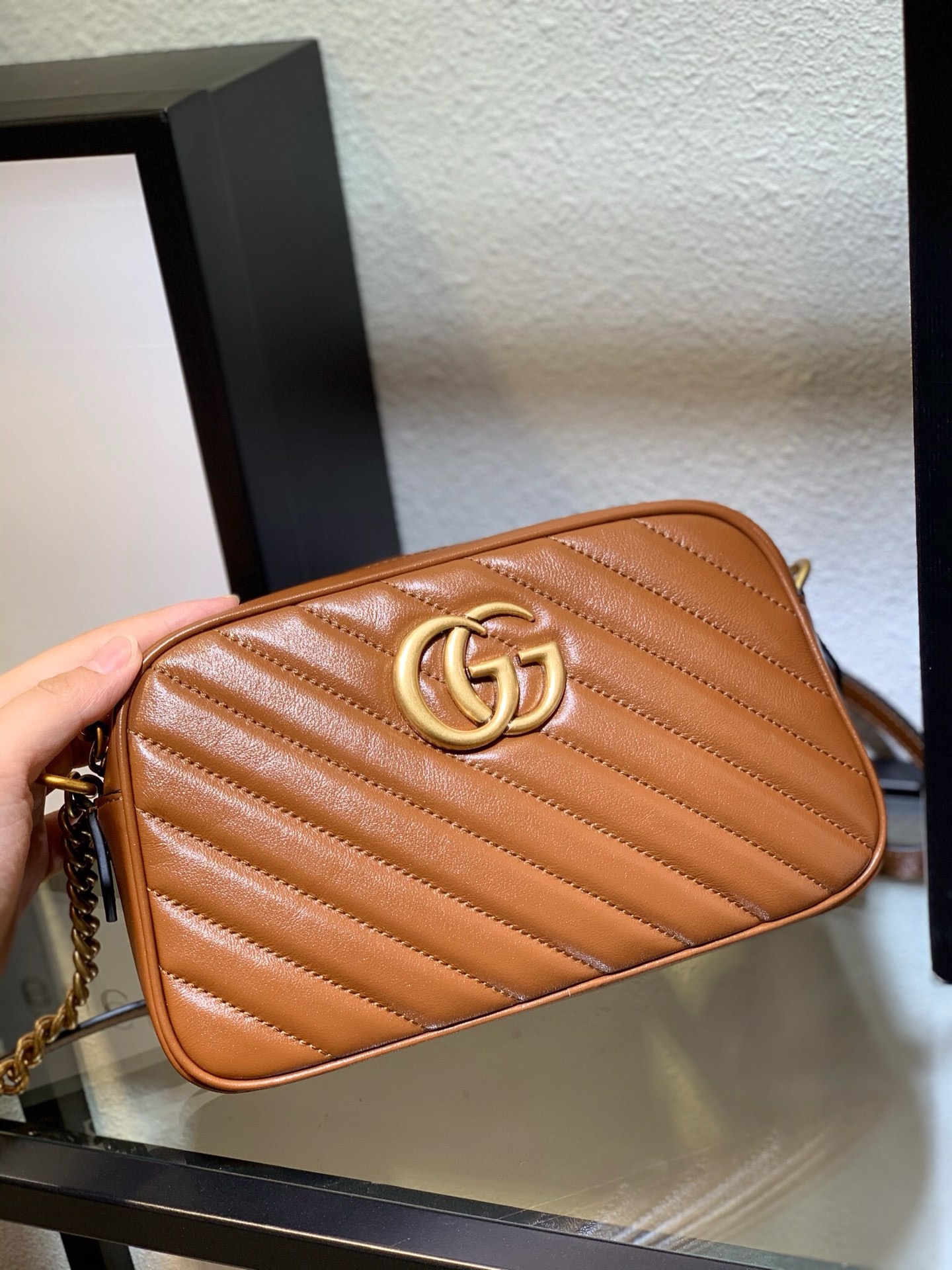 The enduring appeal of the Gucci GG Marmont Brown Camera Bag lies in its superior materials and meticulous construction. Each bag is crafted from the finest matelassé leather, known for its soft texture and resilience. This specific leather undergoes rigorous selection processes to ensure it meets Gucci's exacting standards for luxury and longevity.